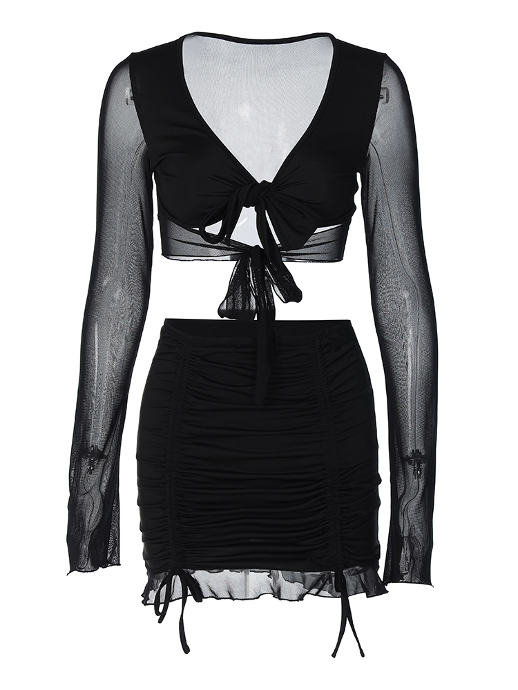 Elevate your wardrobe with our Sexy Mesh Splicing Two-Piece Set for Women, featuring an eye-catching INS style tie-up top paired with a chic pleated skirt. This trendy Y2K fashion ensemble offers a flattering fit that accentuates your curves while keeping you comfortable and stylish. Perfect for parties or casual outings, this set allows you to express your unique style effortlessly. Don’t miss out on this must-have addition to your collection add it to your cart today!