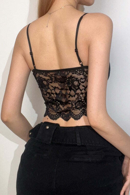 Sexy Sheer Lace Ruffle Butterfly Cami Top