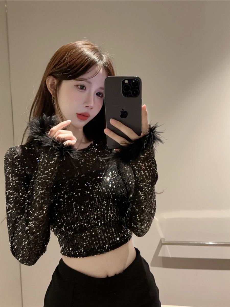 Unleash your inner star with our Shiny Sequined K-Pop Style Performance Outfit, designed for the bold and vibrant dancer. This short jazz dance top features dazzling sequins that catch the light with every move, ensuring you shine on stage. Its flattering fit hugs your figure just right, allowing for maximum comfort and flexibility during performances. Perfect for spicy girl group stage looks, this outfit is a must-have for any performer wanting to make a statement. Don’t miss out on the spotlight add this show-stopping piece to your cart today!