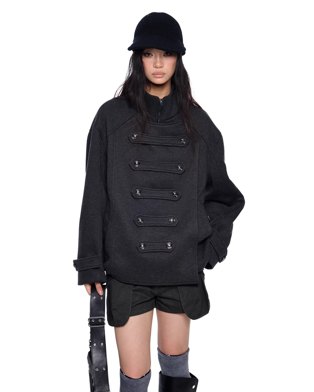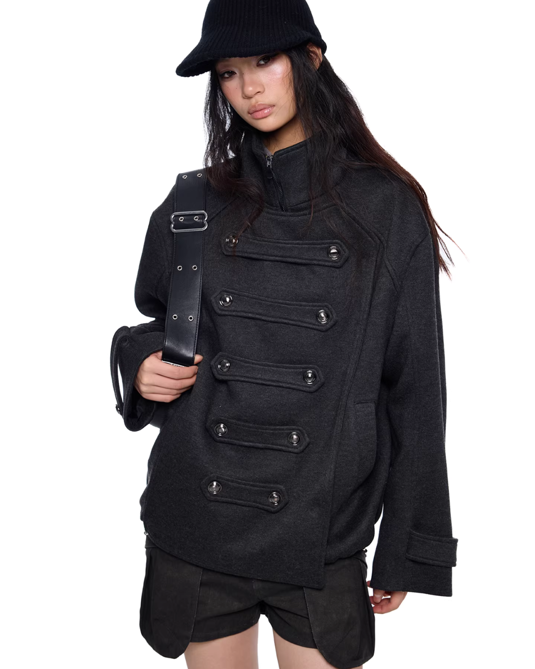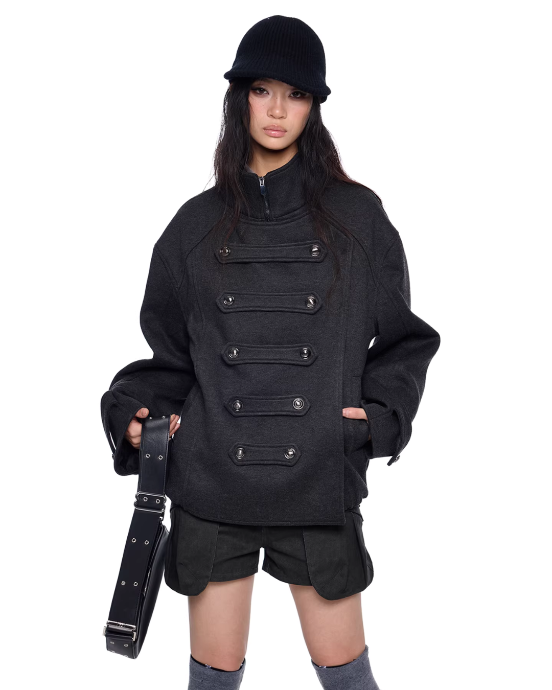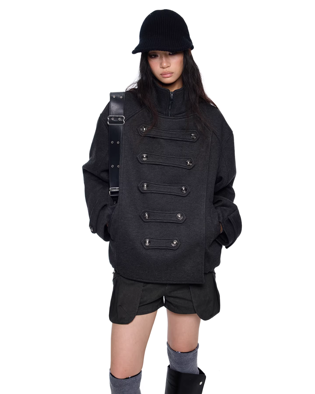 The bold front details and button usage catch the eye of the Napoleon jacket.