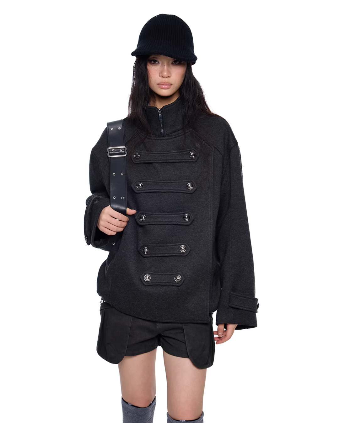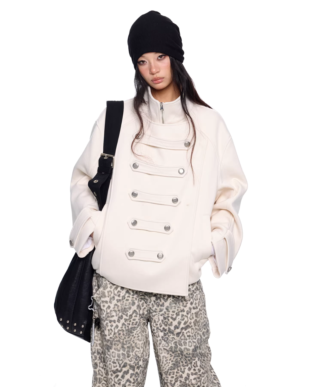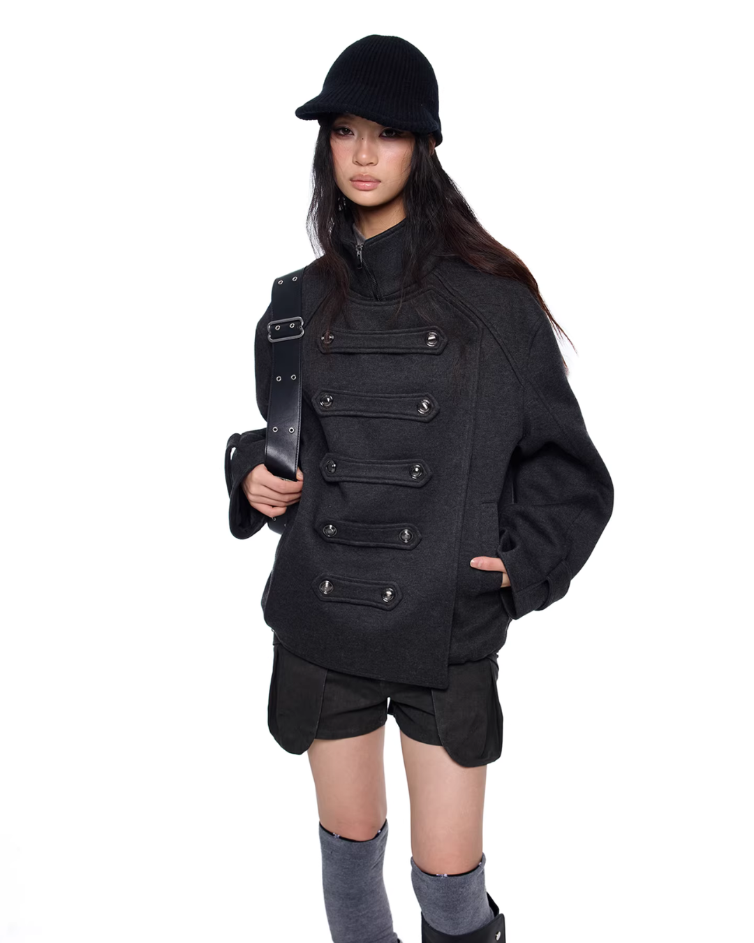The bold front details and button usage catch the eye of the Napoleon jacket.