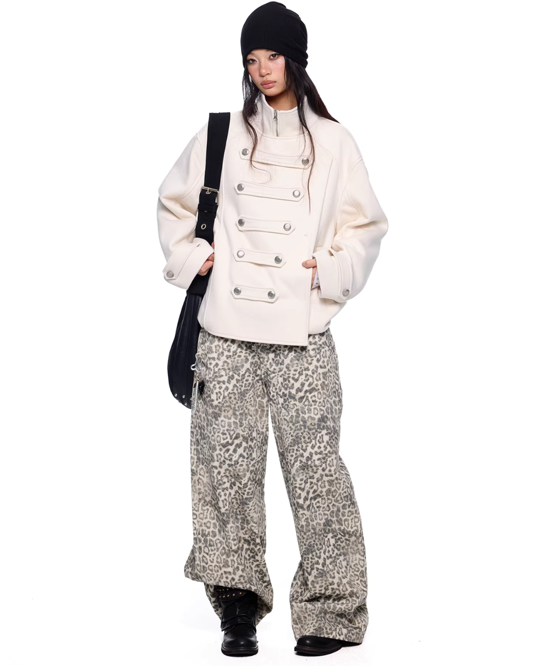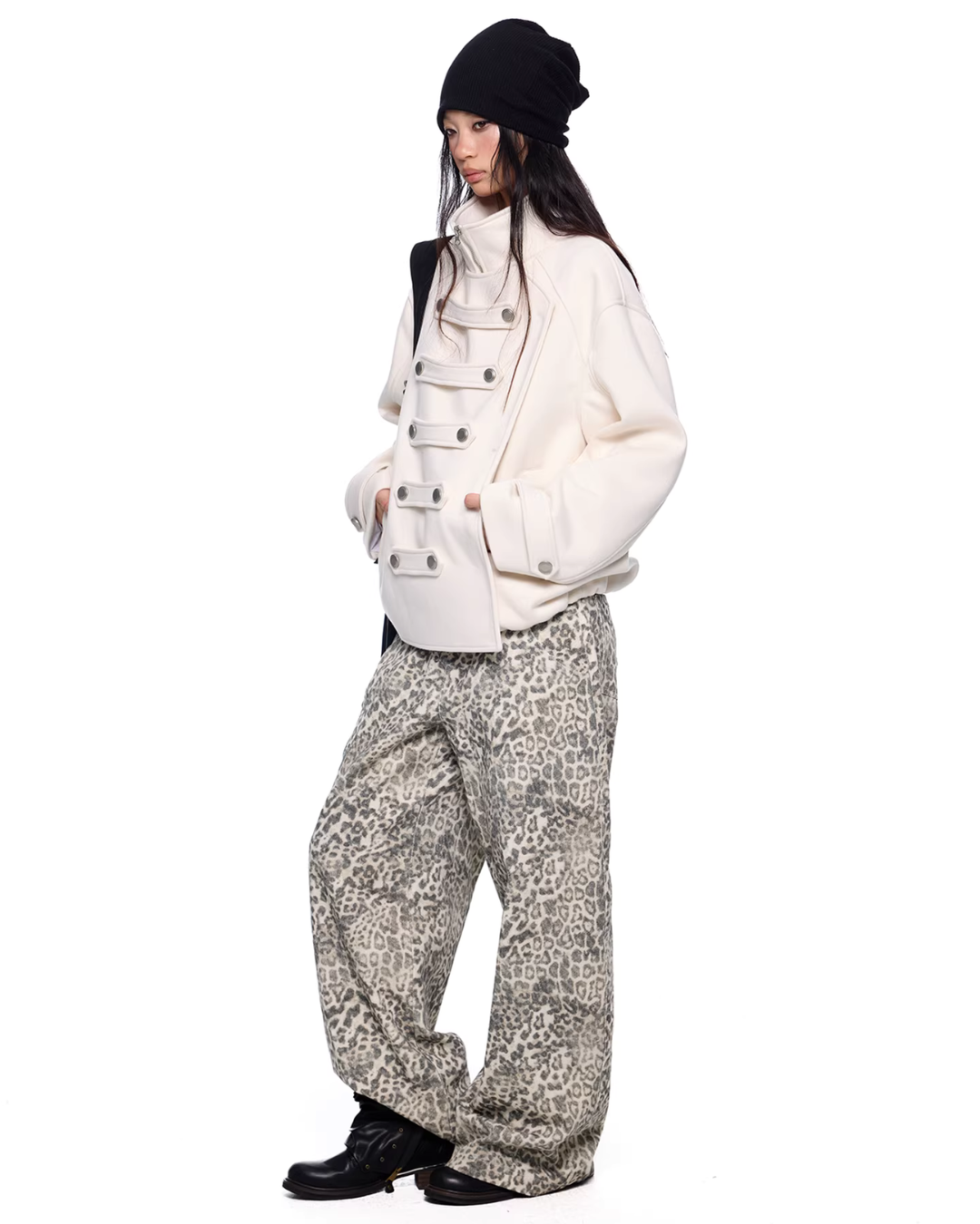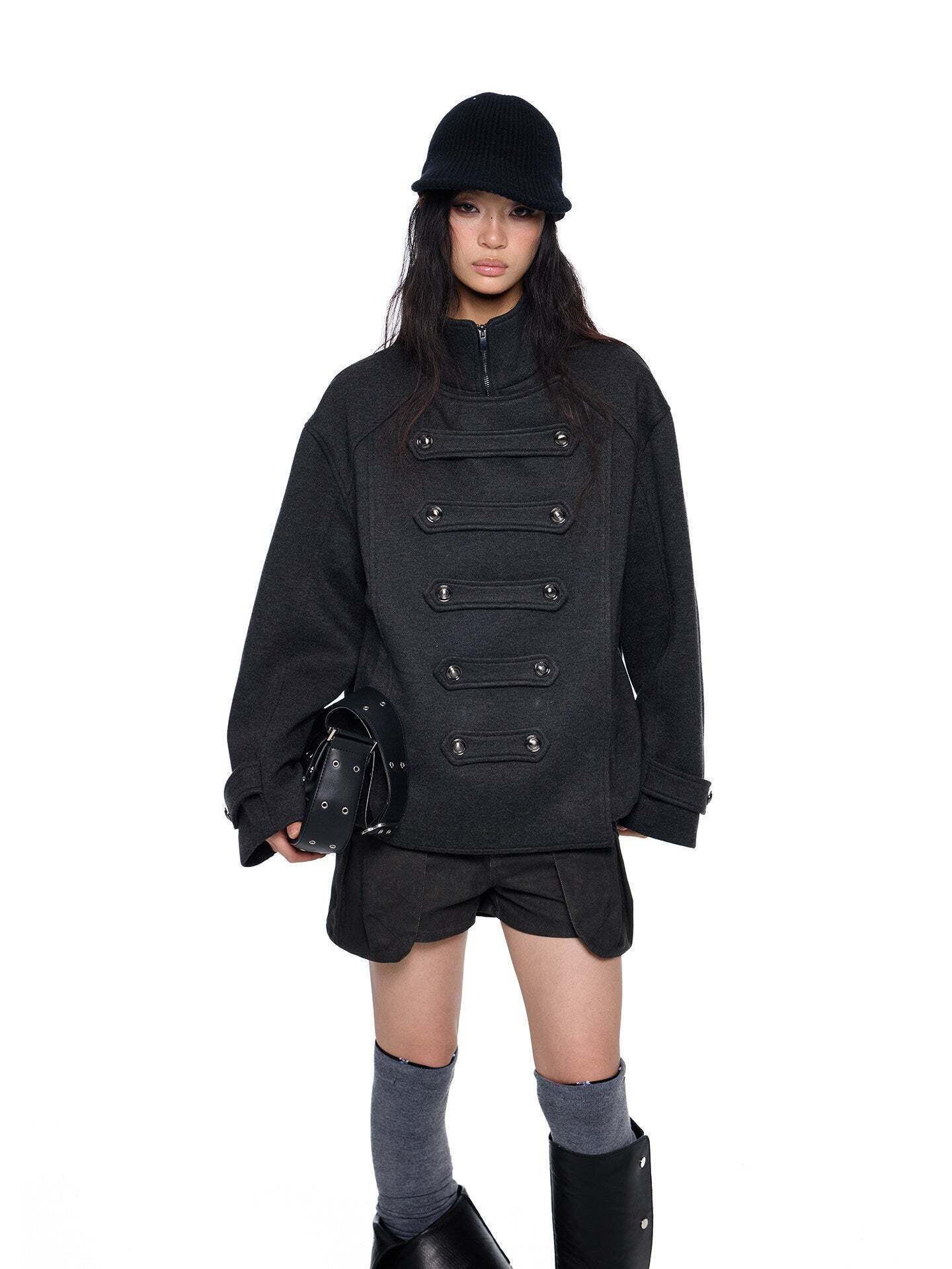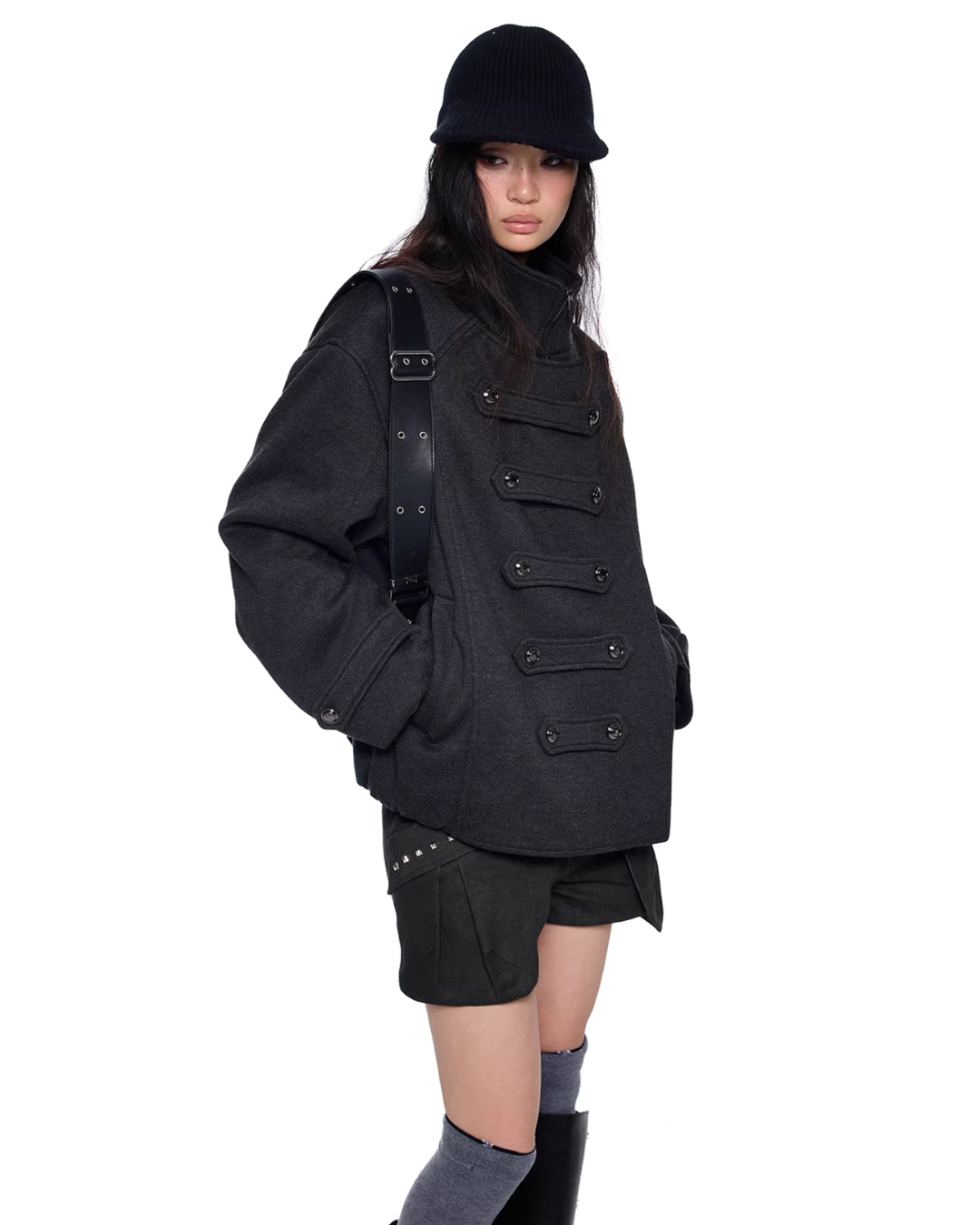 The bold front details and button usage catch the eye of the Napoleon jacket.