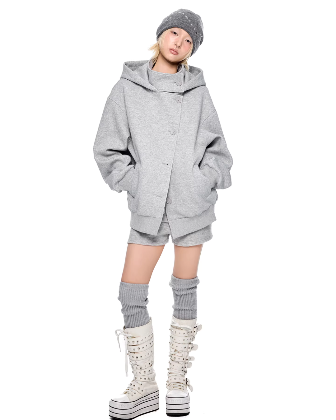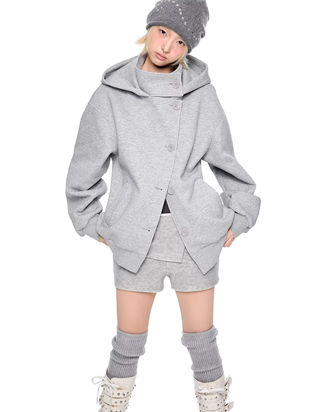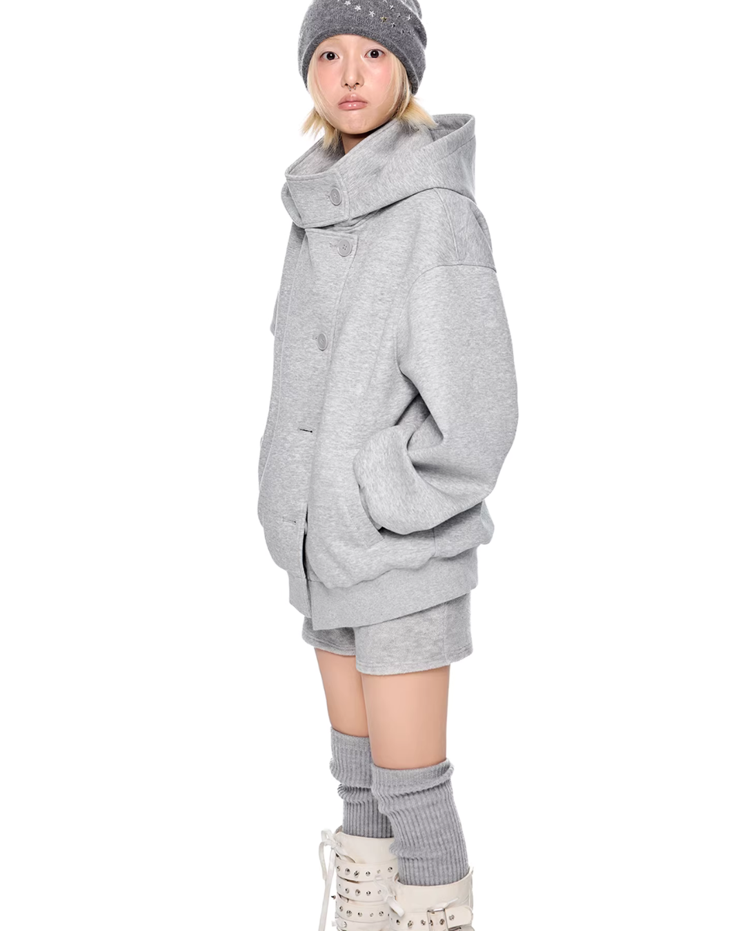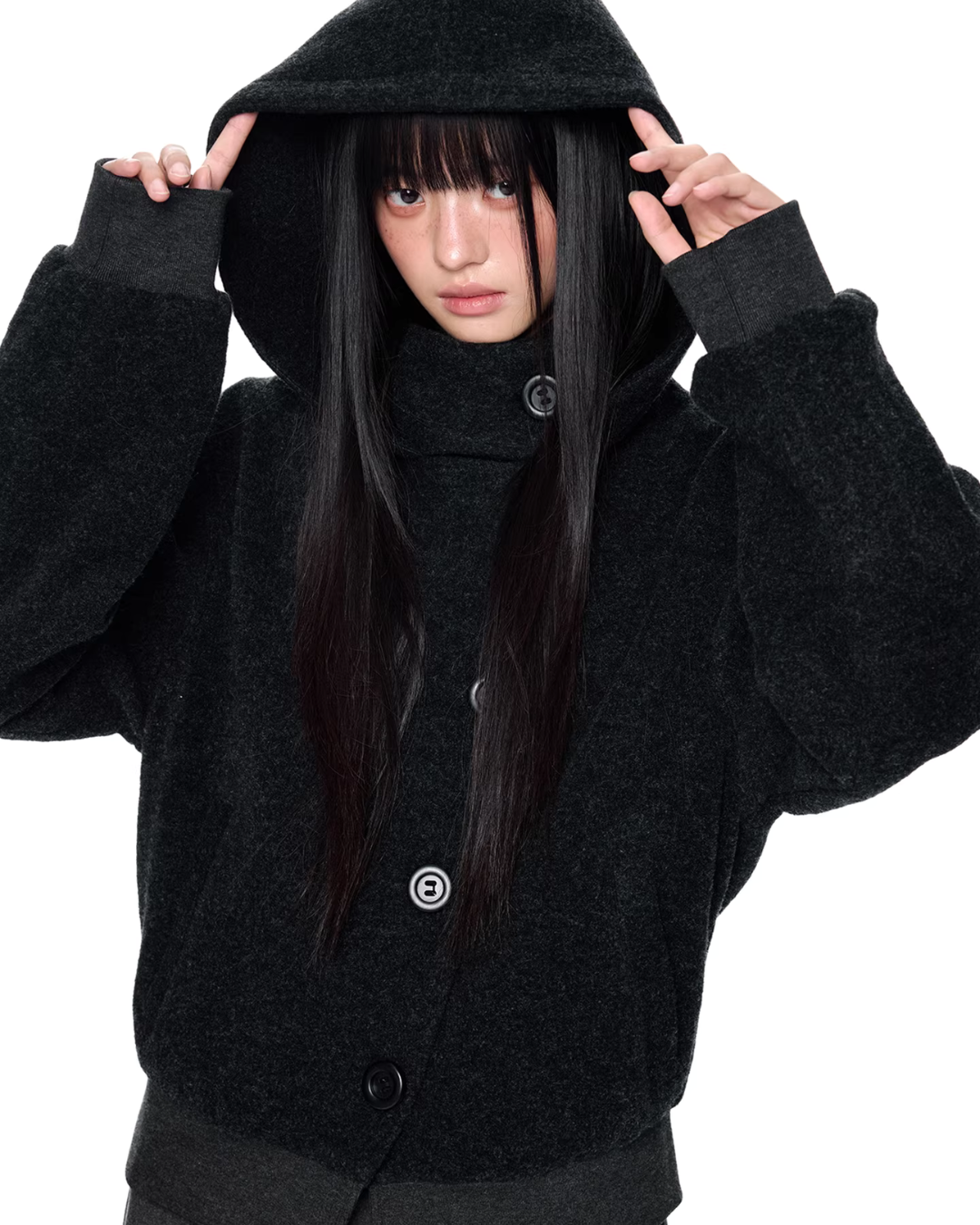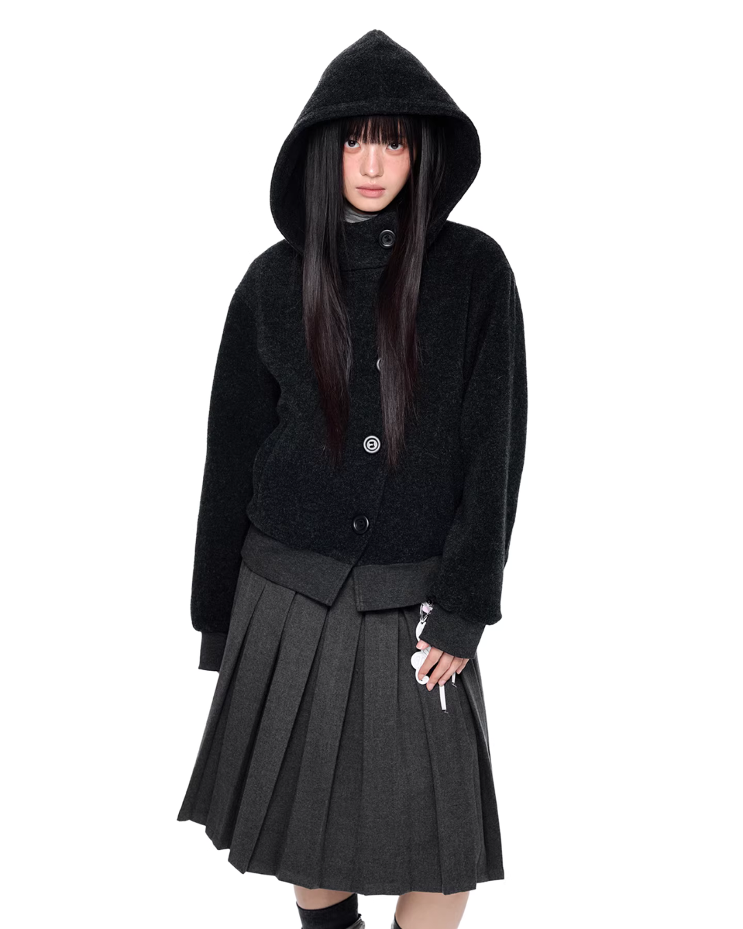The elegant fur texture and compact silhouette are the charm of this hoodie coat.