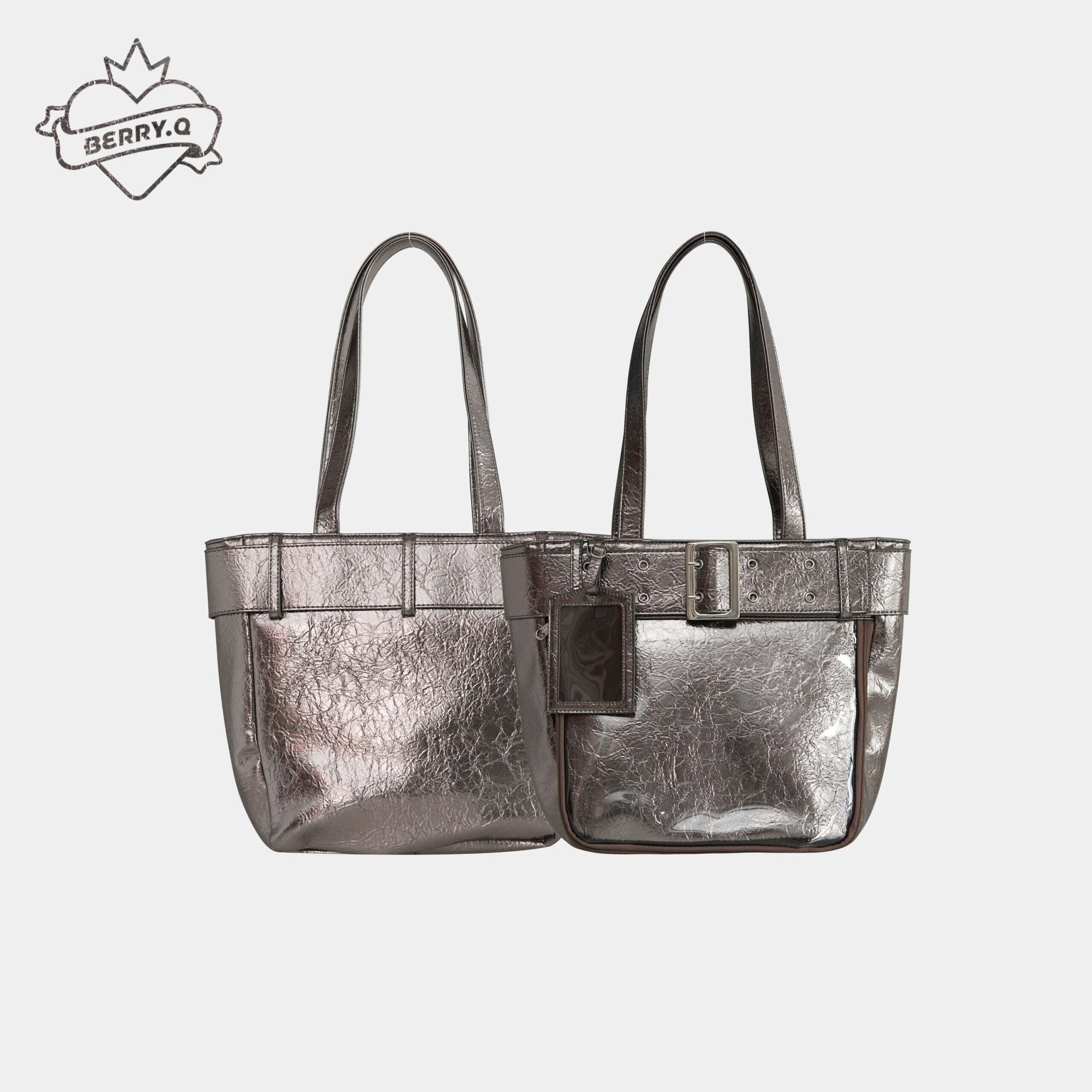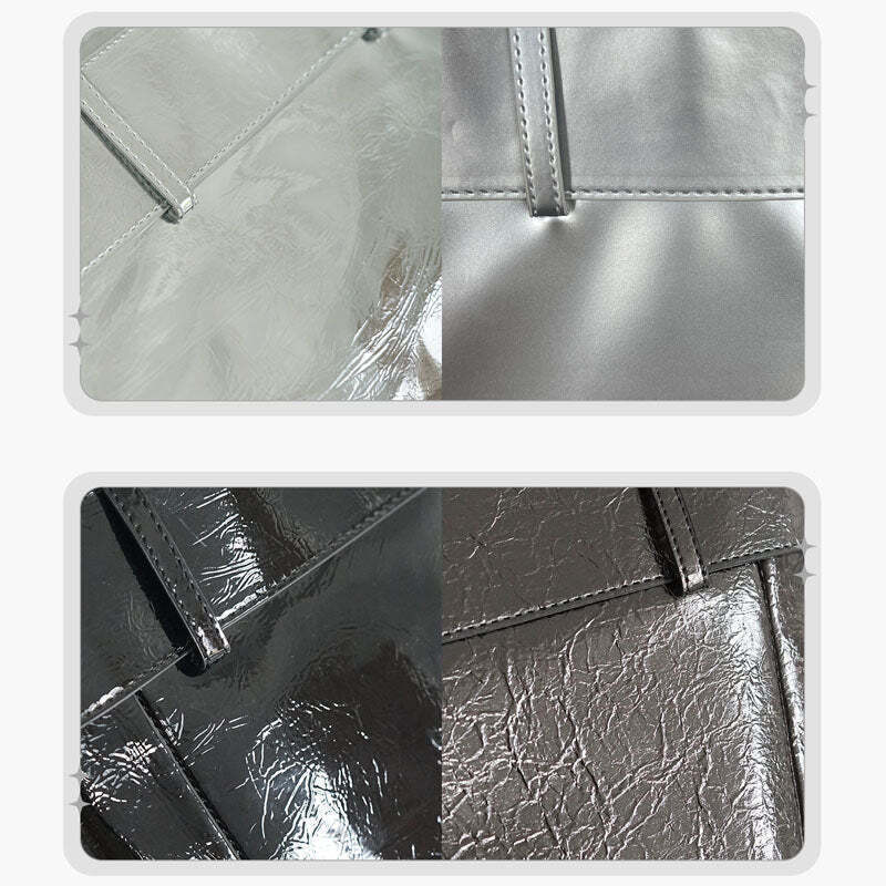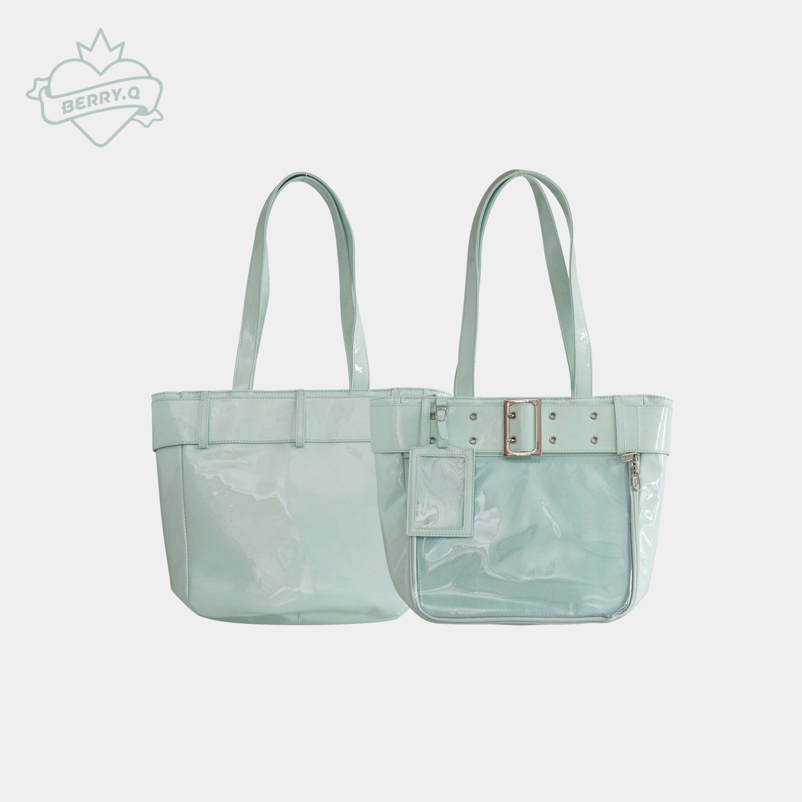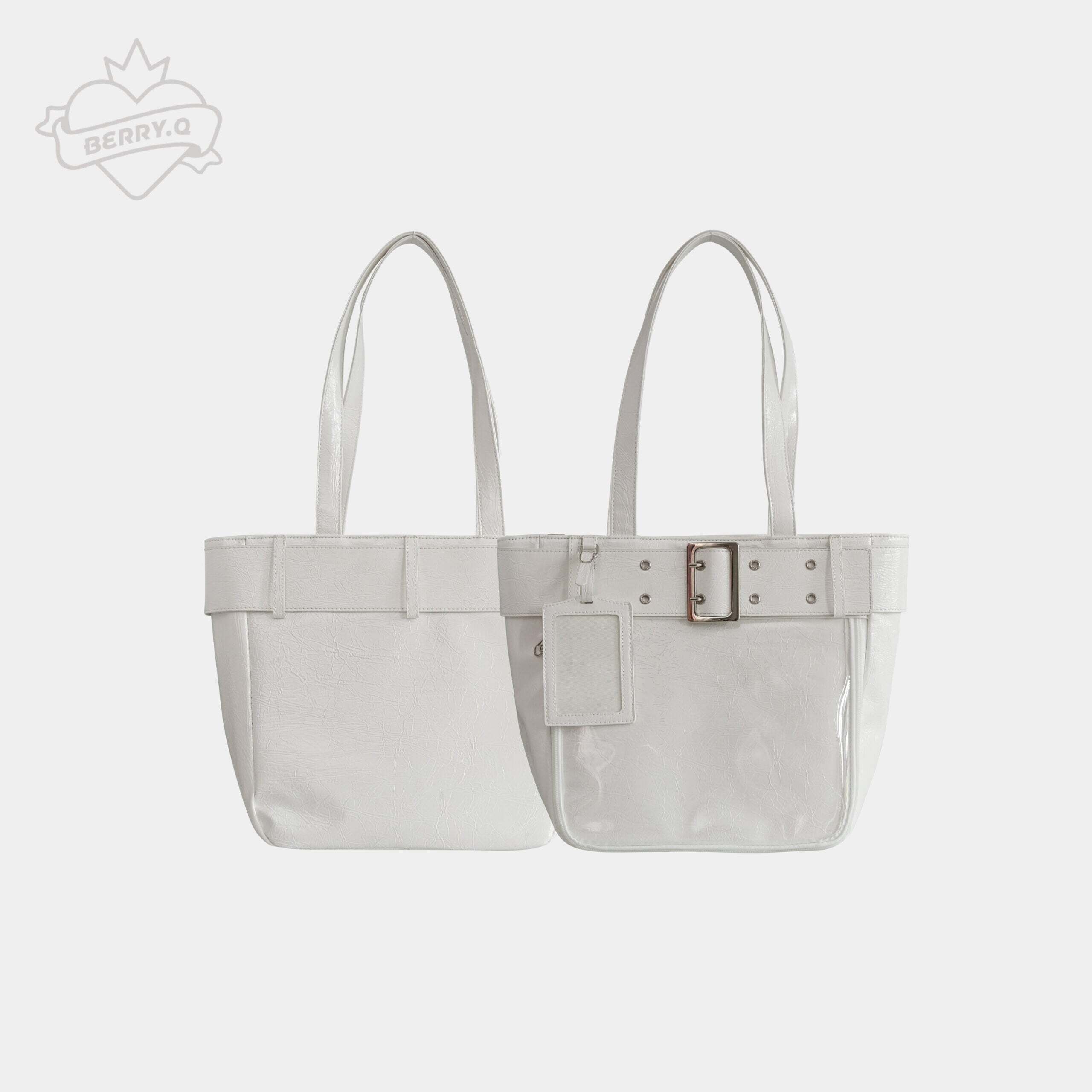 Silver Y2K Ita Tote Bag for Plushies and Pins is designed to display plushies, dolls, pins, and badges while keeping everyday essentials organized.