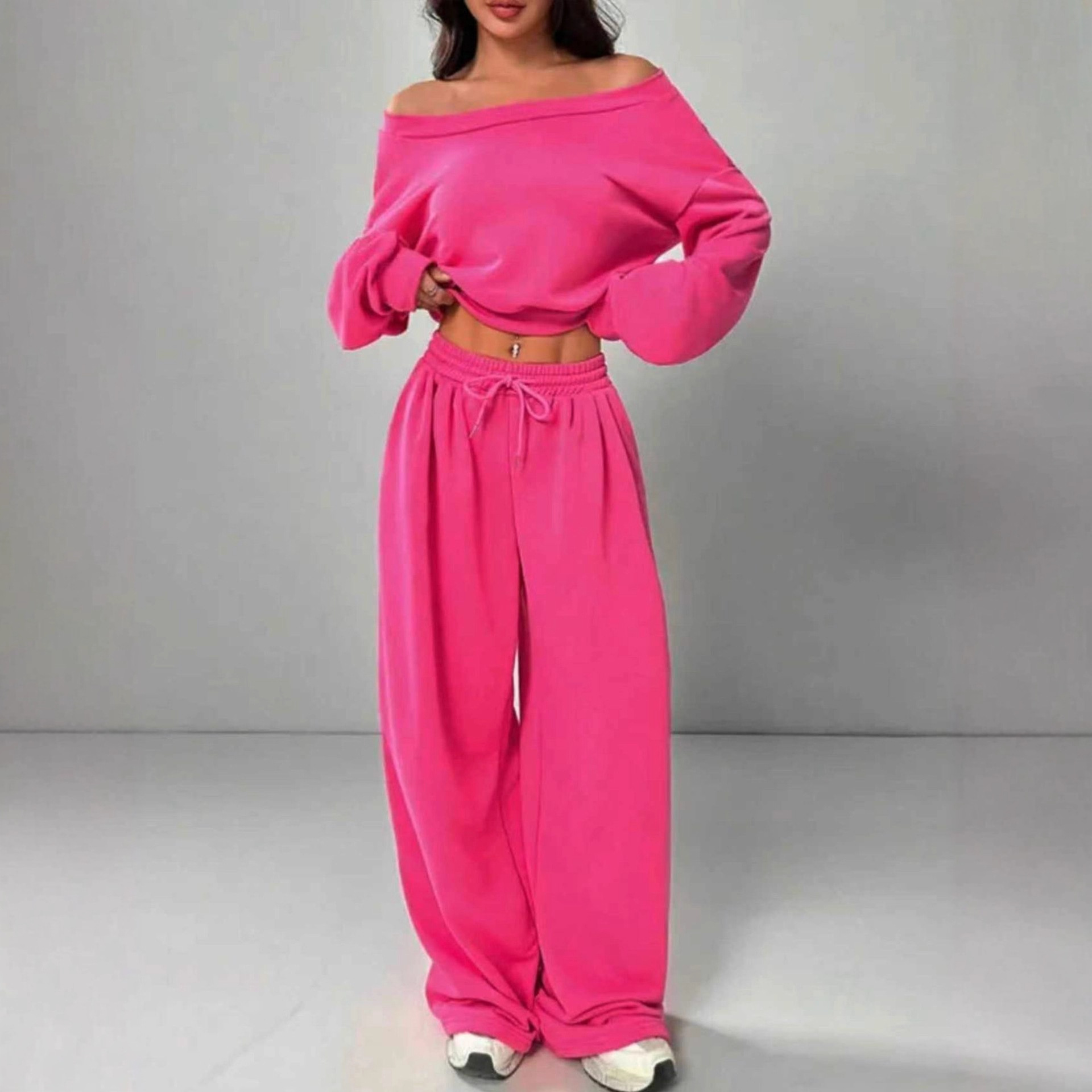 Be the first to review “Slim-fit Off-shoulder Crop Top With Casual Pants Set” Cancel reply