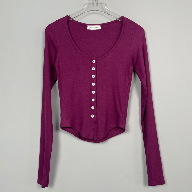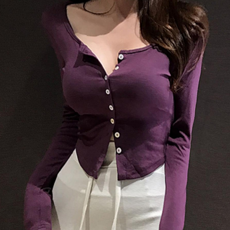 Elevate your autumn and winter wardrobe with our Slim-Fit Purple Long Sleeve Cardigan T-Shirt for Women, designed to embrace your curves with a sexy, pure desire style. Featuring a chic half-open collar, this versatile top is perfect for layering or wearing solo, offering both comfort and sophistication for any occasion. Make a bold statement and enjoy the cozy warmth while showcasing your unique style add this essential piece to your cart today!