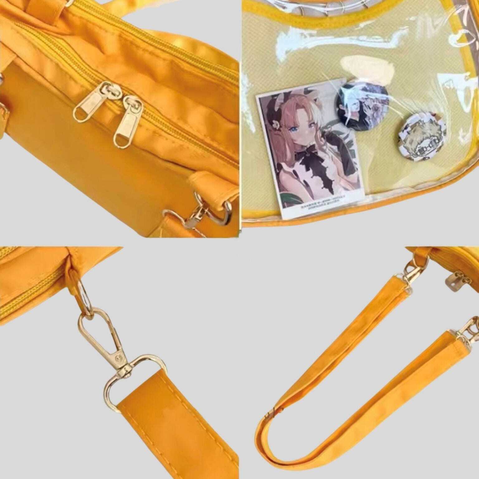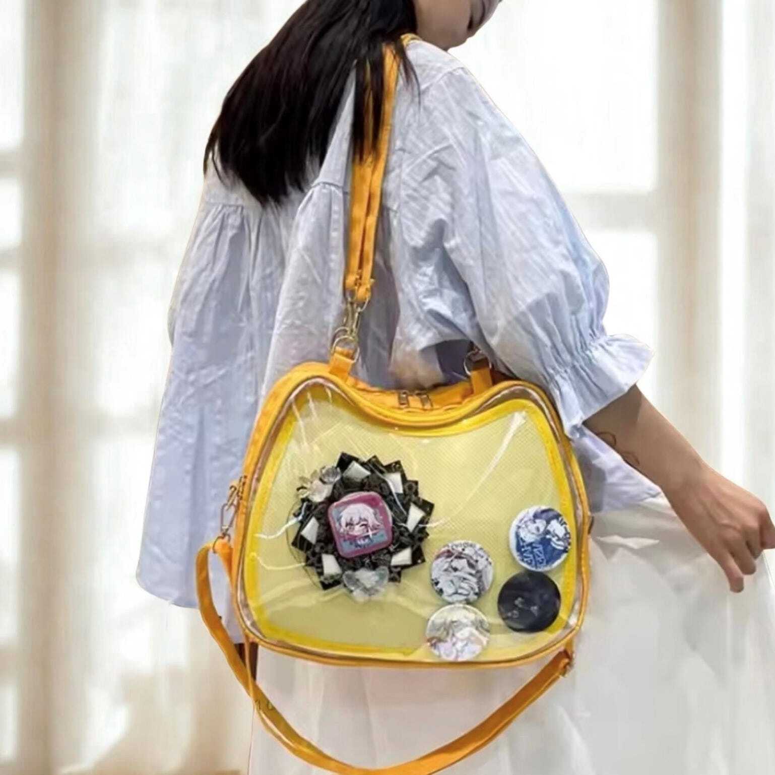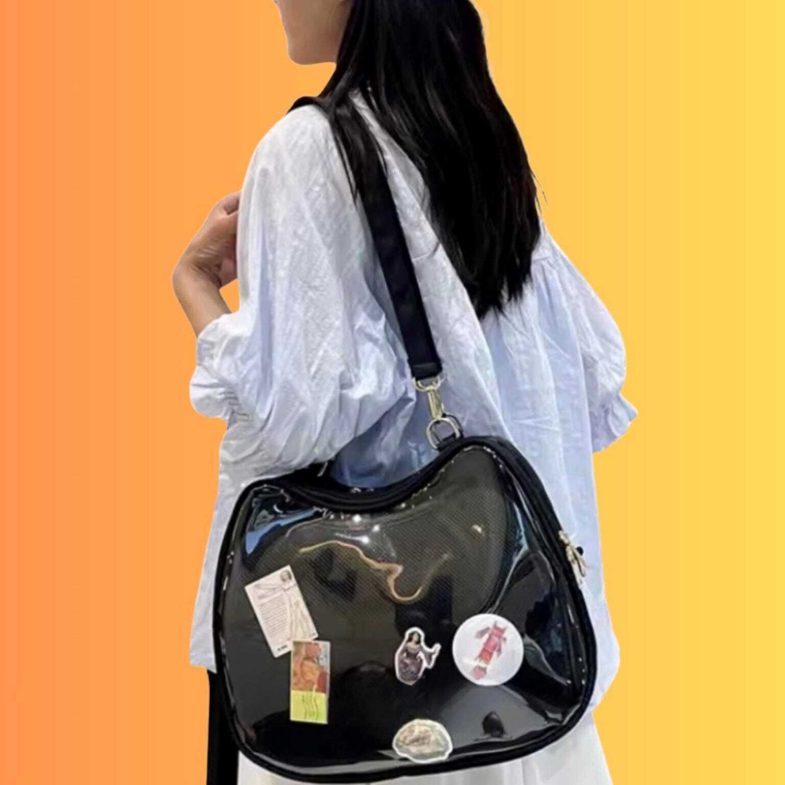 Small Black Convertible Ita Bag combines everyday carry with a clear display area for pins, badges, charms, or character merch.