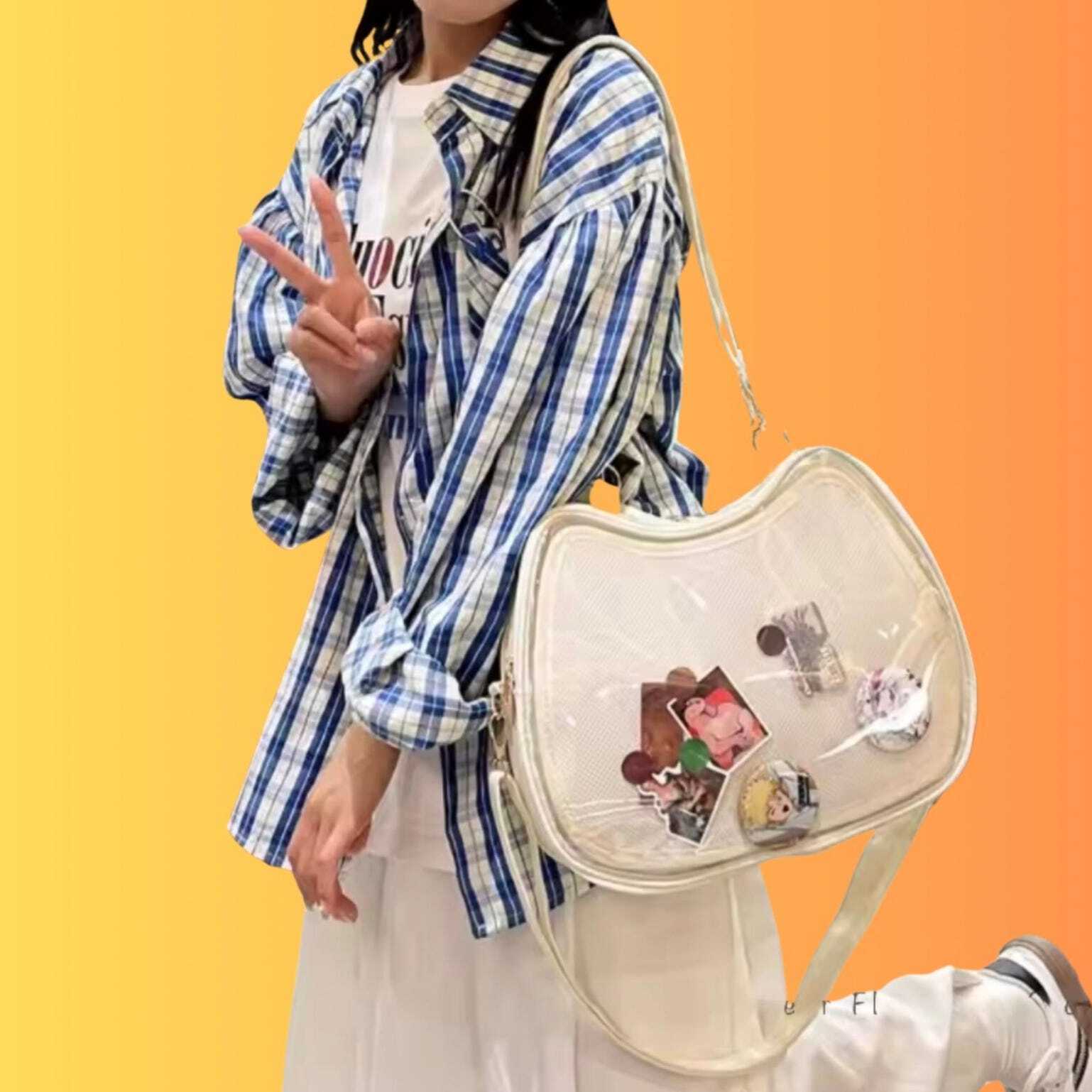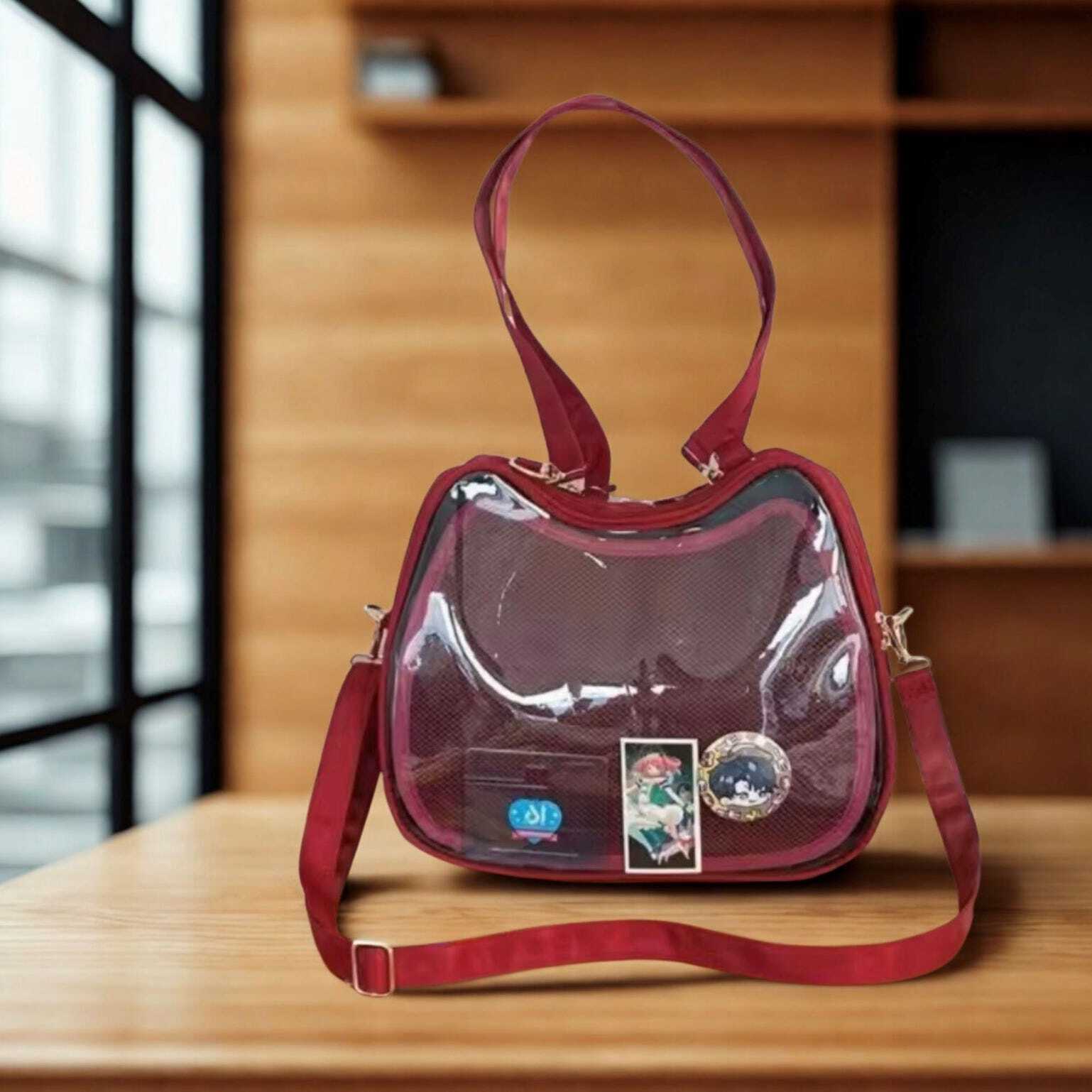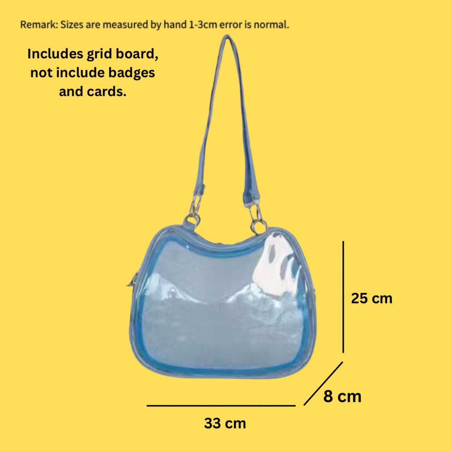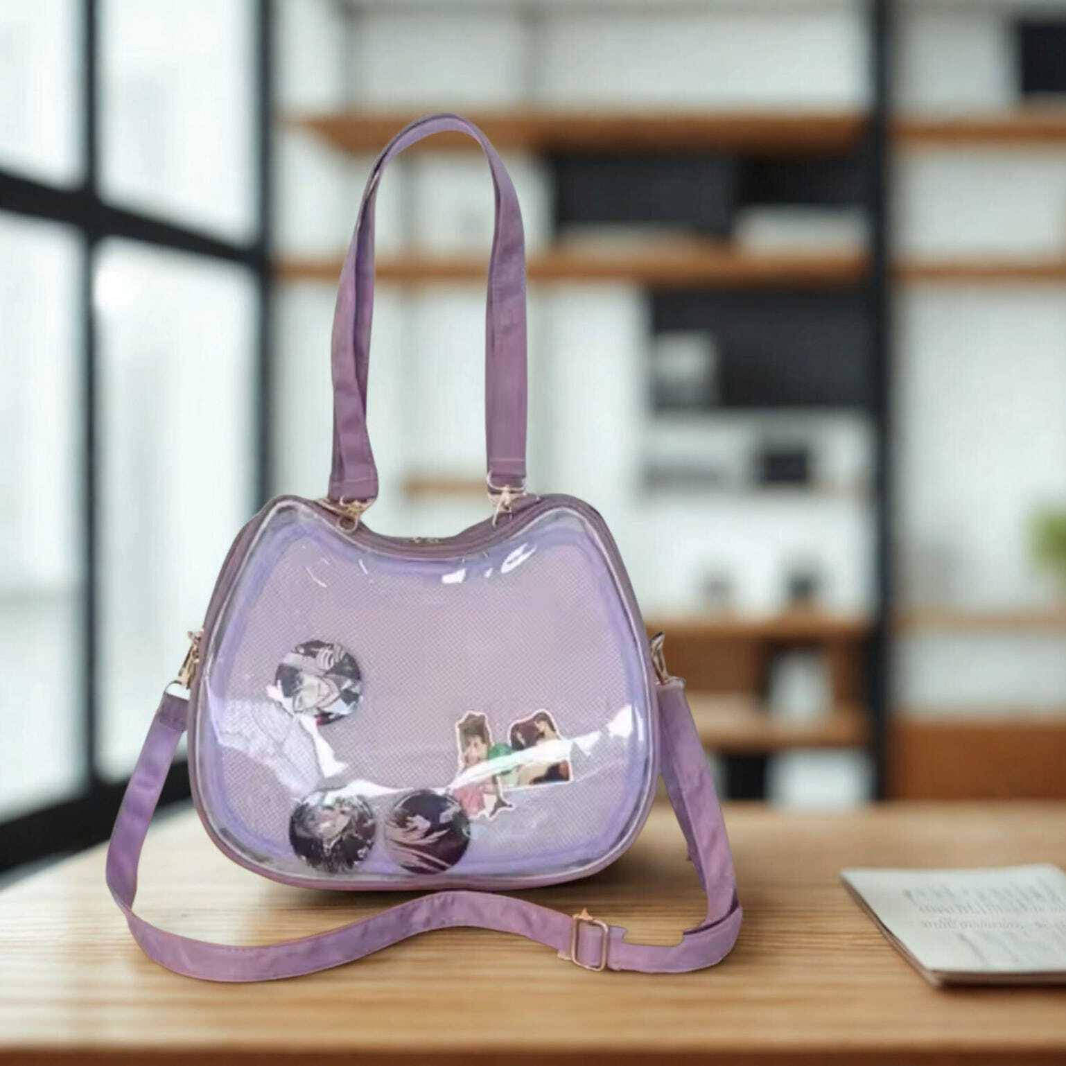 Small Black Convertible Ita Bag combines everyday carry with a clear display area for pins, badges, charms, or character merch.