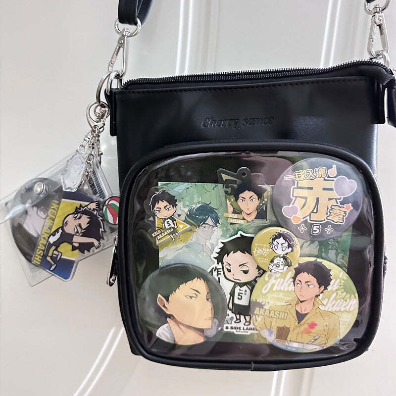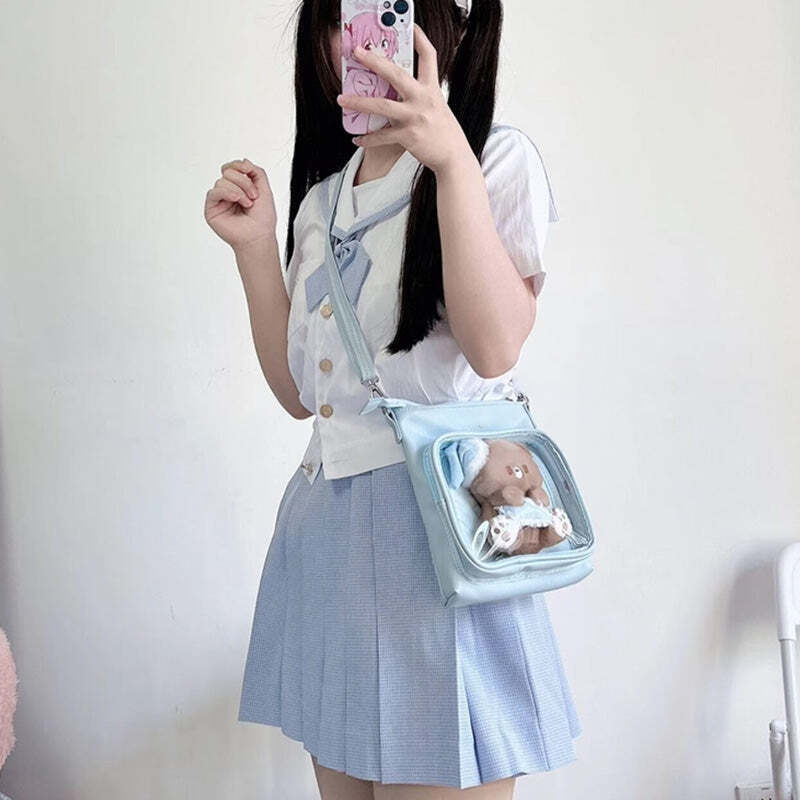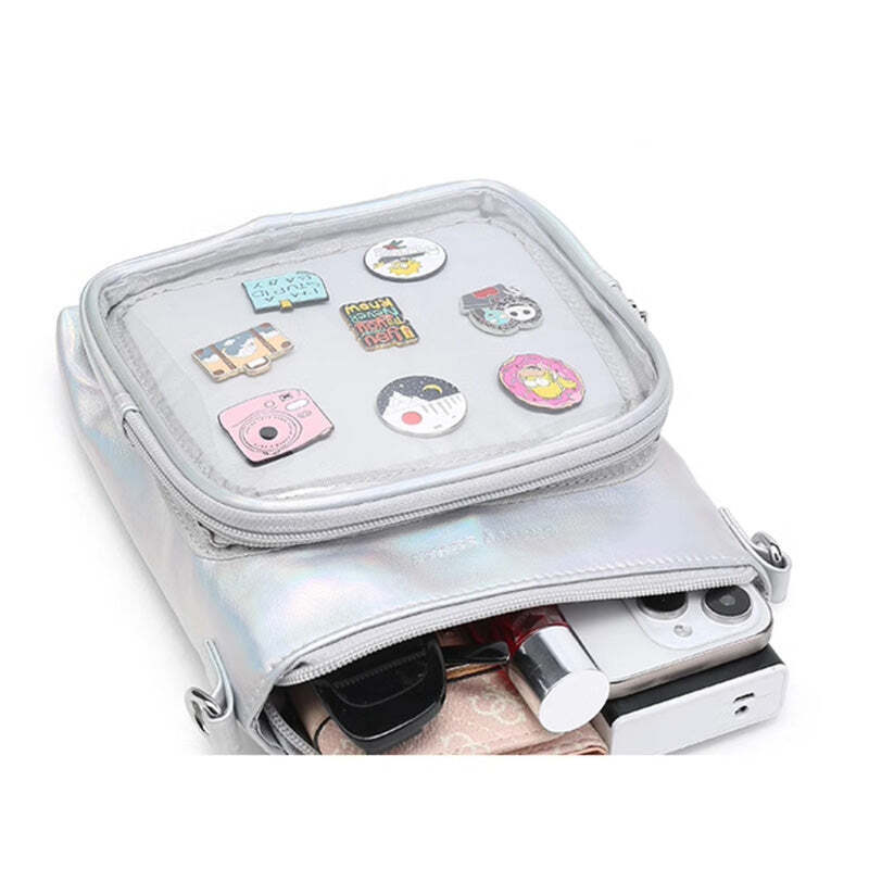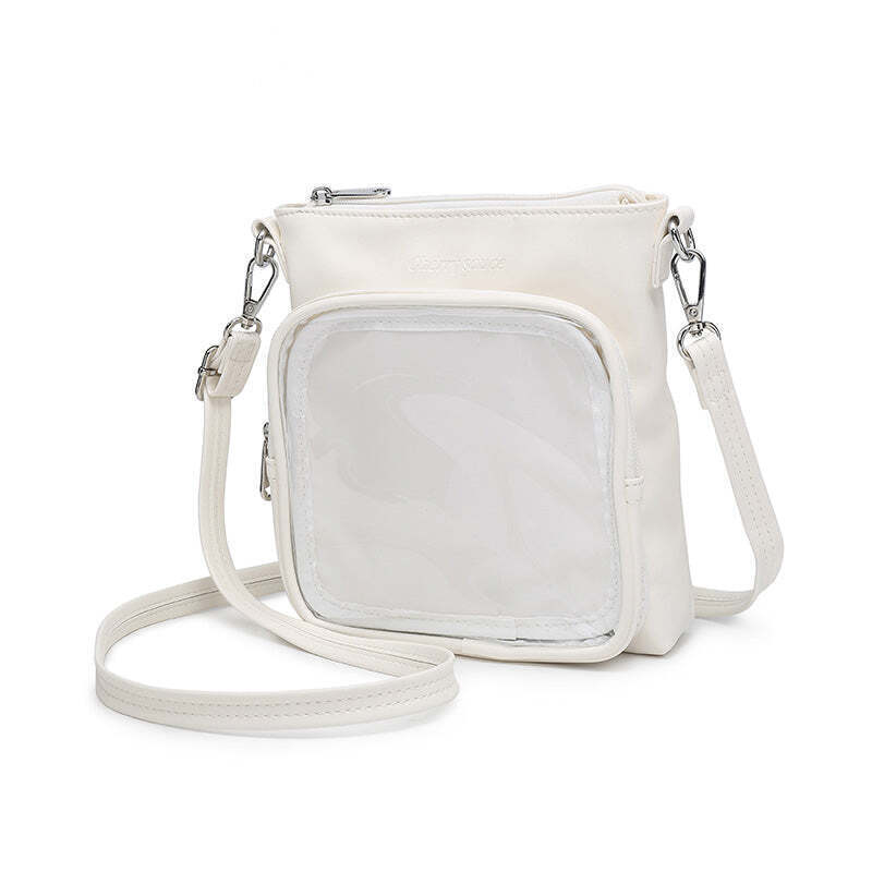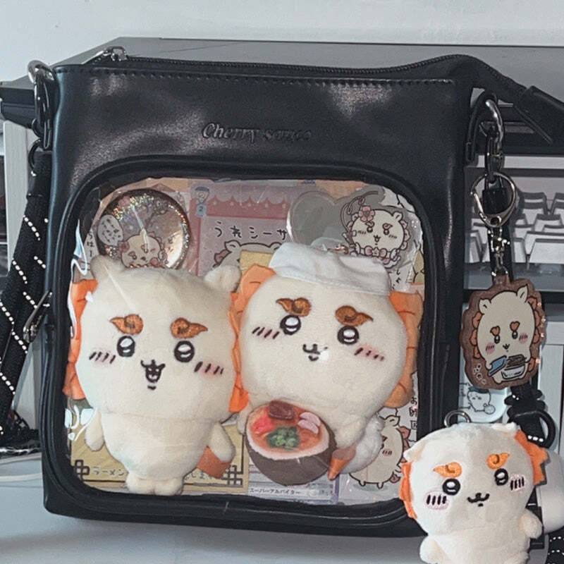 Small Ita Crossbody Bag with Clear Window and Included Insert for Plushies and Pins is designed to display plushies, dolls, pins, and badges while keeping everyday essentials organized.