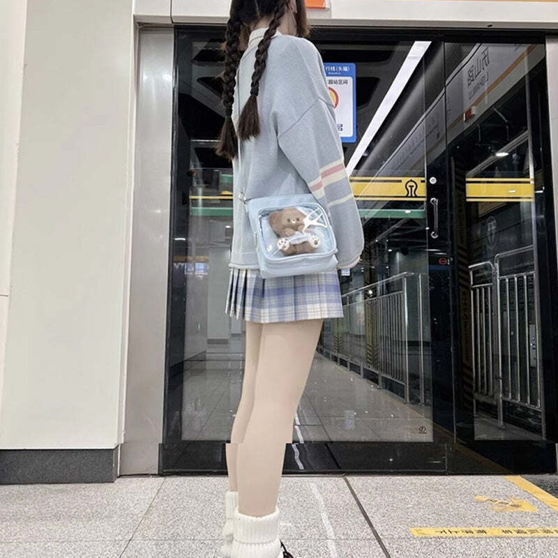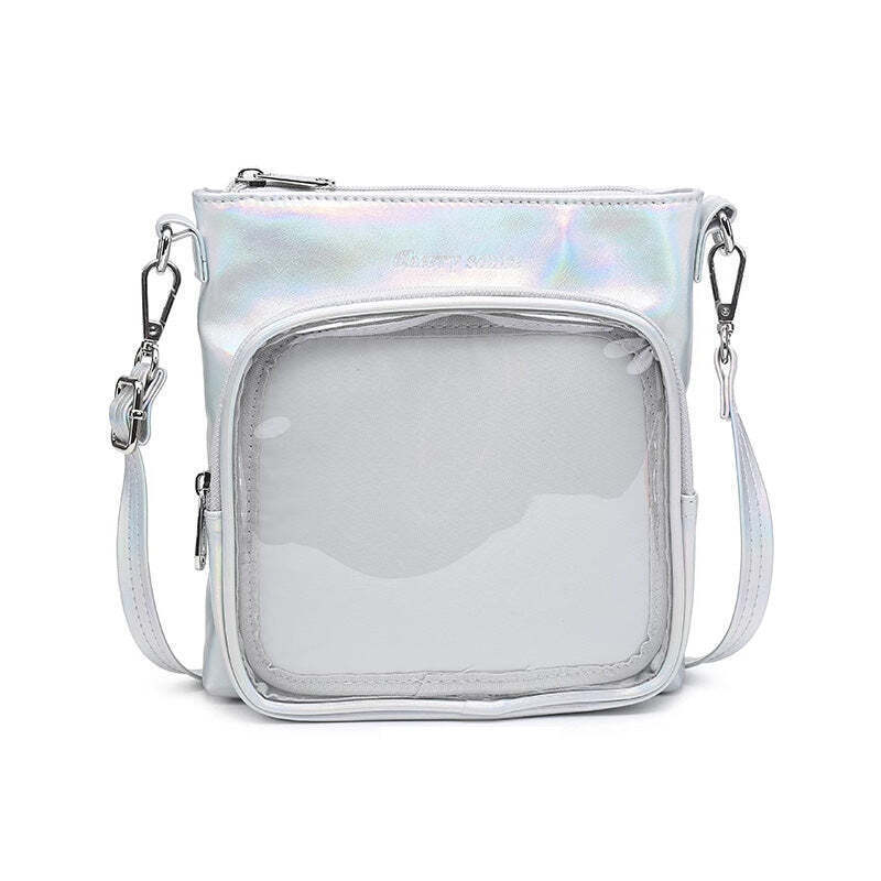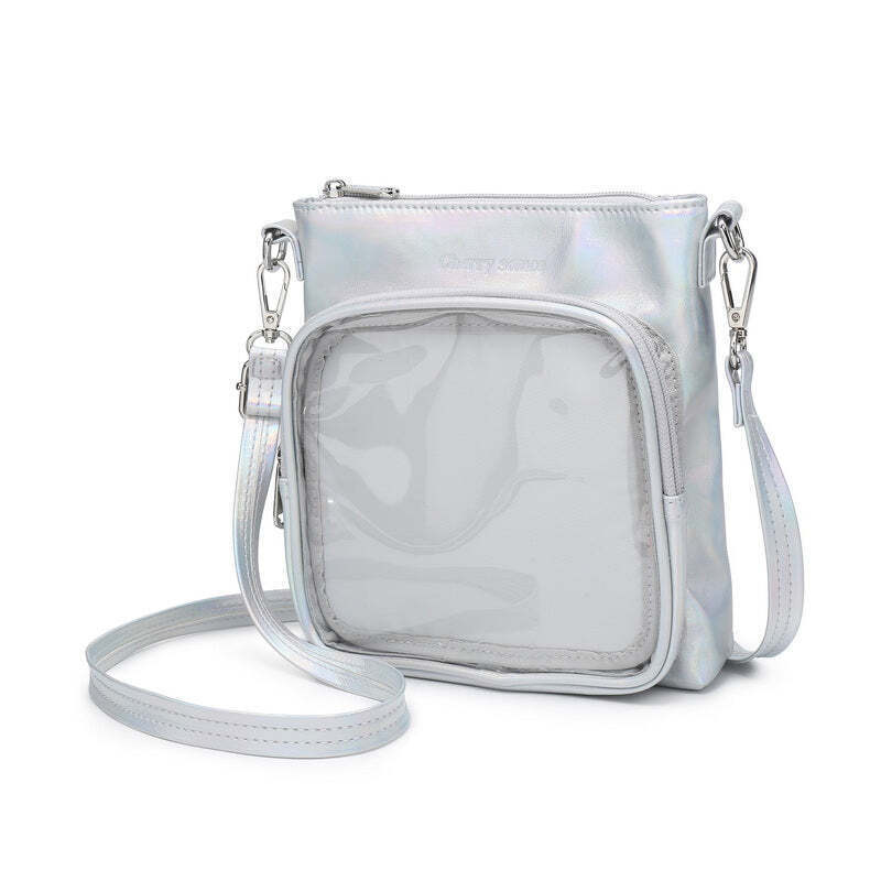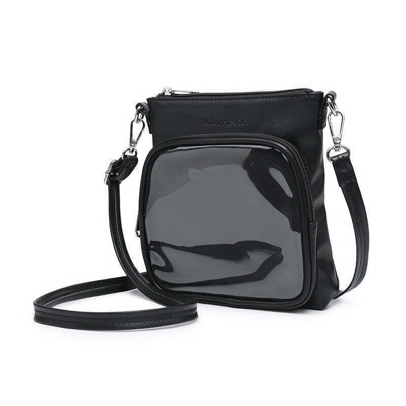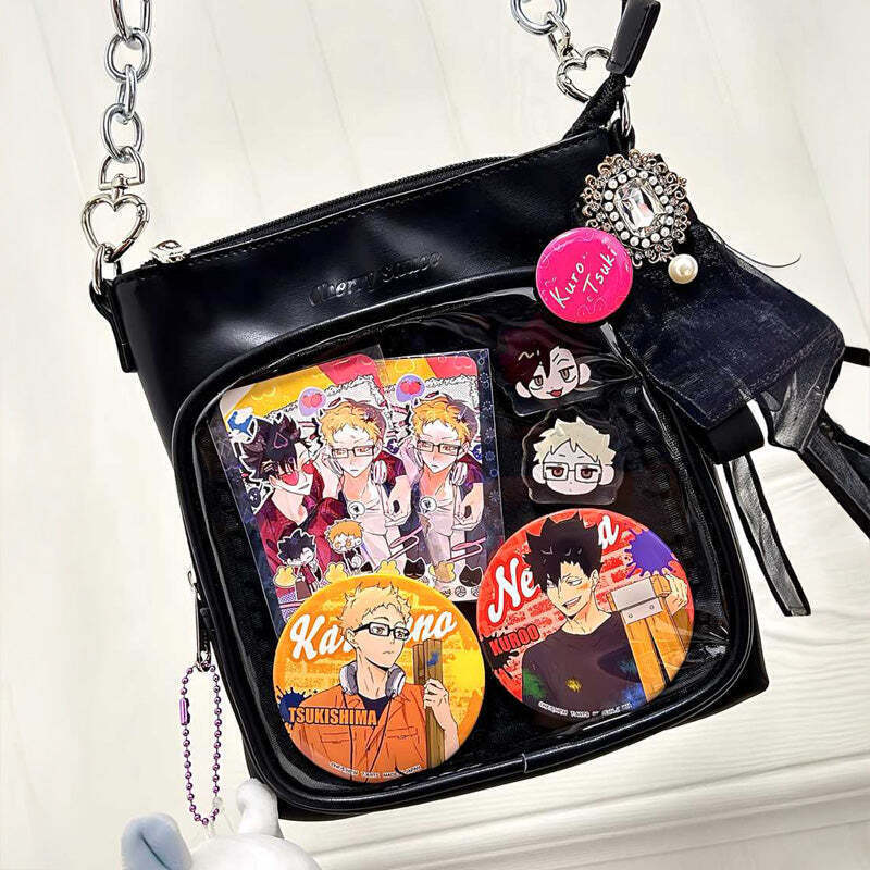 Small Ita Crossbody Bag with Clear Window and Included Insert for Plushies and Pins is designed to display plushies, dolls, pins, and badges while keeping everyday essentials organized.