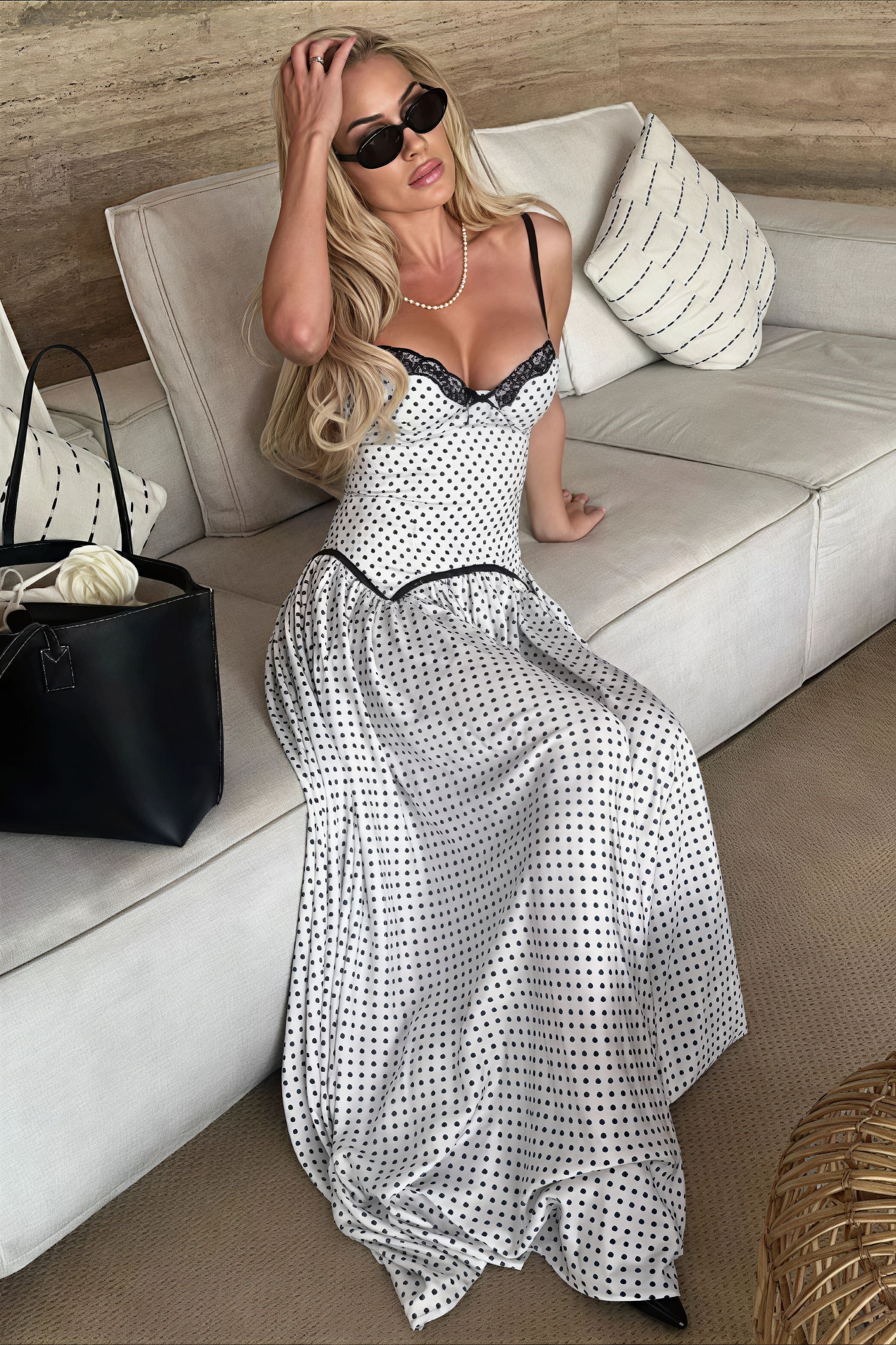 Spaghetti Strap Lace Polka Dot Maxi Dress