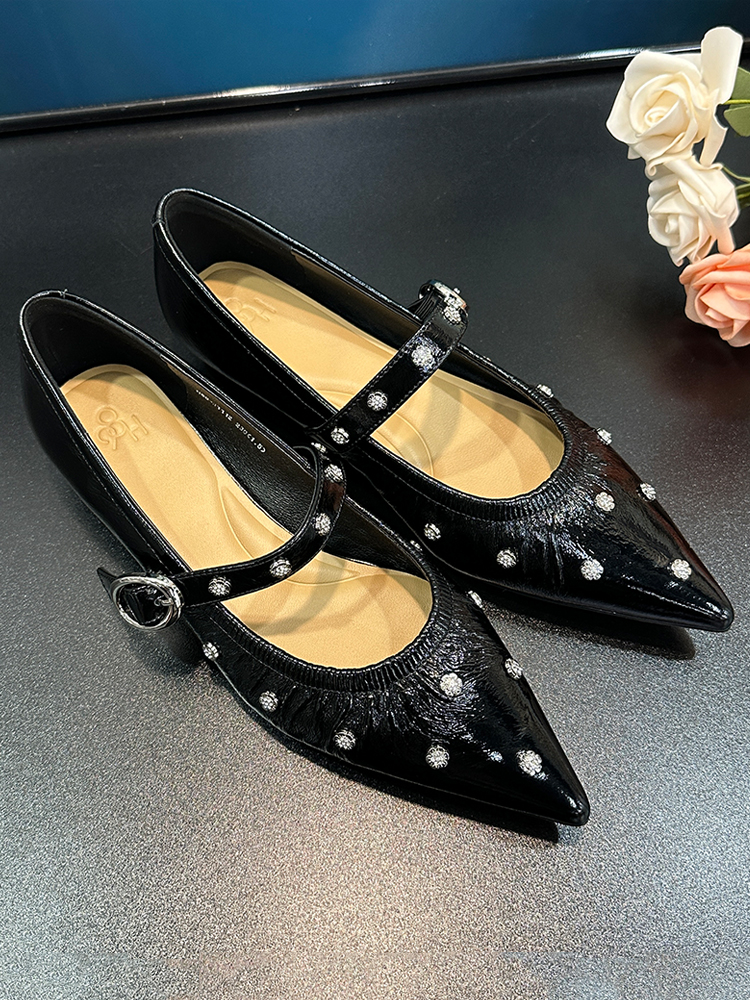 Elevate your spring wardrobe with our stunning Women’s Genuine Leather Pointed Toe Mary Jane Shoes, featuring a chic rhinestone one-strap design and comfortable low wedge heels. Crafted for a perfect fit, these shoes blend sophistication with everyday wearability, making them ideal for both casual outings and special occasions. Step out in style and confidence add these must-have shoes to your cart today!