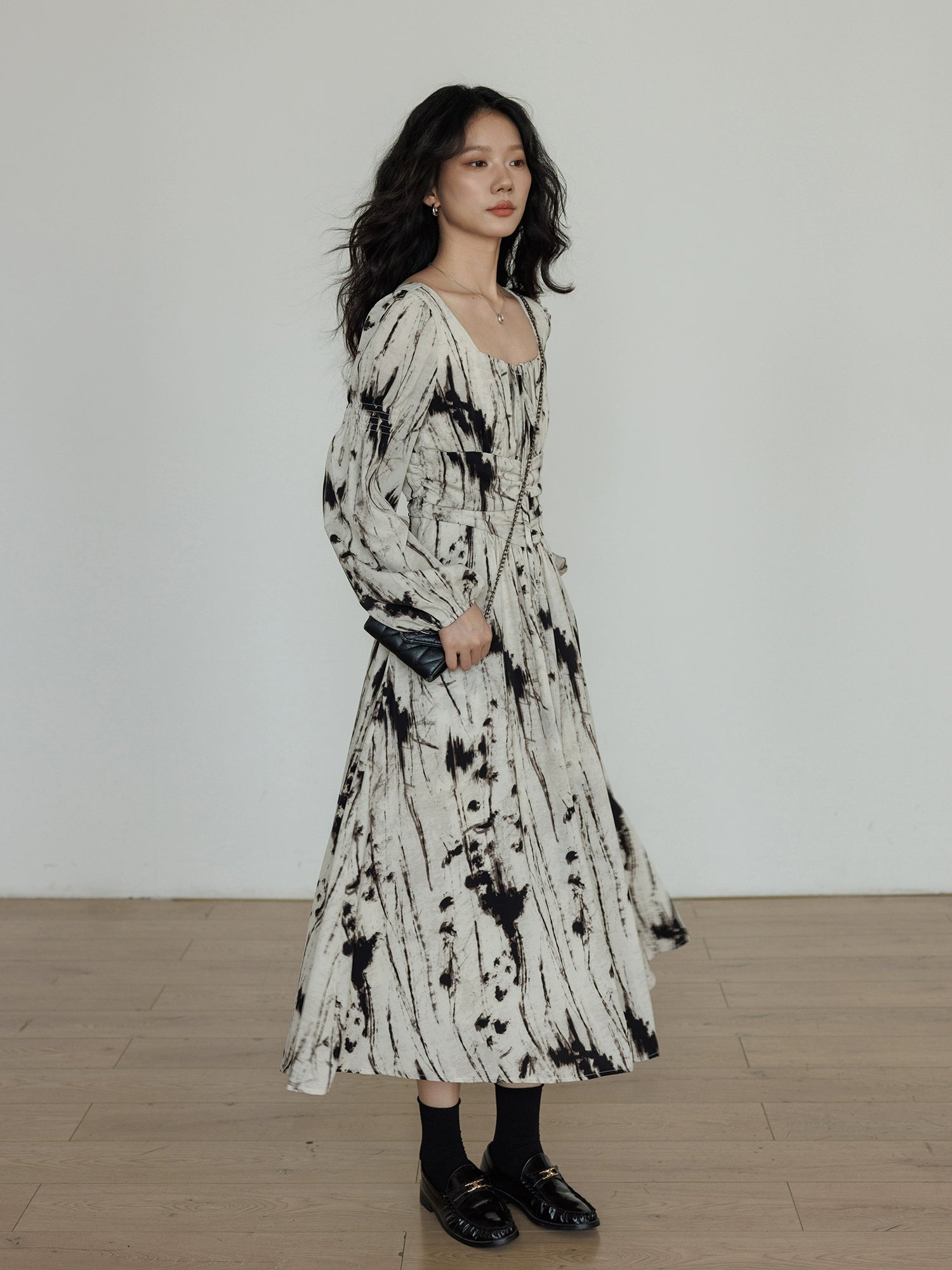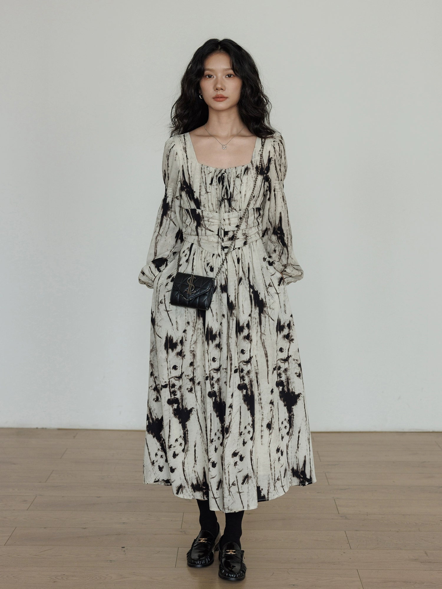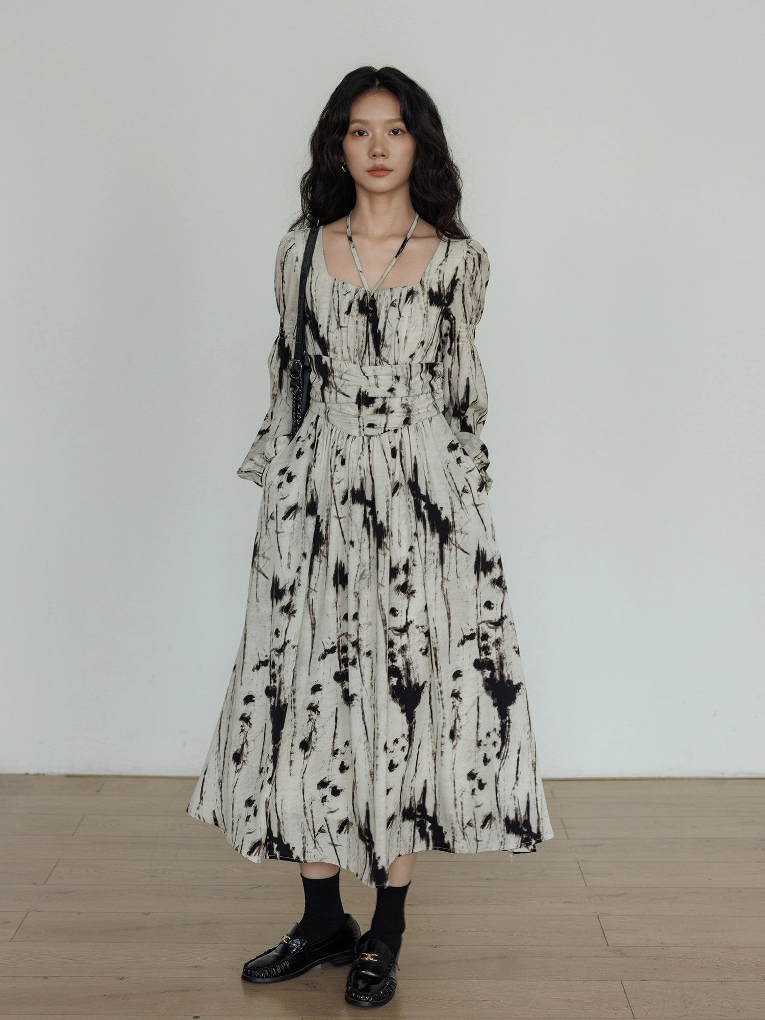 A long dress that completes a high-sense coordination instantly.