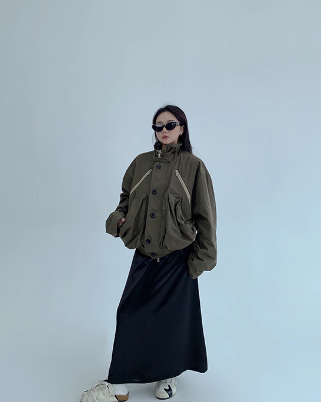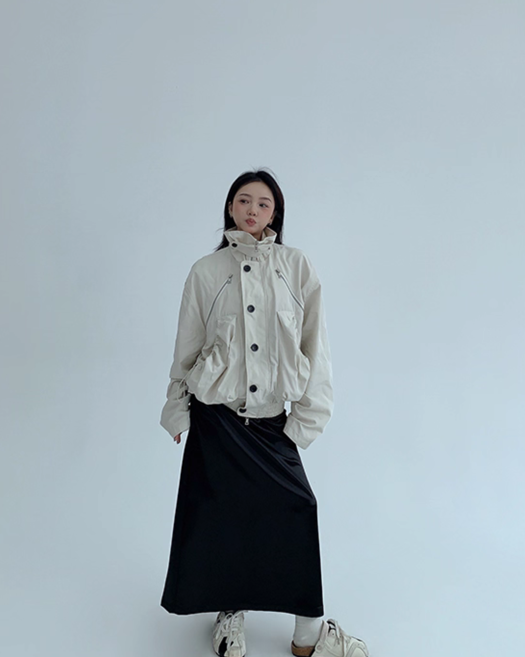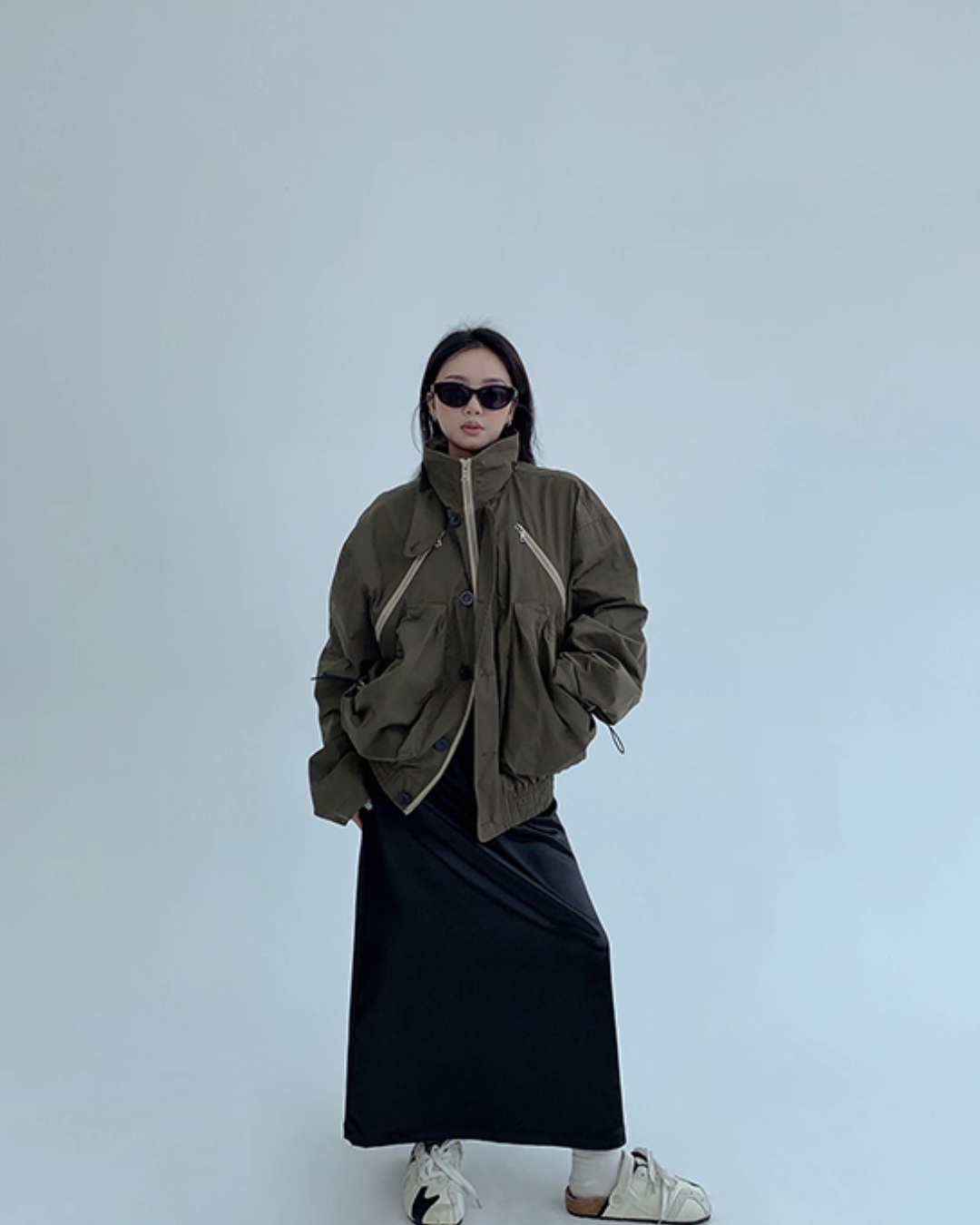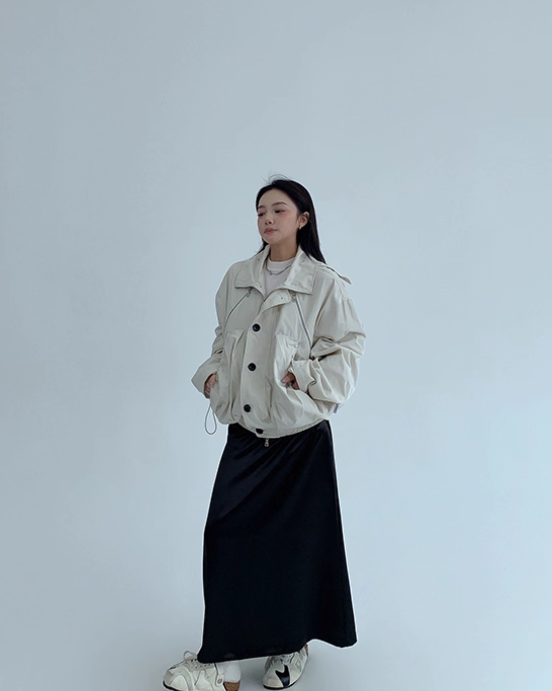 A relaxed silhouette creates a street vibe.