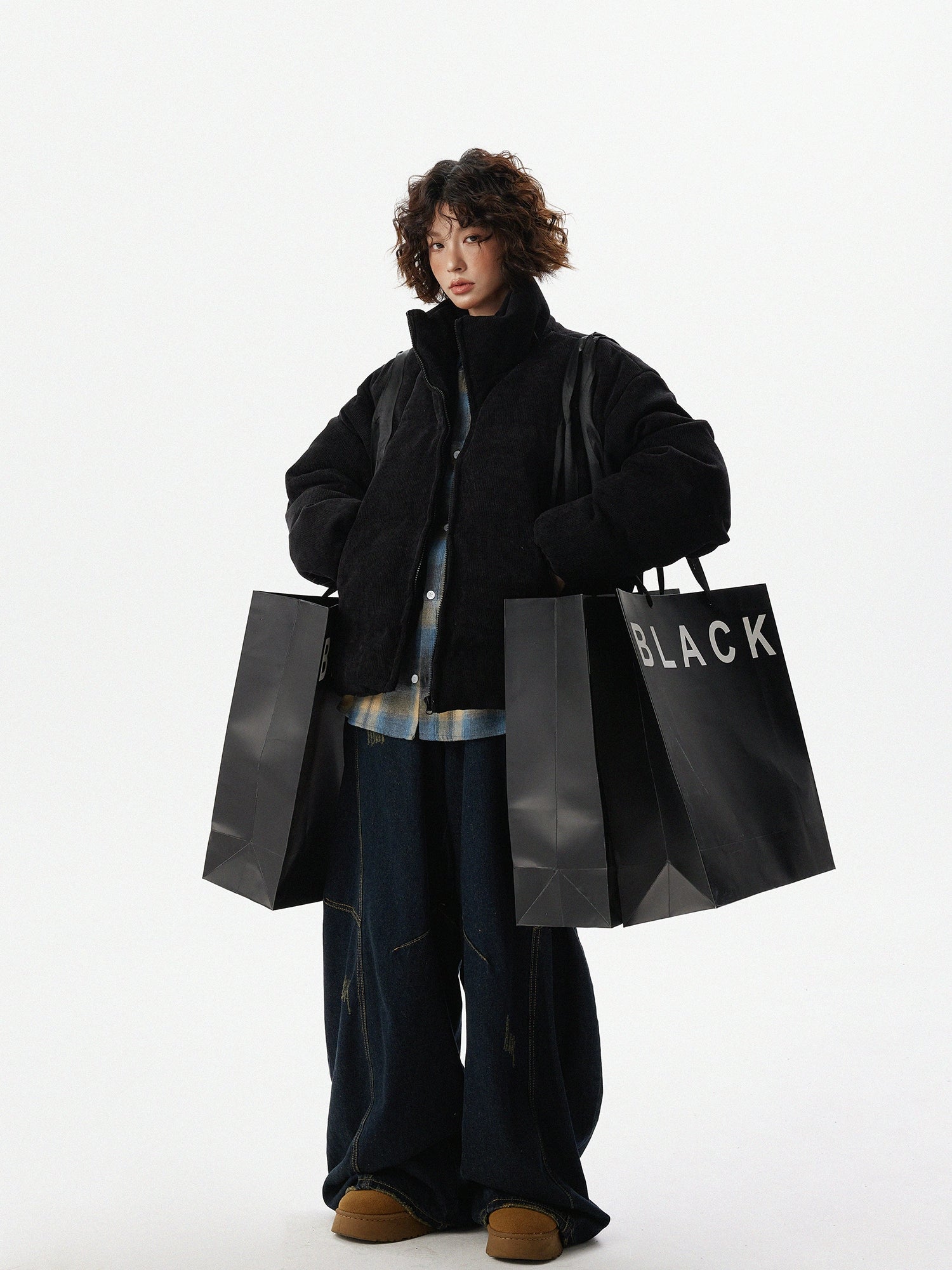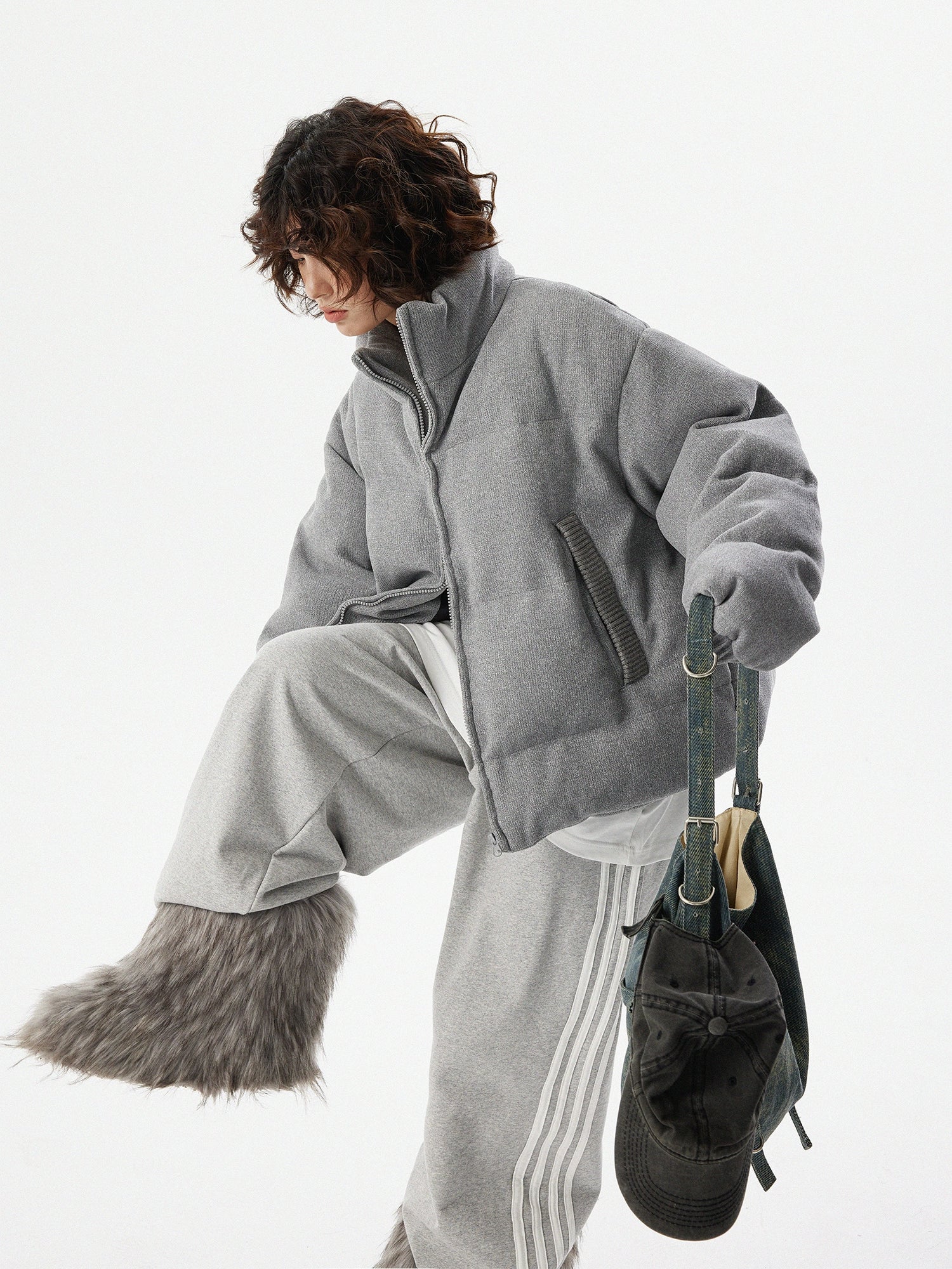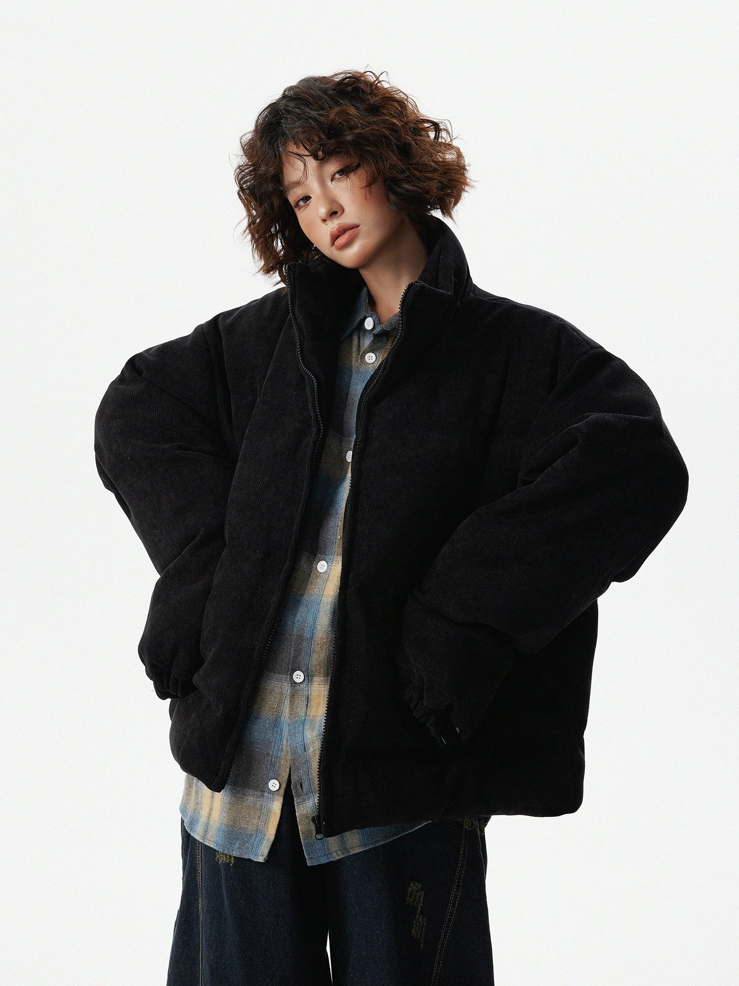 A down jacket characterized by its fluffy texture.