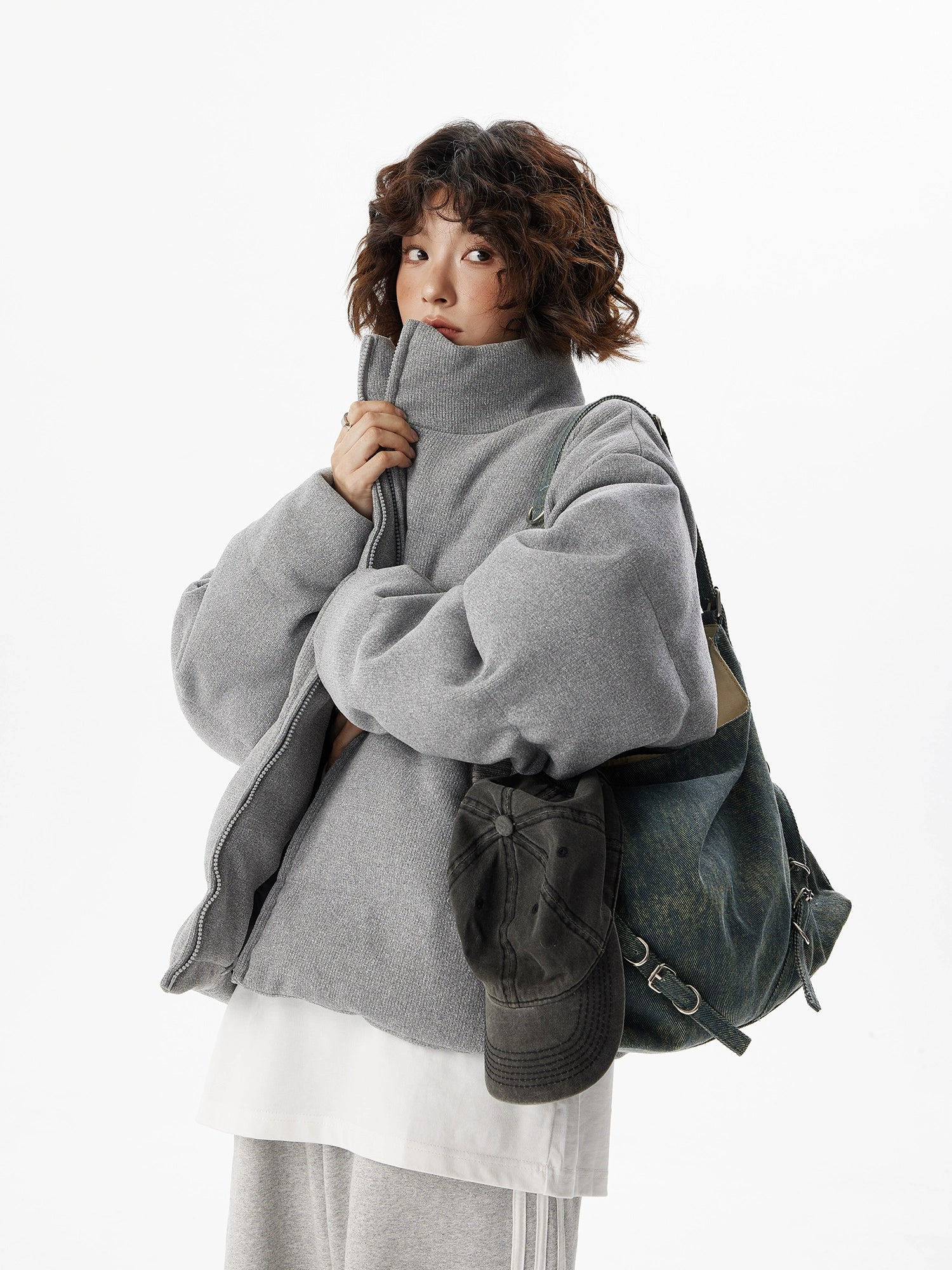 With a high-neck design that enhances the appearance of a small face while maintaining good heat retention.
