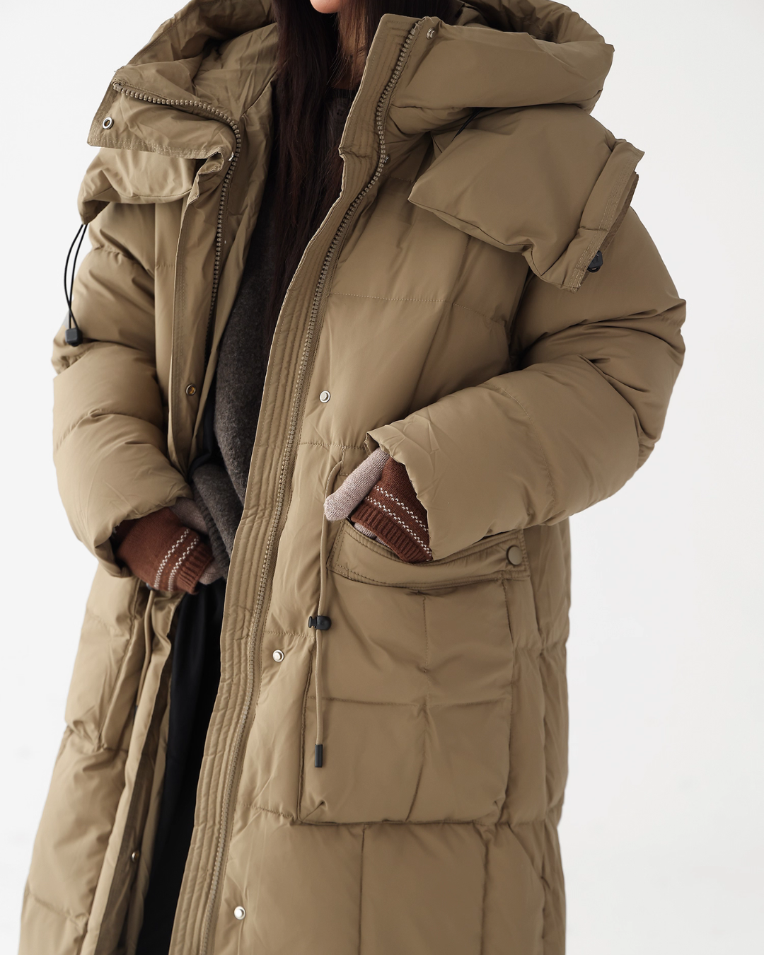 A down coat that will be active as the main outerwear for the cold season.