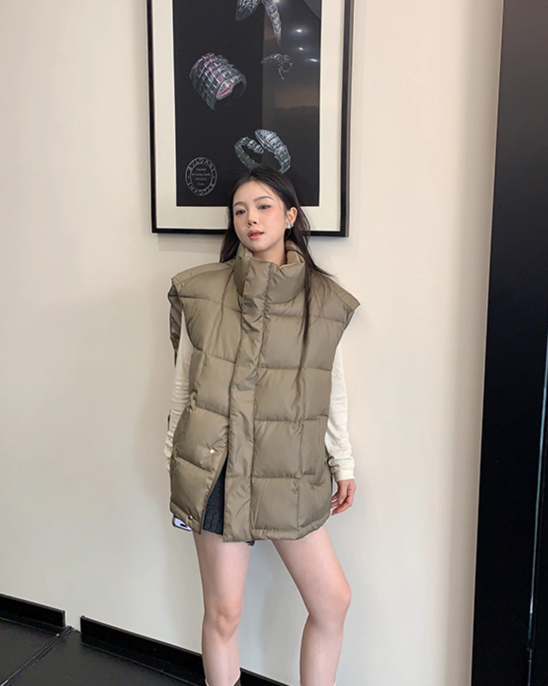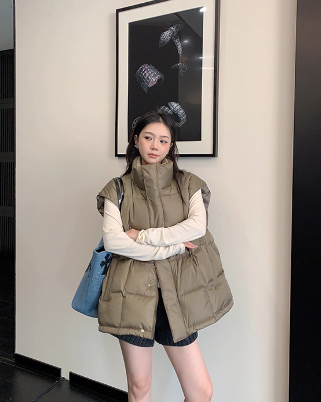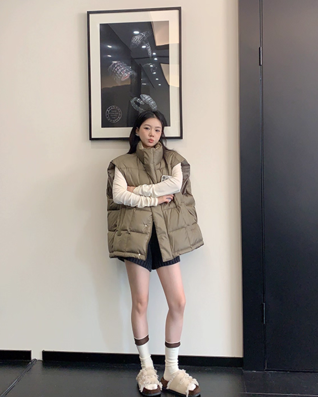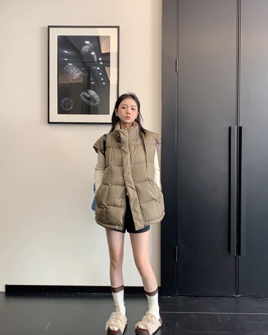 With a stand collar, it has an elegant design that keeps the neck warm.