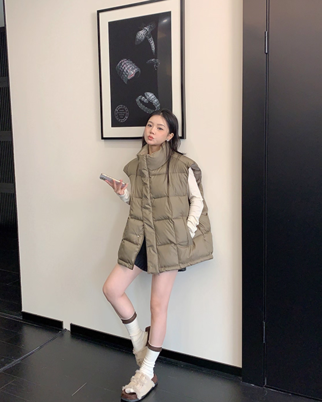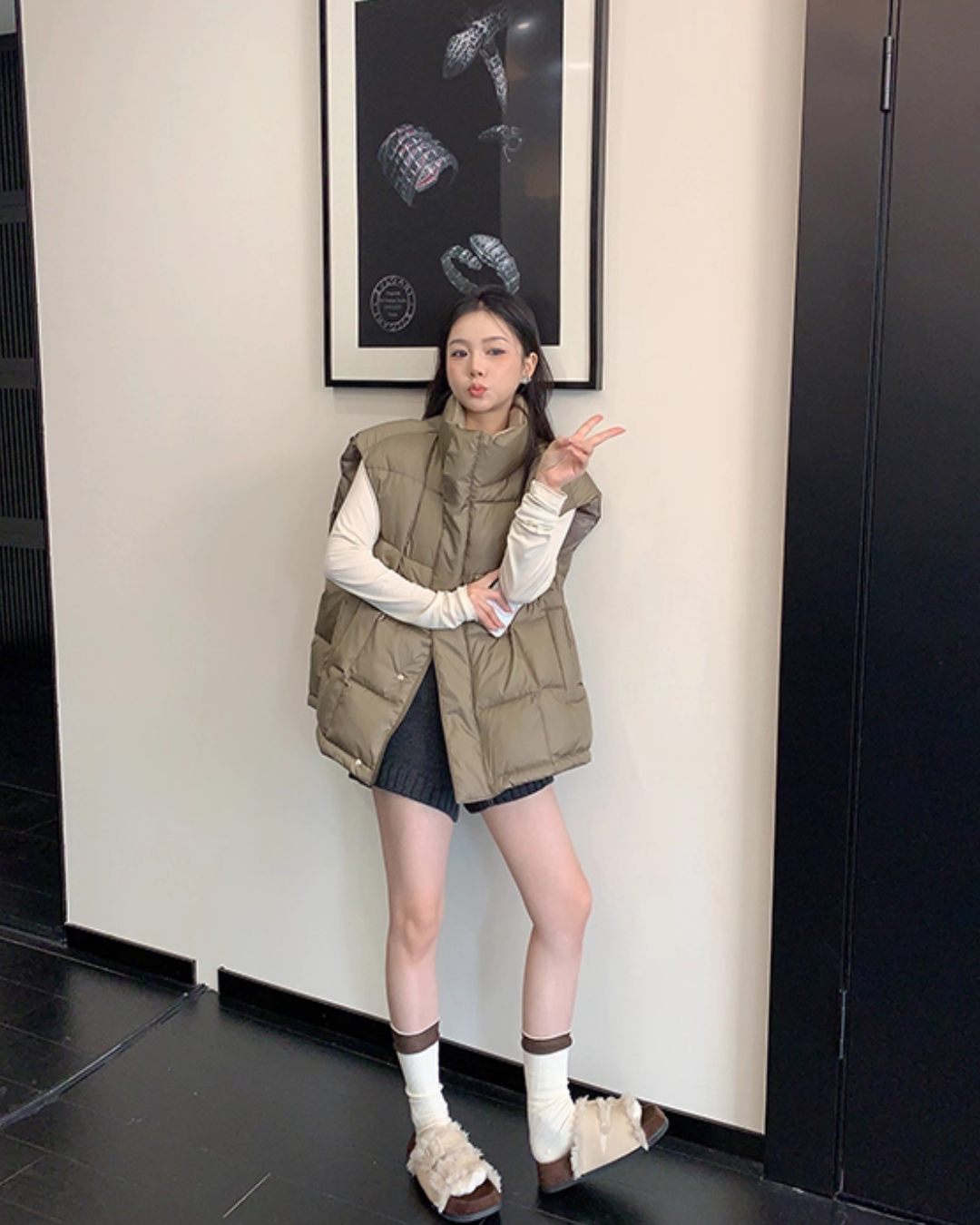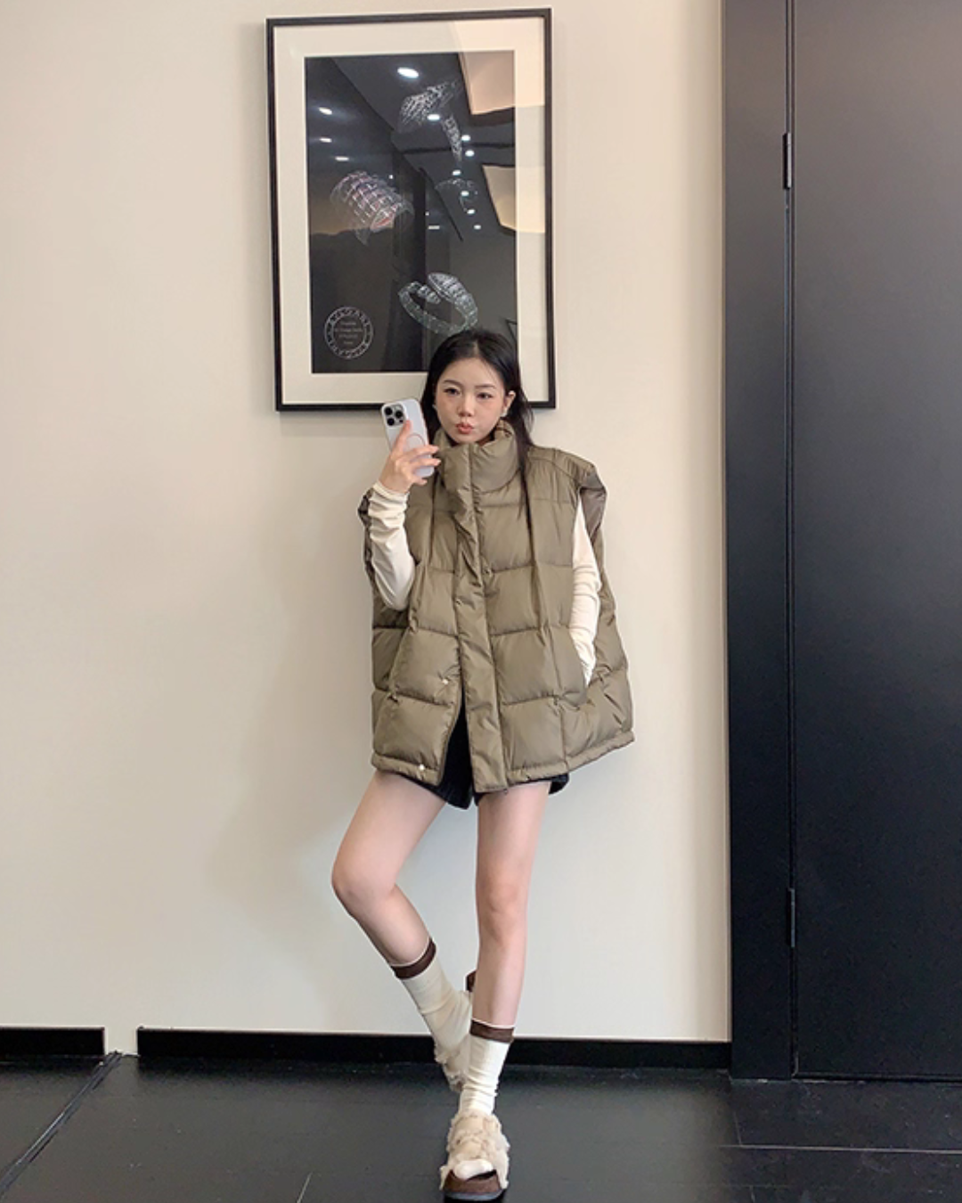 With a stand collar, it has an elegant design that keeps the neck warm.
