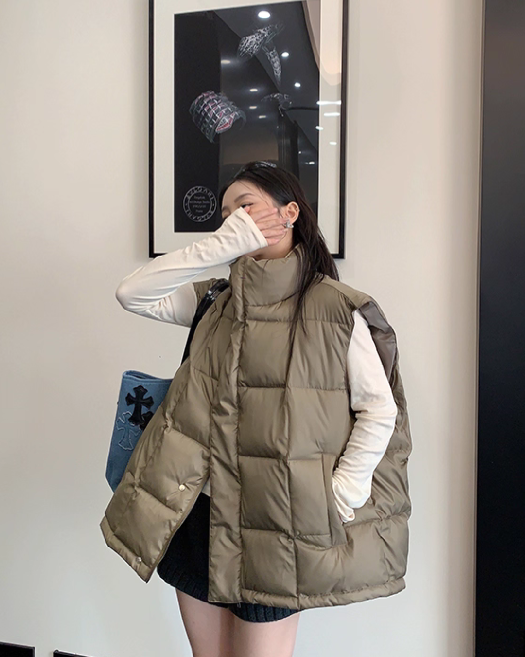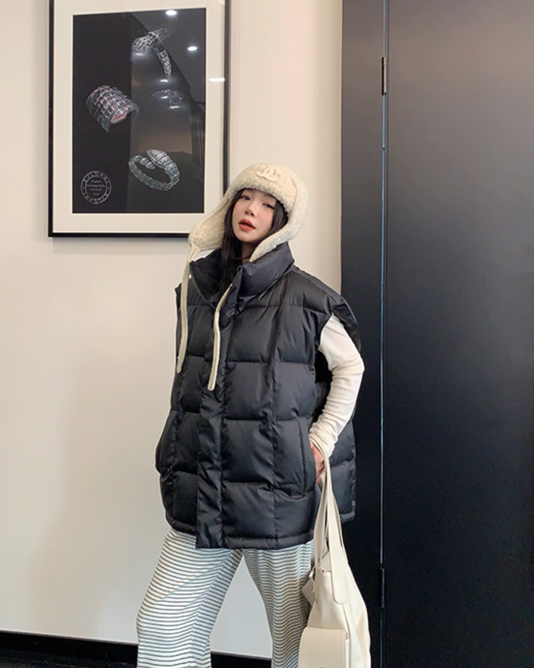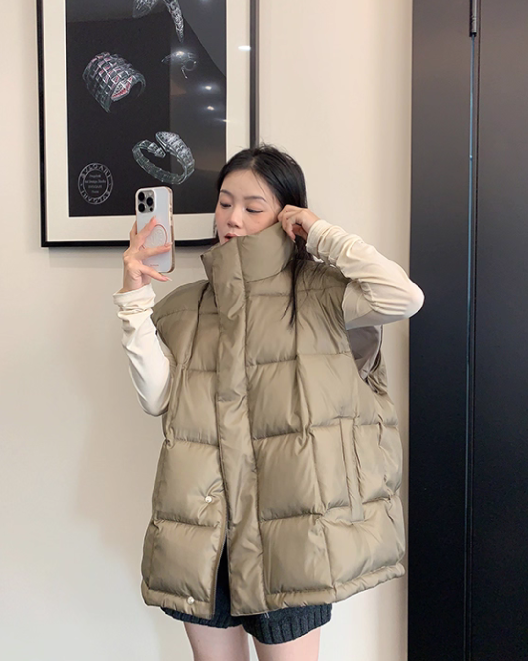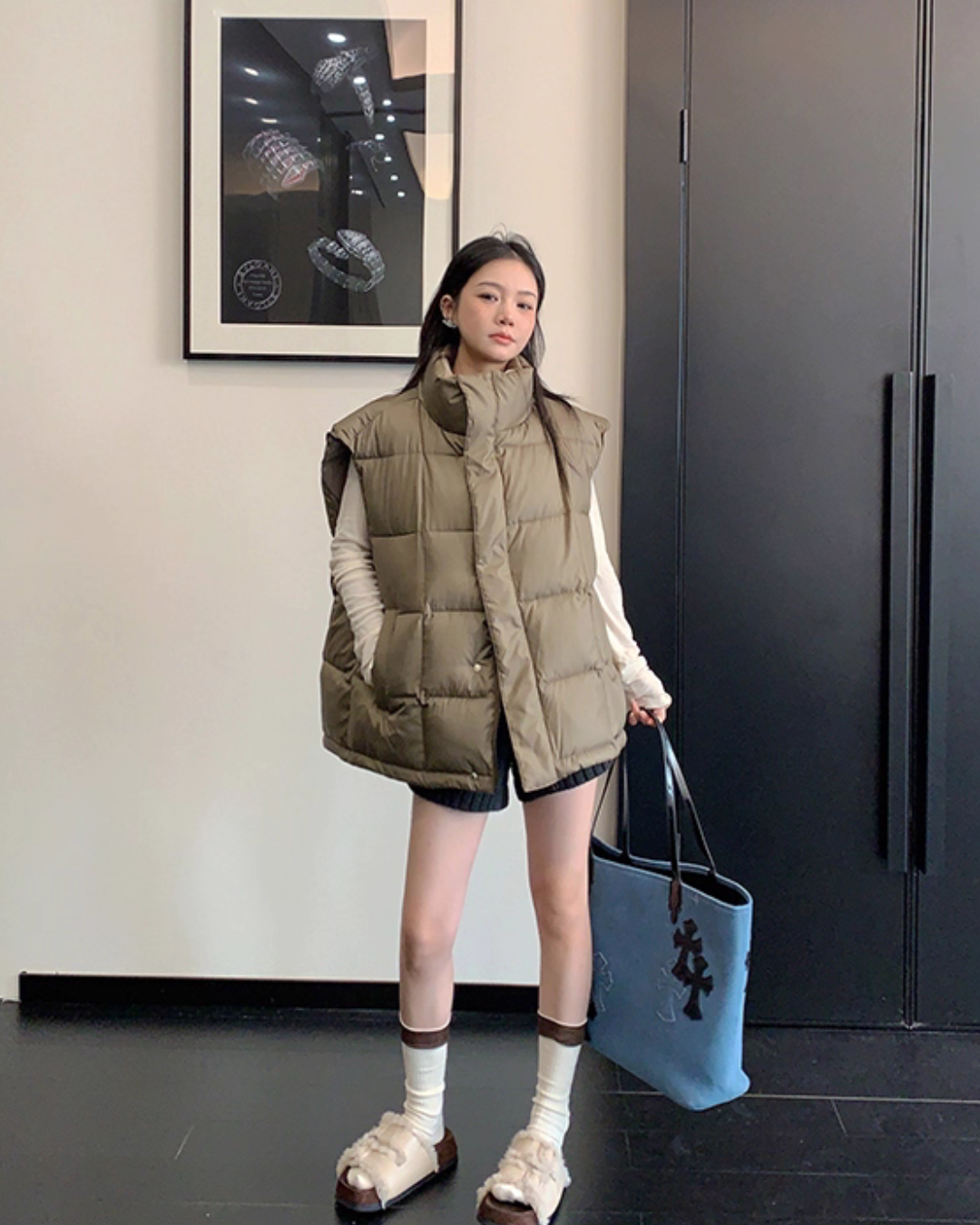 With a stand collar, it has an elegant design that keeps the neck warm.