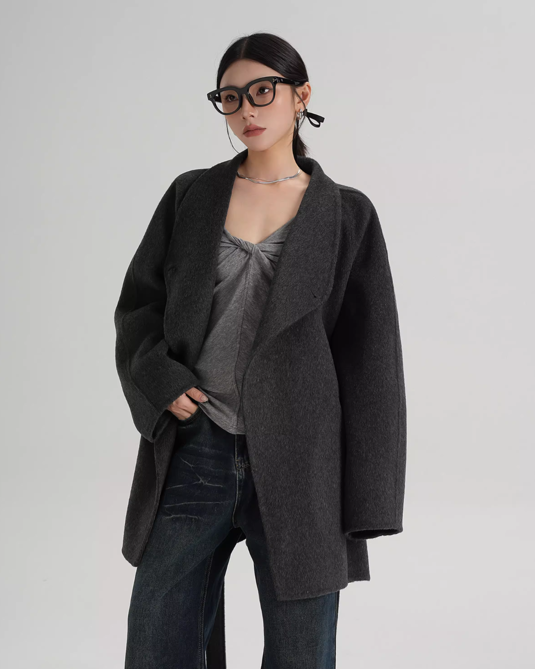The fake wool with a smooth texture is an outstanding coat that looks high-end.