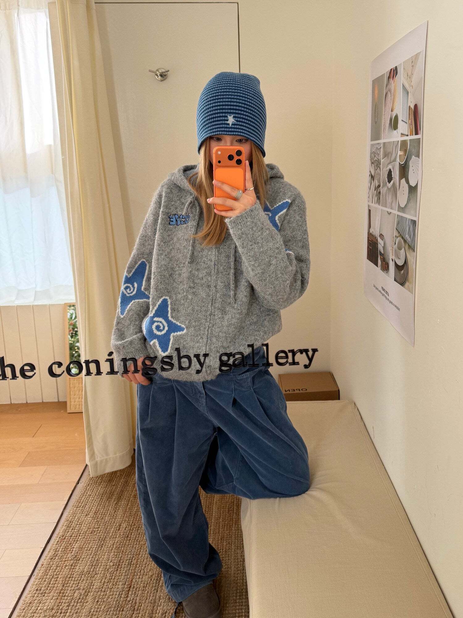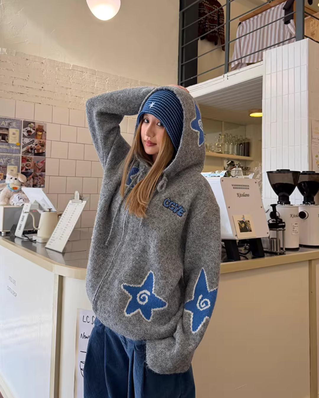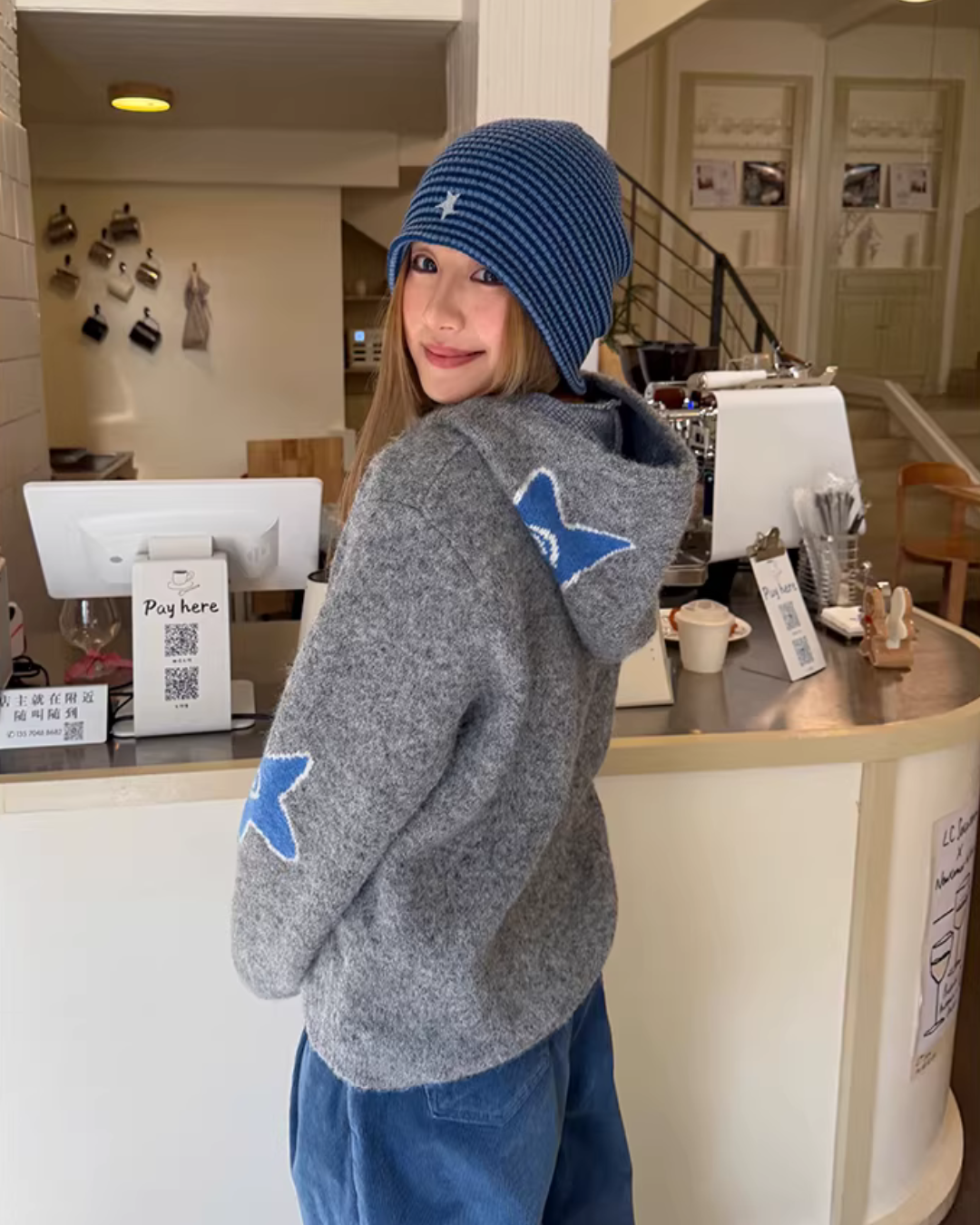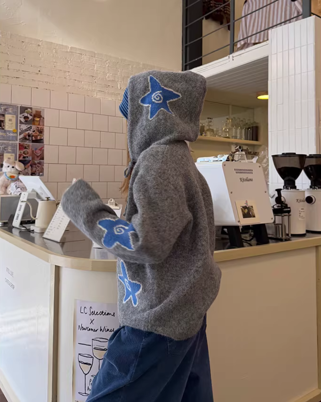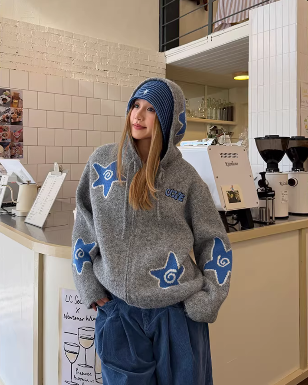 The charm of the knit jacket lies in its gentle texture unique to knit materials.