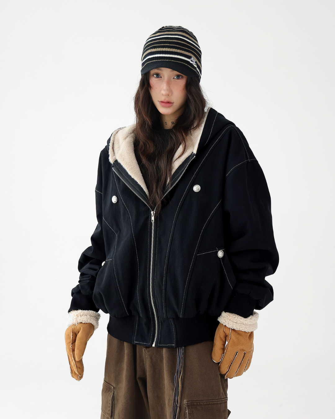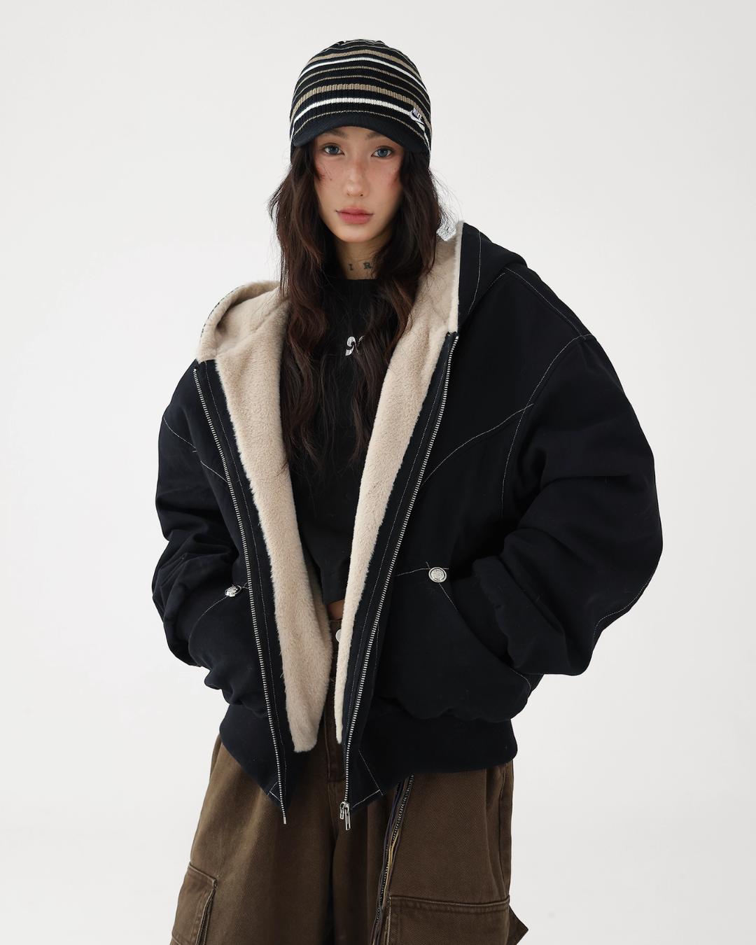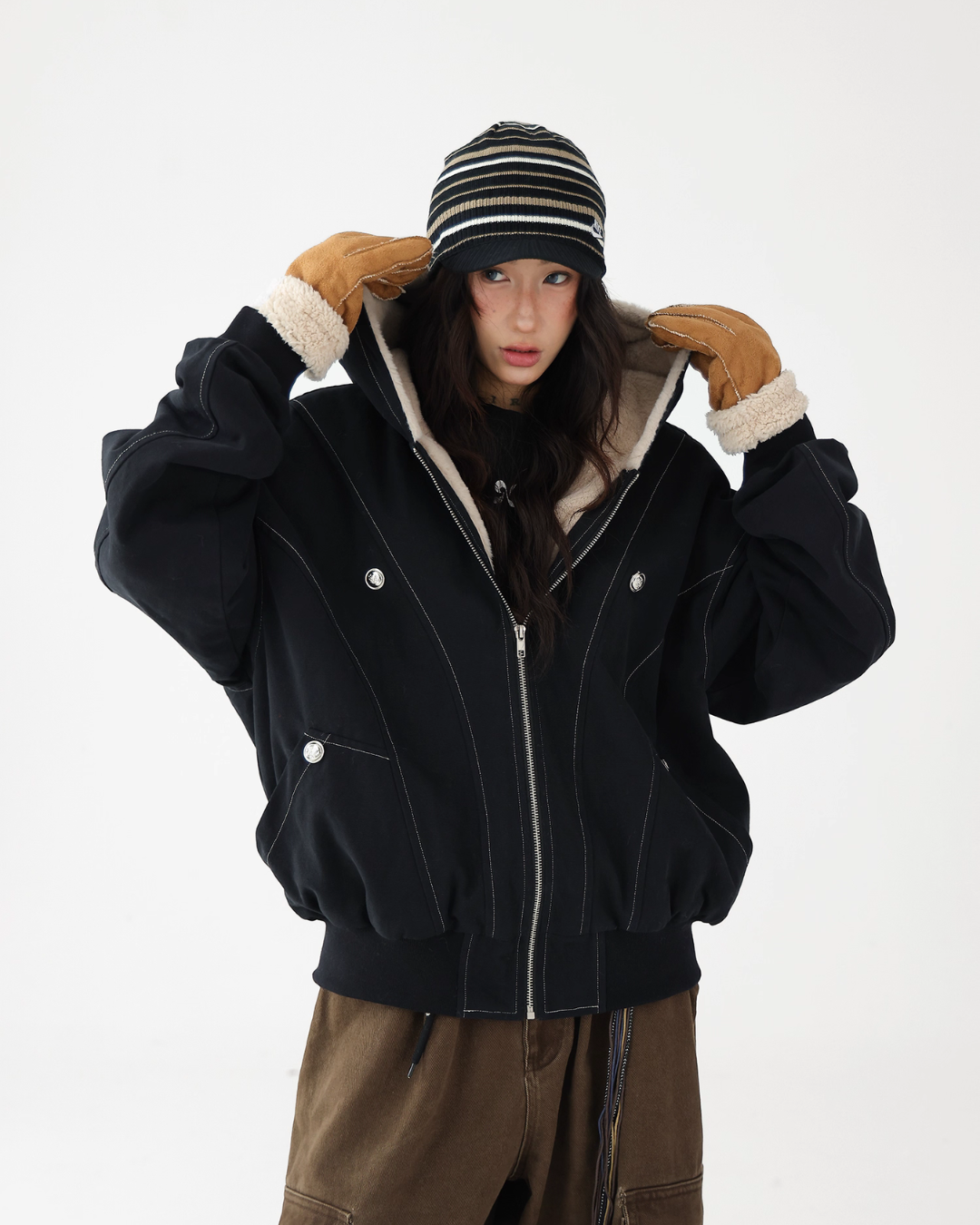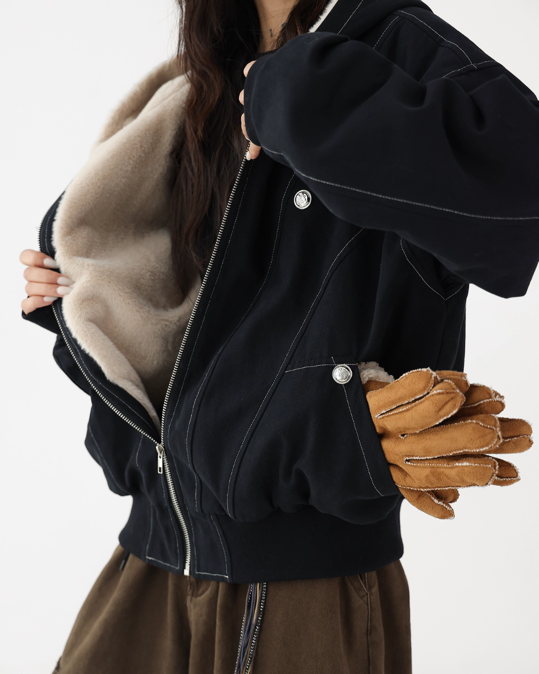 A fluffy boa is applied on the inside, providing exceptional warmth.