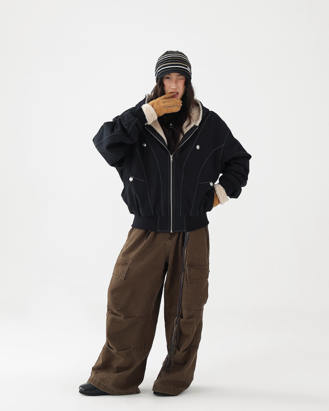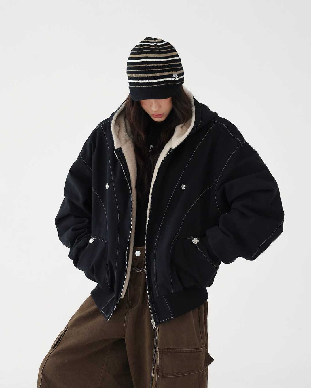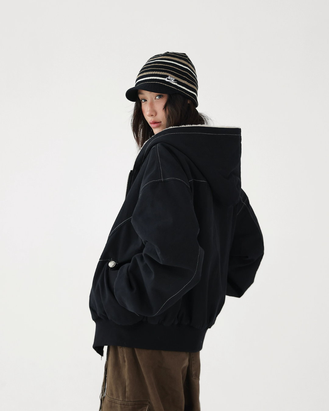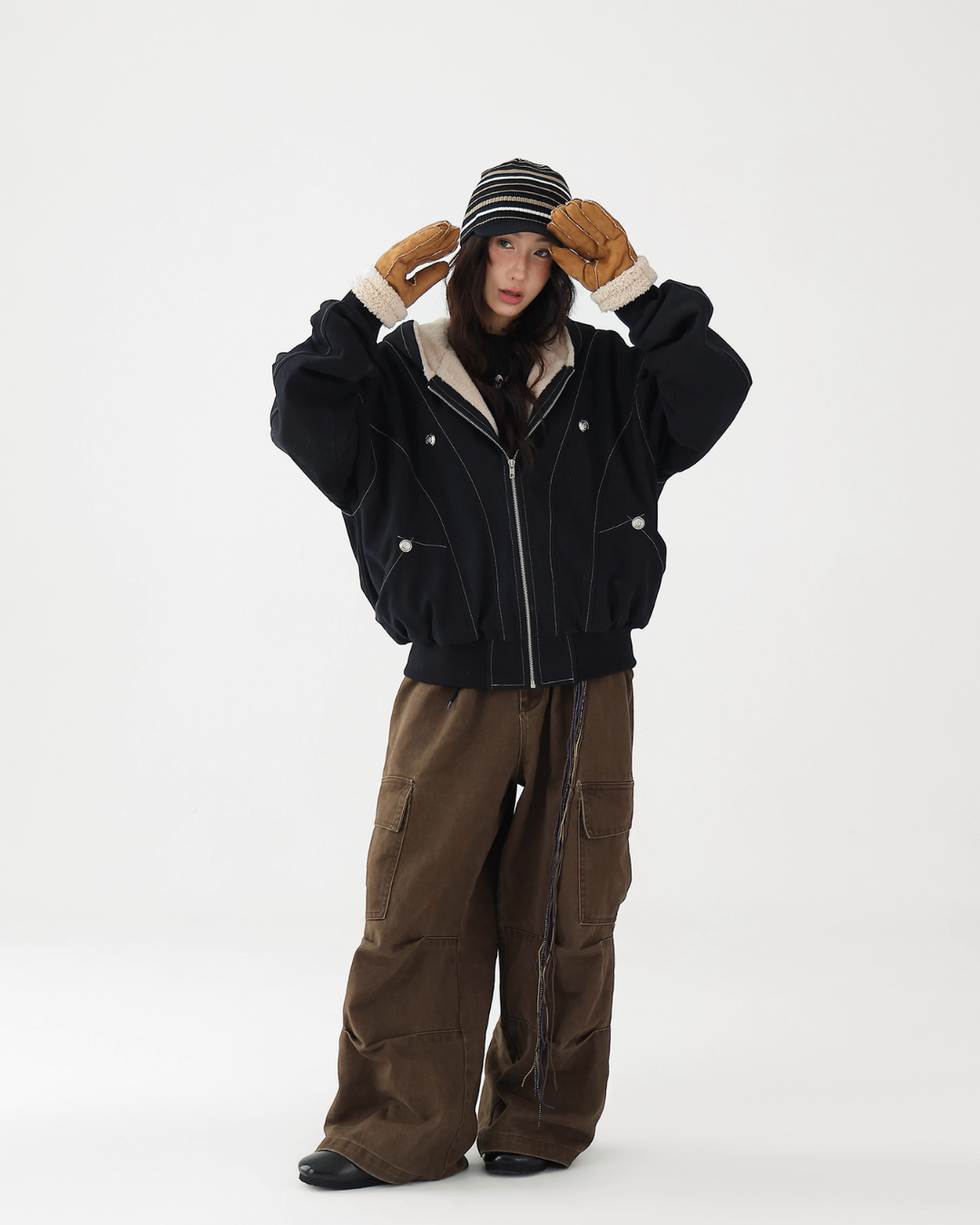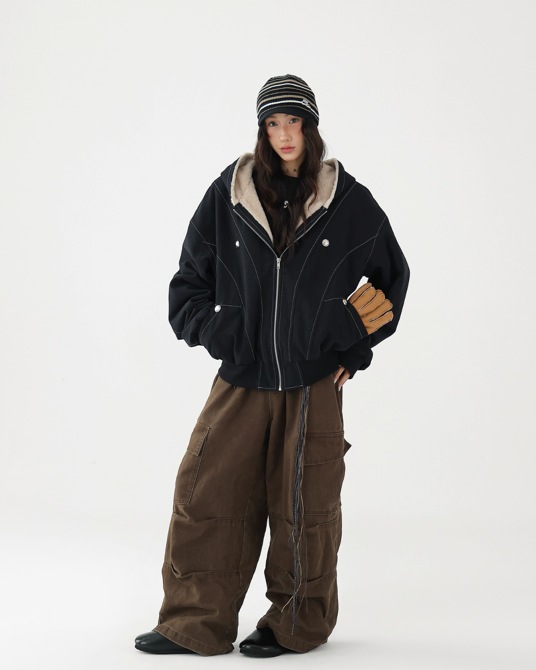 A fluffy boa is applied on the inside, providing exceptional warmth.