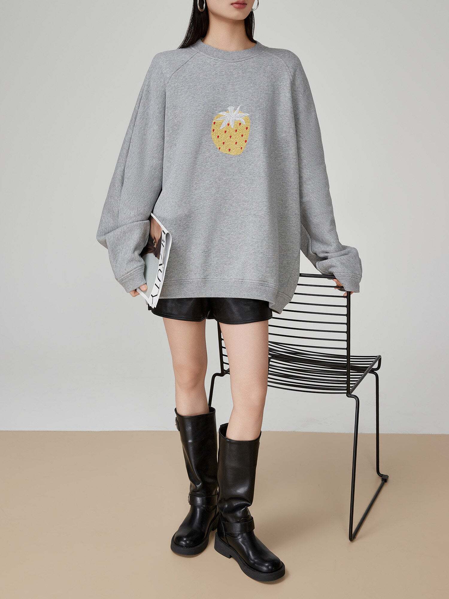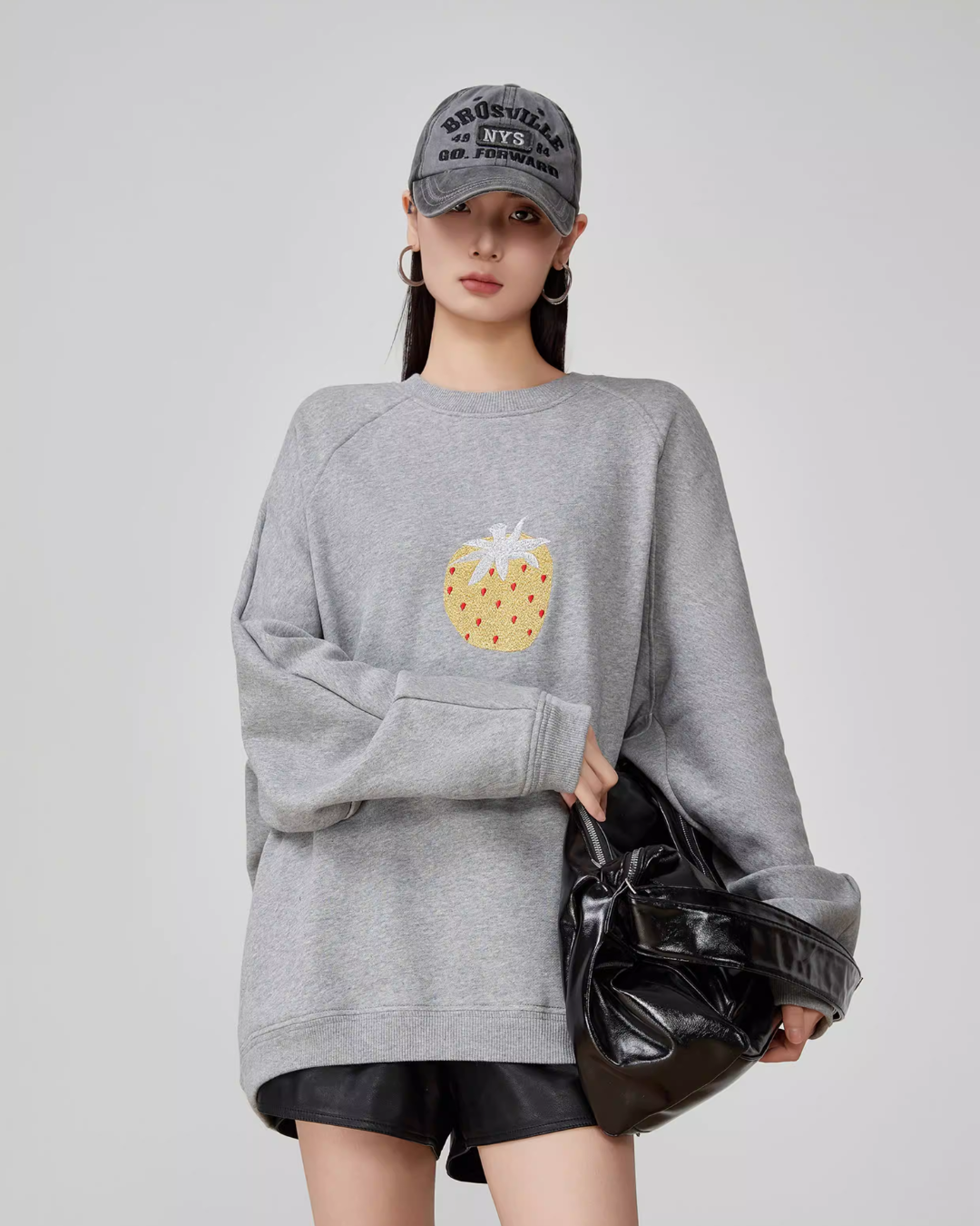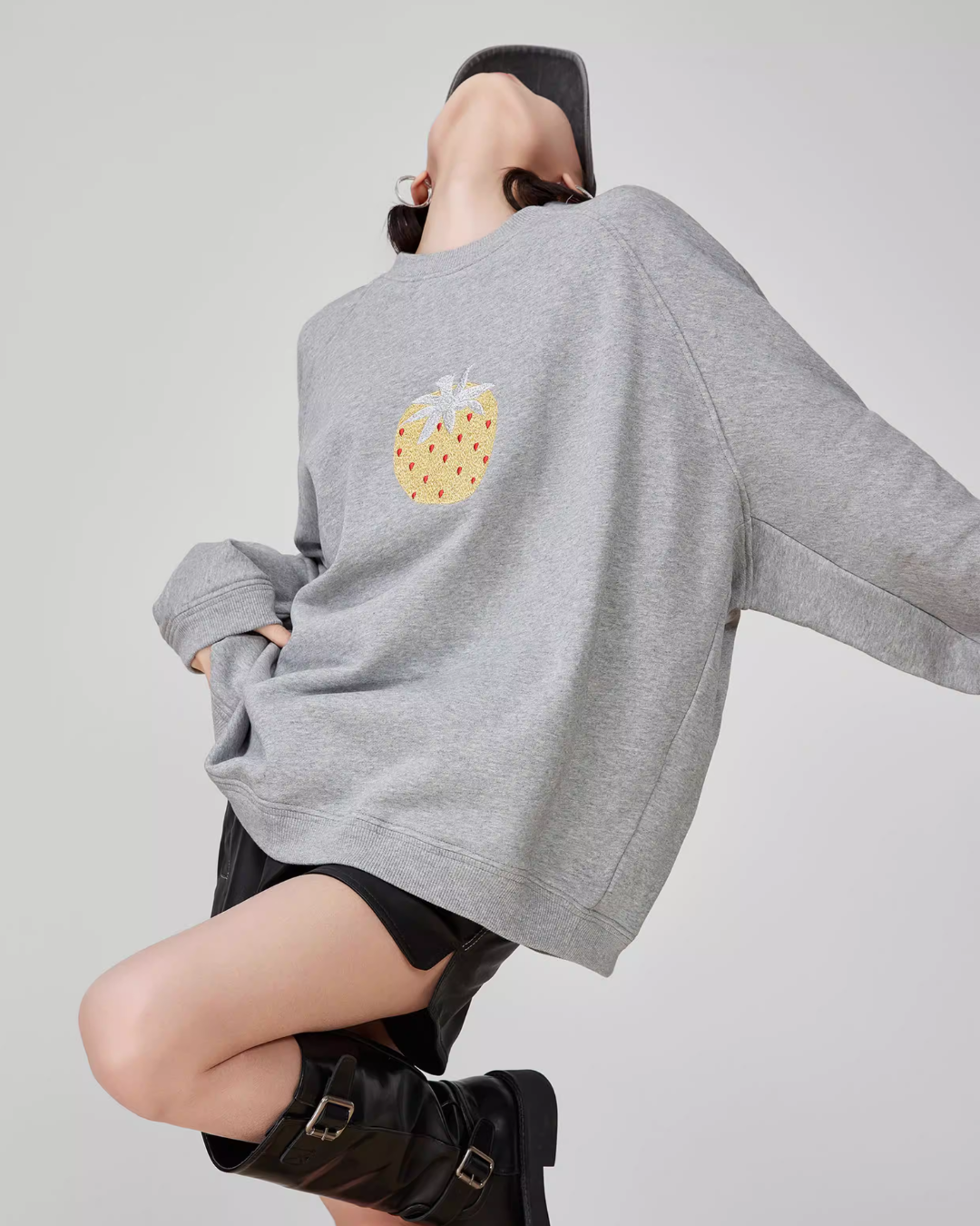 The front strawberry motif becomes the main character of the coordination sweatshirt.