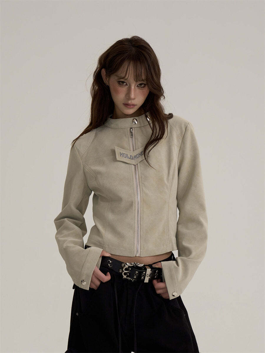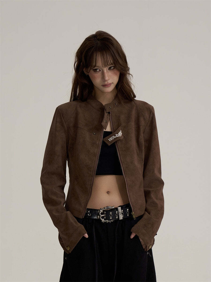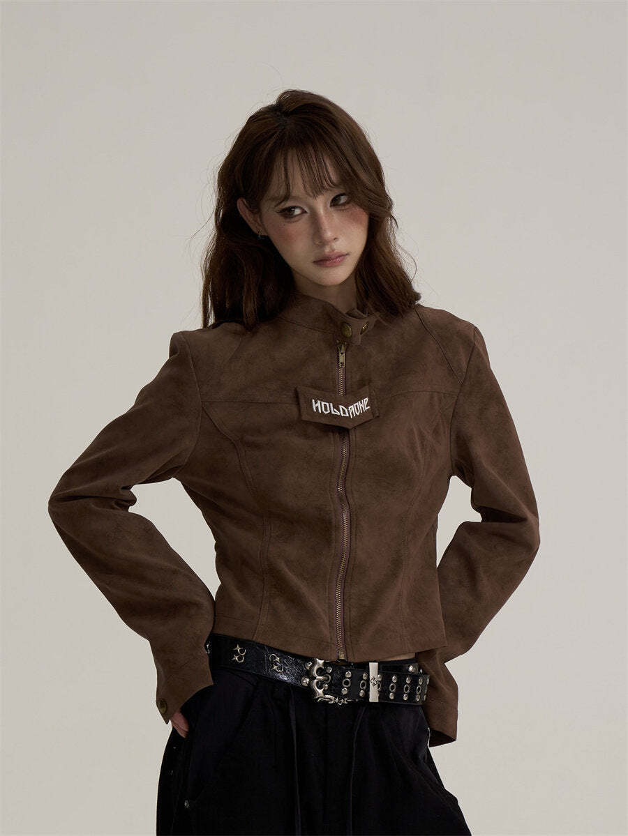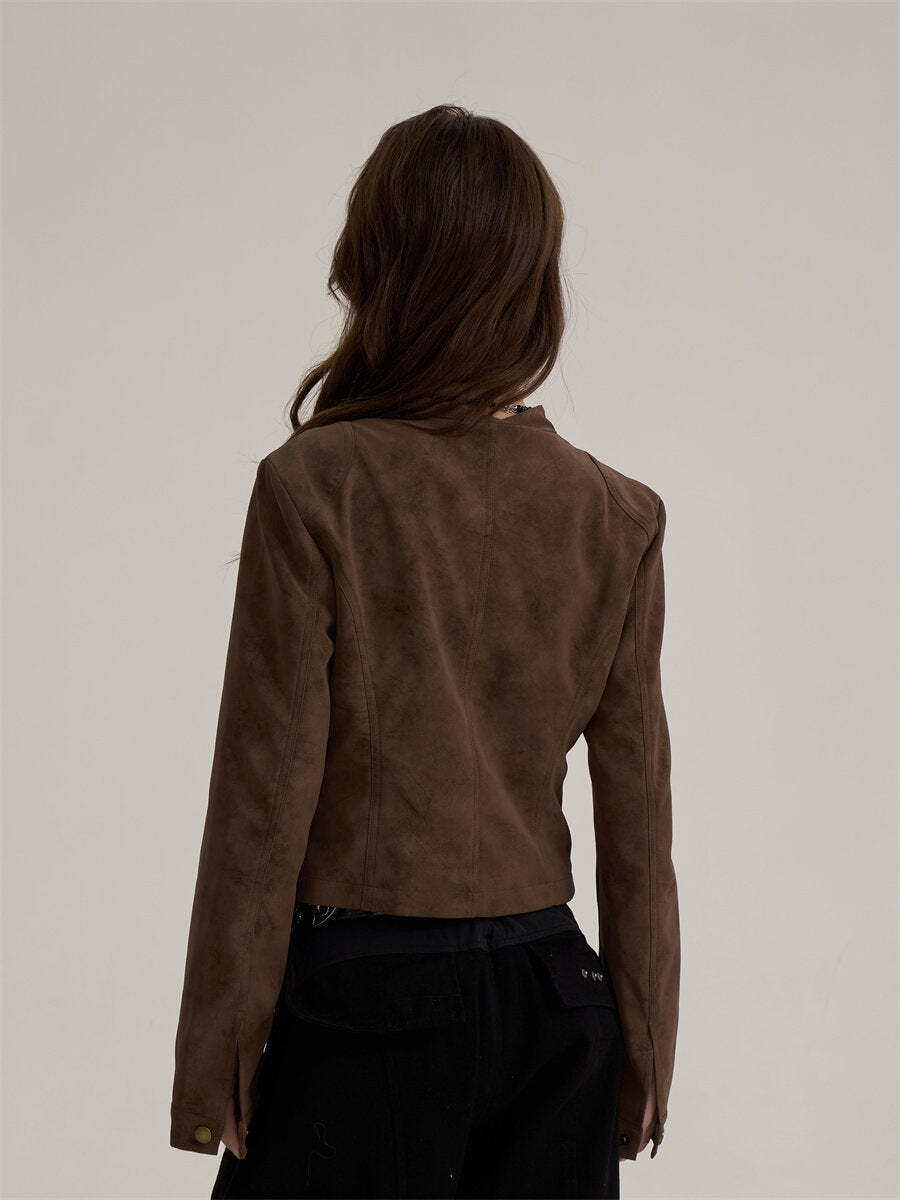 A jacket made of soft suede fabric that feels light to wear.