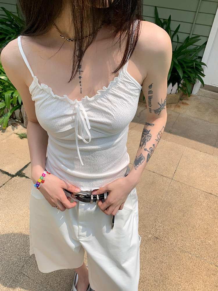 Elevate your summer wardrobe with our Summer American Style Pure Desire Sleeveless Camisole, designed for a chic and flattering slim fit. Featuring delicate ruffled edges, this versatile Y2K short top effortlessly transitions from casual outings to stylish evenings, making it a must-have for every fashion-forward woman. Embrace the perfect blend of comfort and style add this essential piece to your cart and showcase your unique flair today!