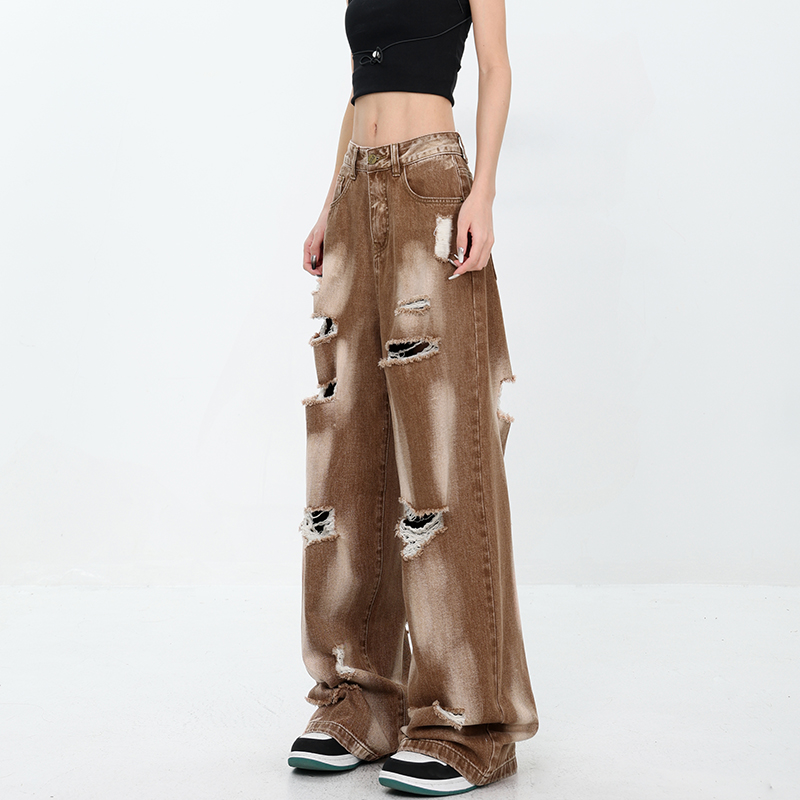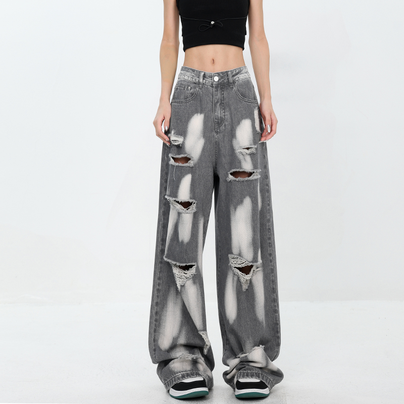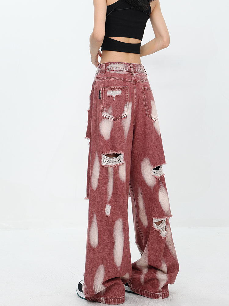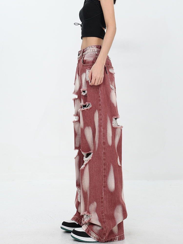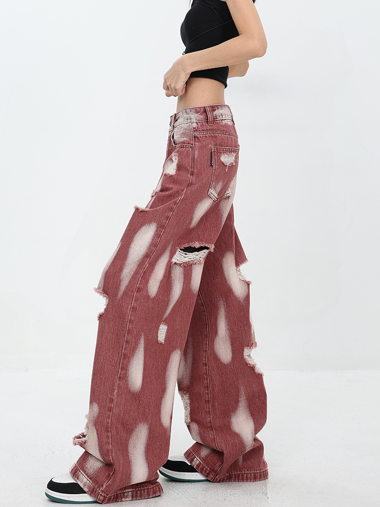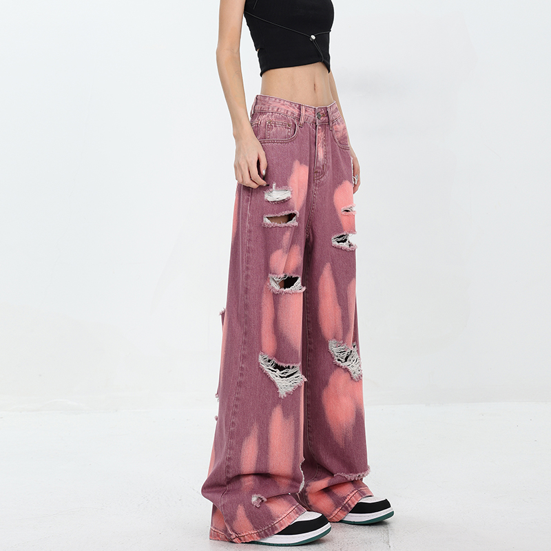 Elevate your summer wardrobe with our Summer American Style Ripped Jeans for Women, featuring a high waist and trendy tie-dye design. These wide-leg, floor-length pants not only provide a comfortable fit but also showcase a chic Y2K aesthetic that is perfect for any occasion. Embrace effortless style and make a bold statement this season add these must-have jeans to your cart today!