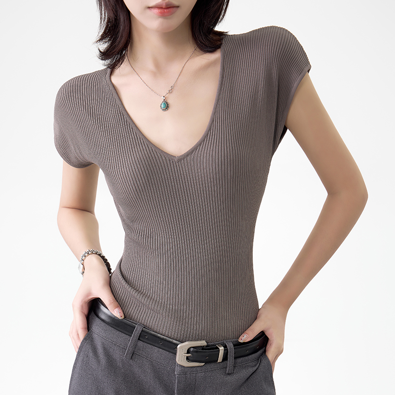 Summer Gray Slim Fit V- Neck Short Sleeve Women, Casual Top, Y2K pired High-quality product featuring y2k outfits, casual summer outfits, fall fits and more. Modern design that fits the latest trends. Premium materials ensure durability and comfort. Order now for special offers! Product designed with attention to every detail. Suitable for all occasions and personal styles.
