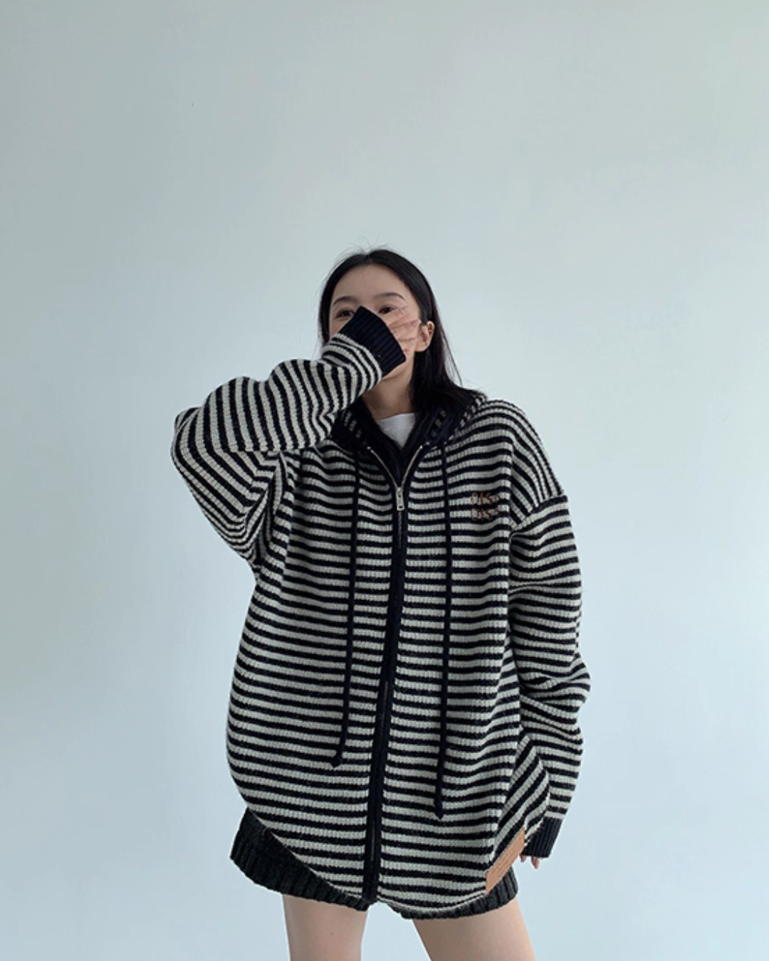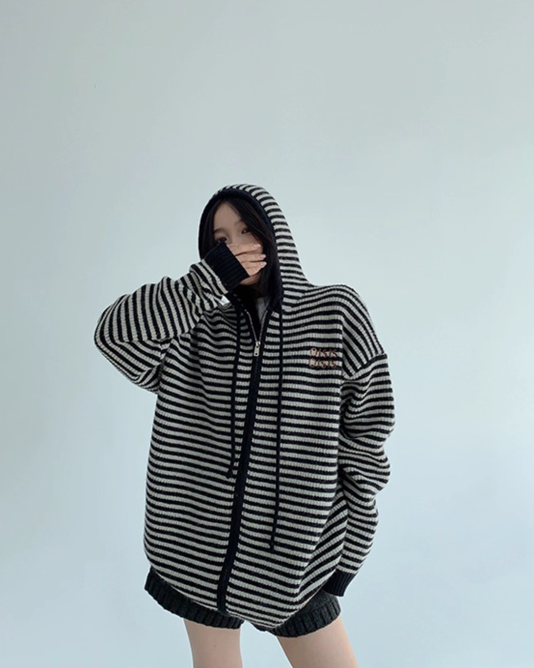Fine-pitch border knit parka with a trendy feel.
