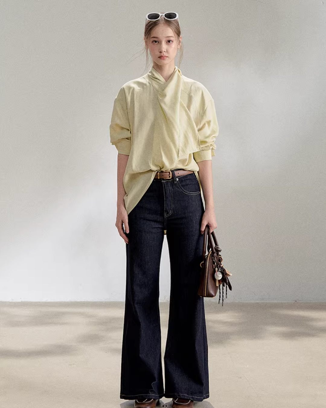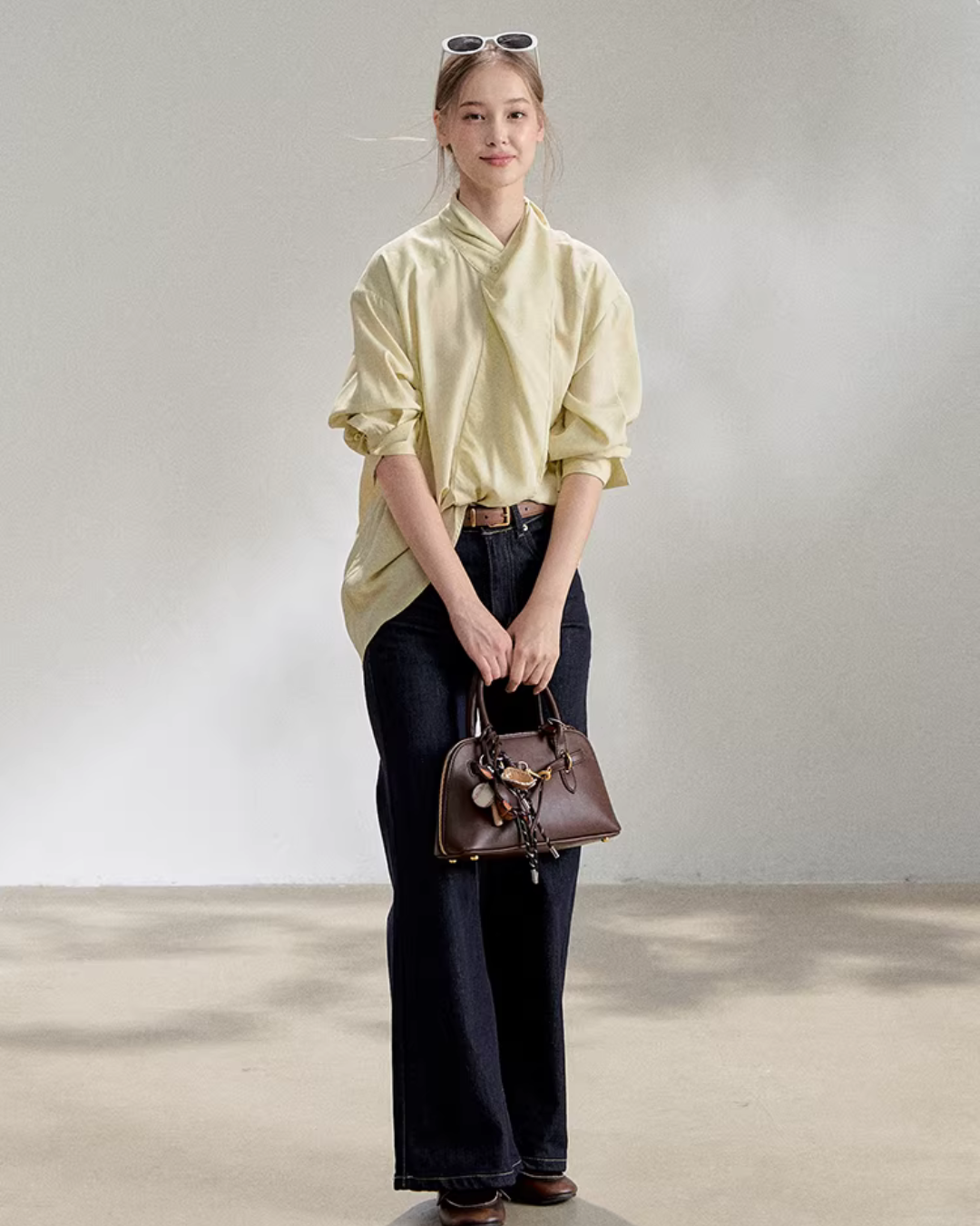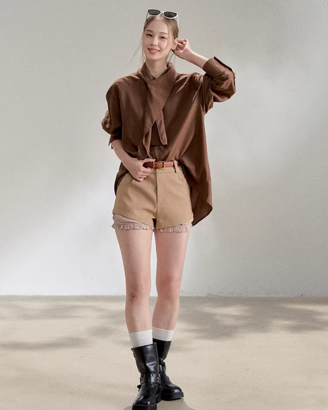 The charming long-sleeve shirt with a front tie design.
