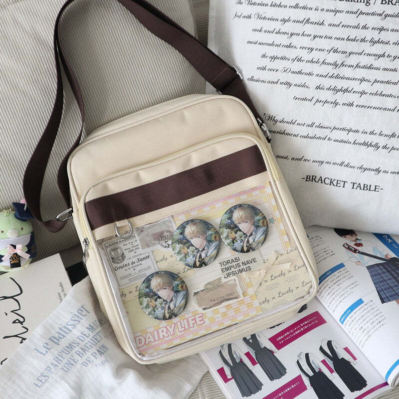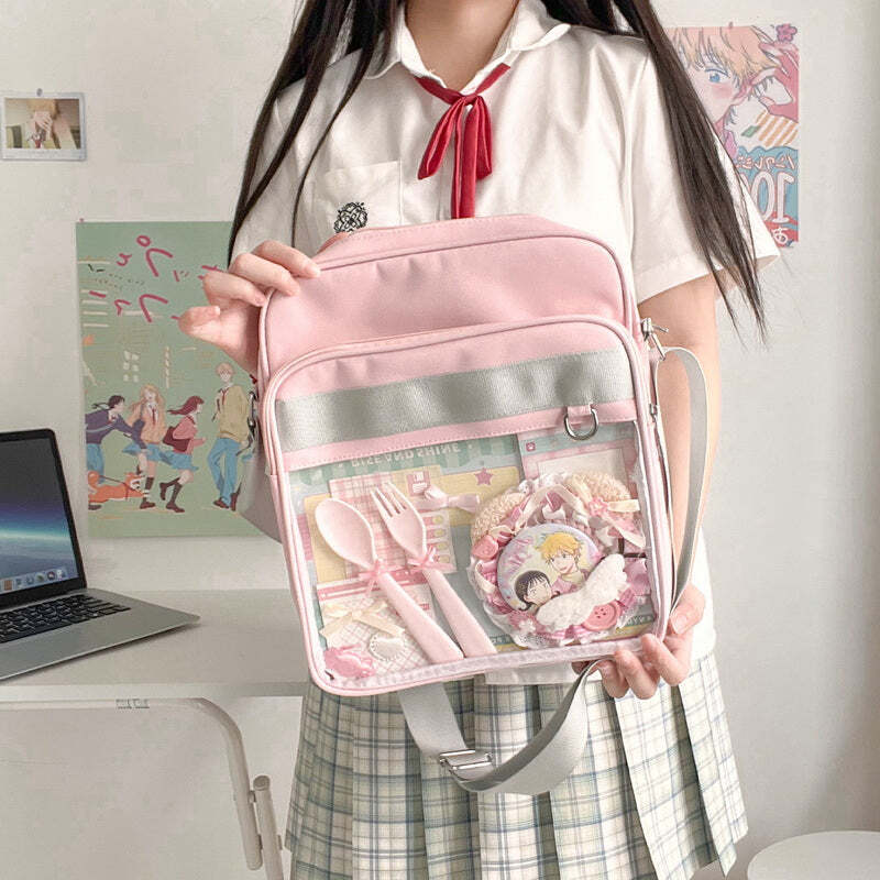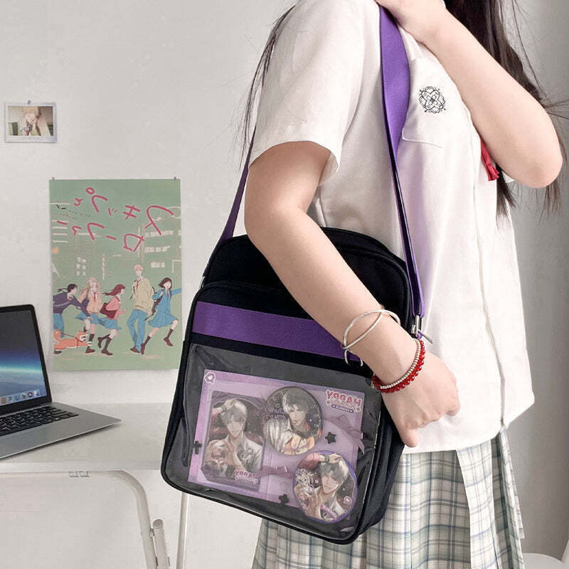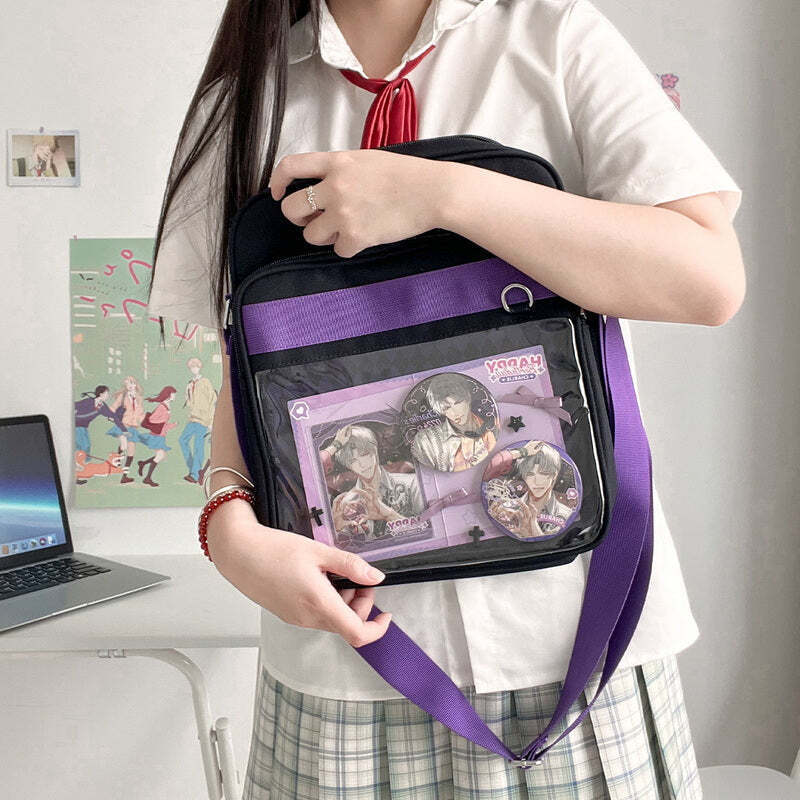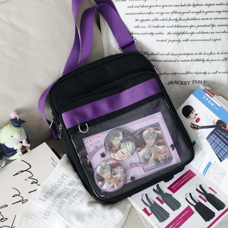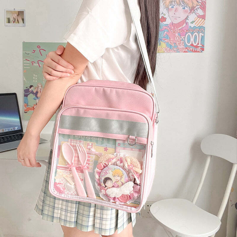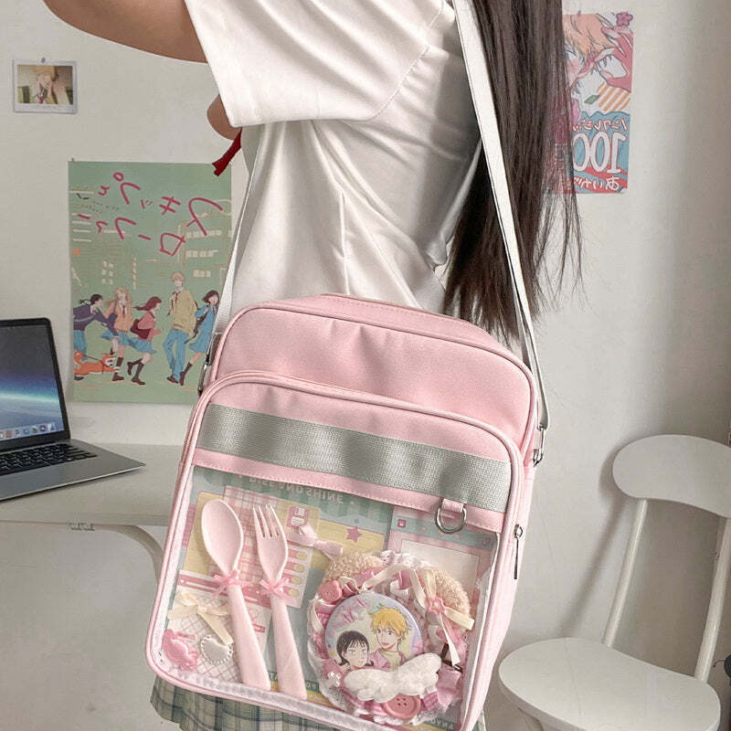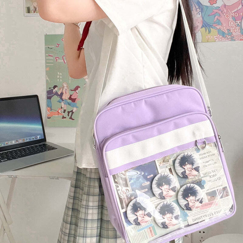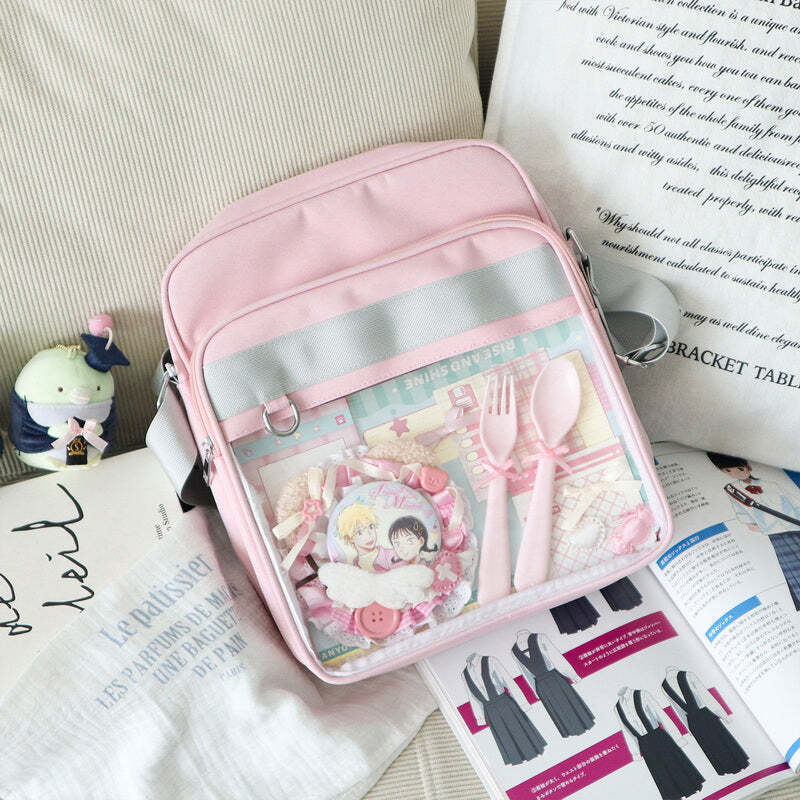 - Cute Ita Bag, Anime Ita Bag, Pin Display Bag, Ita Bag, Ita Messenger Bag, Large Capacity Ita Bag with Transparent Window, Pin Shoulder Bag