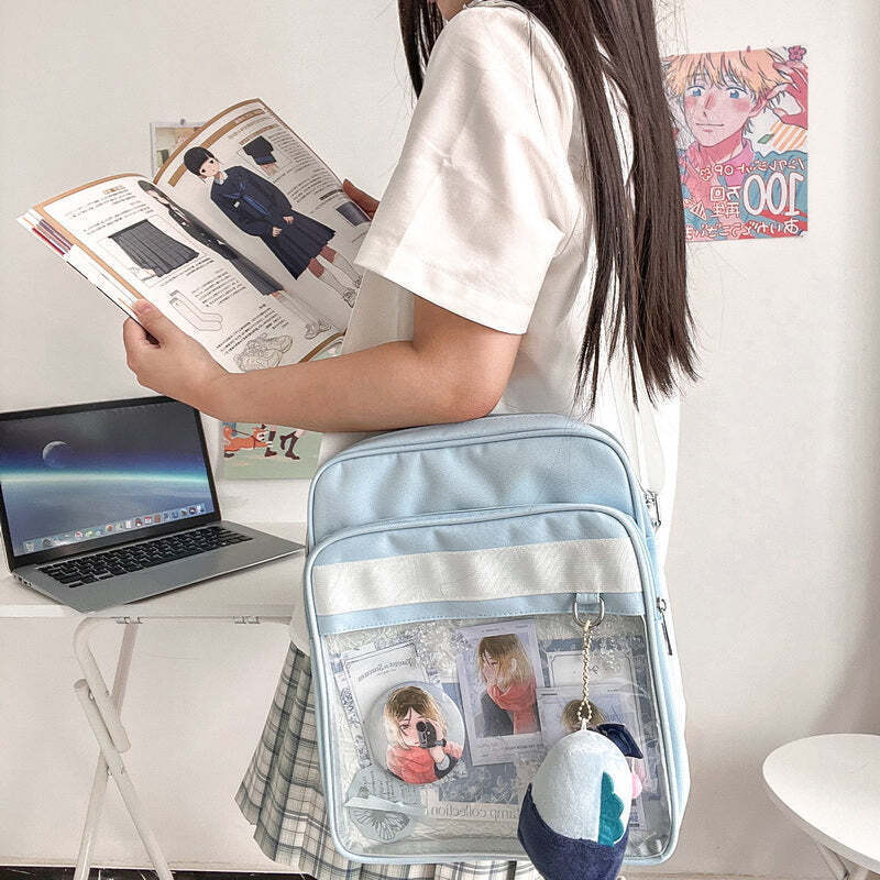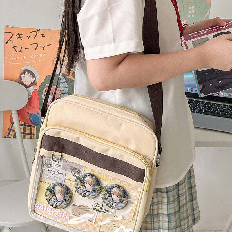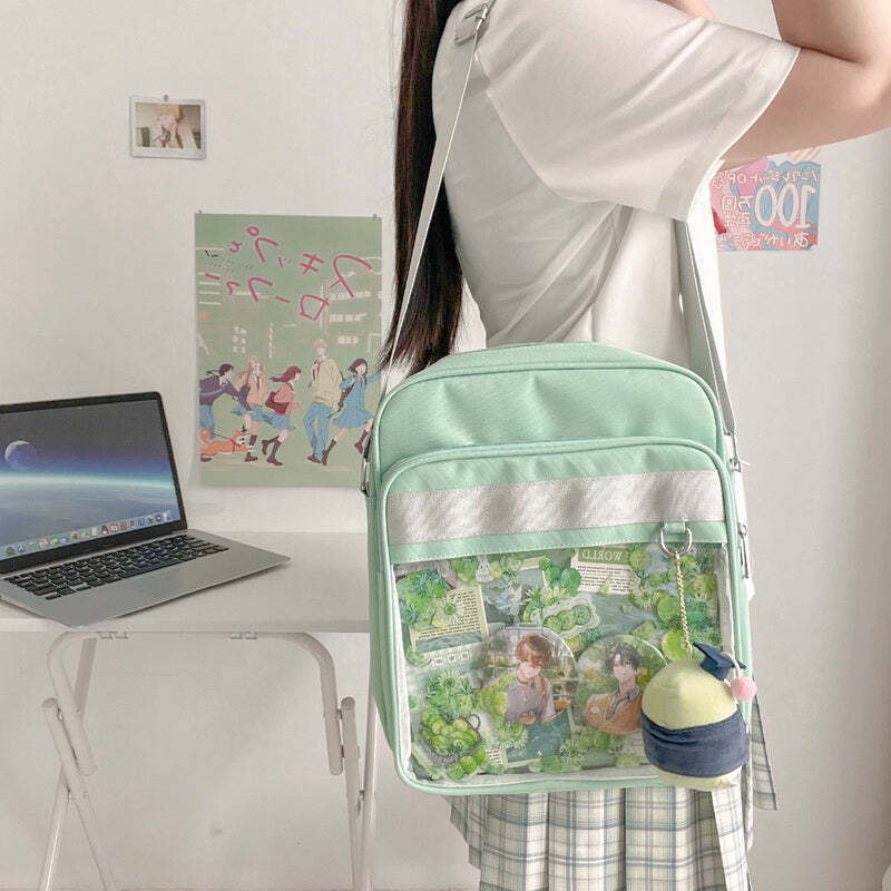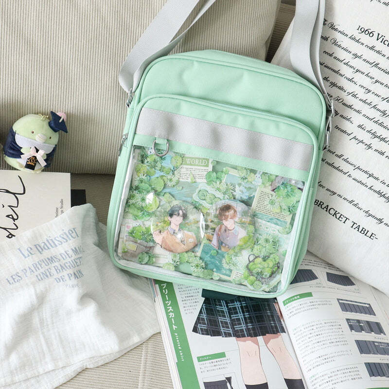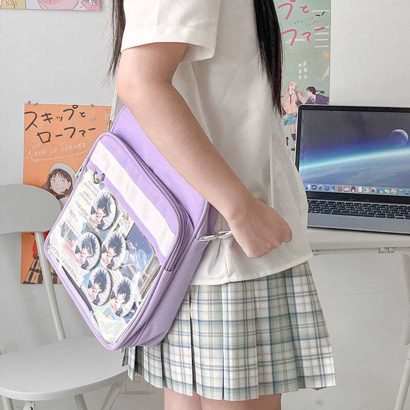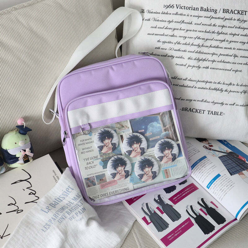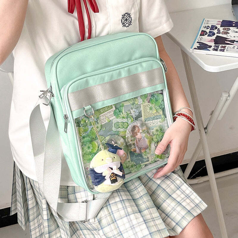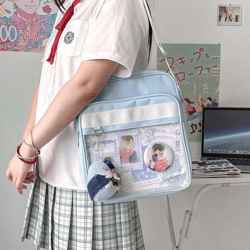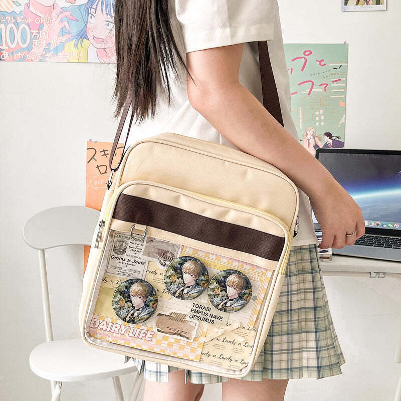 - Cute Ita Bag, Anime Ita Bag, Pin Display Bag, Ita Bag, Ita Messenger Bag, Large Capacity Ita Bag with Transparent Window, Pin Shoulder Bag