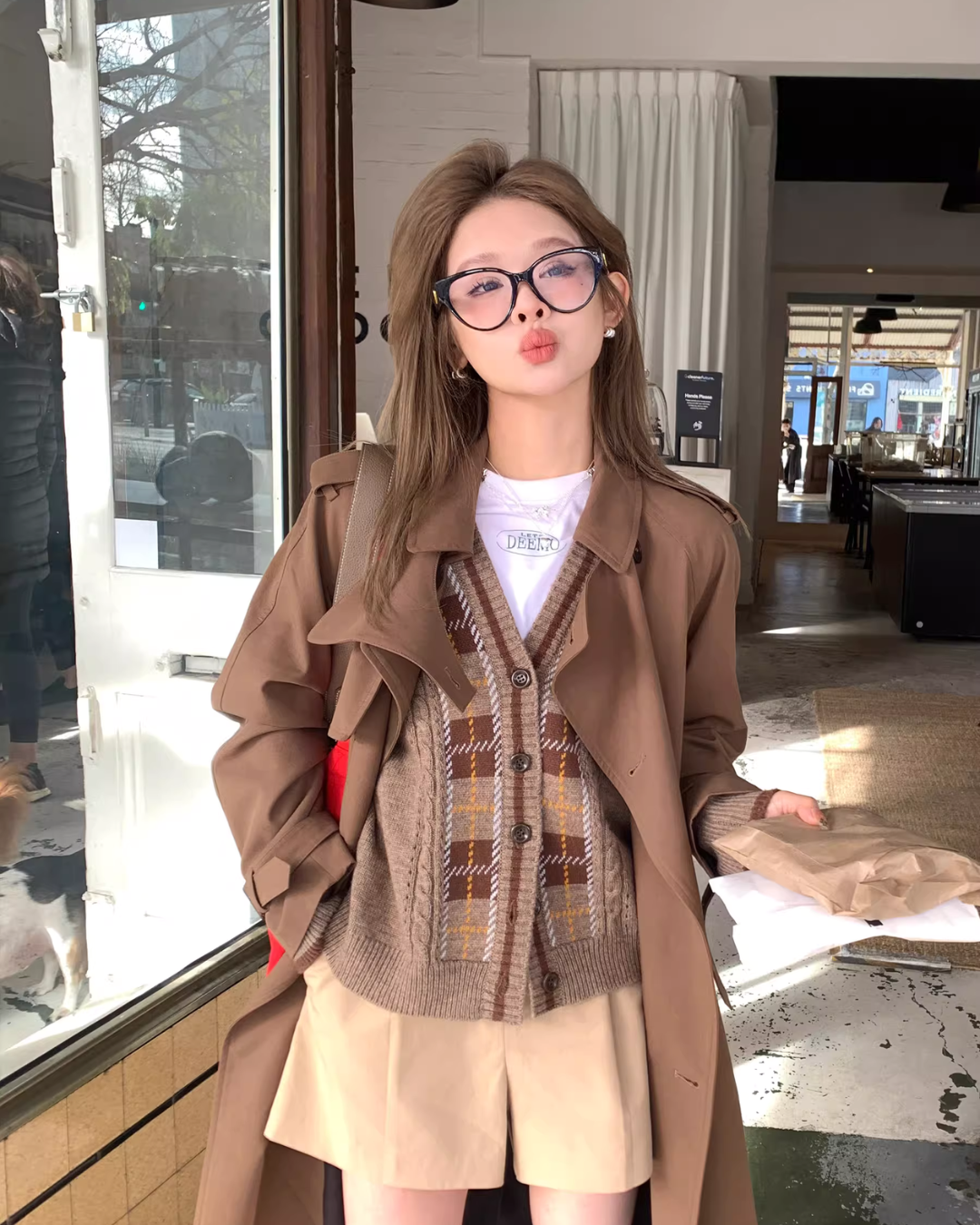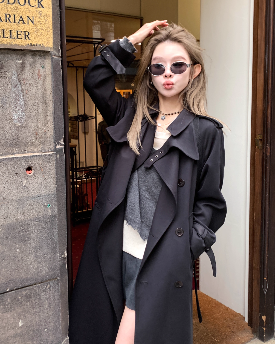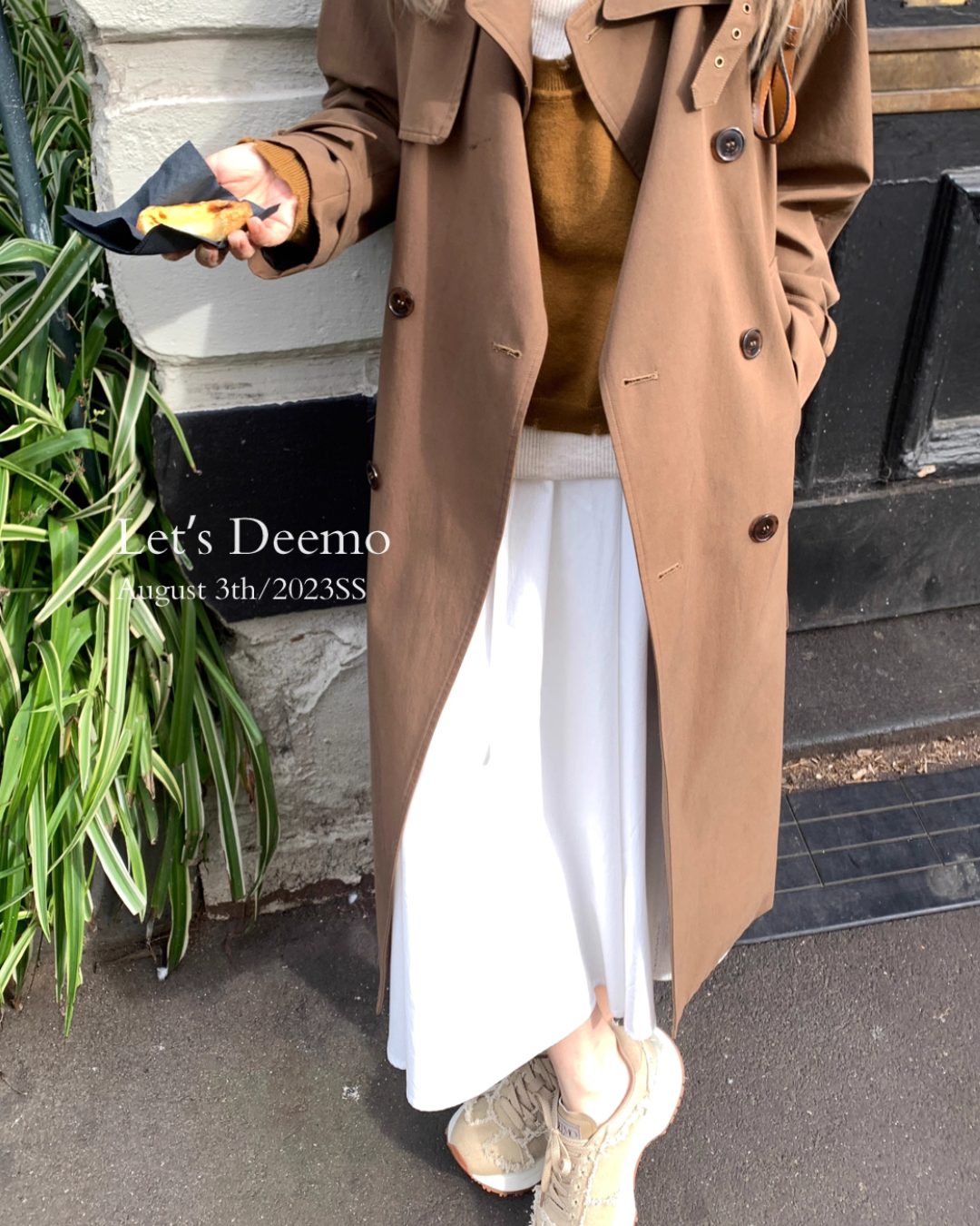 A trench coat that finishes with a stylish look and gives an adult cool impression.