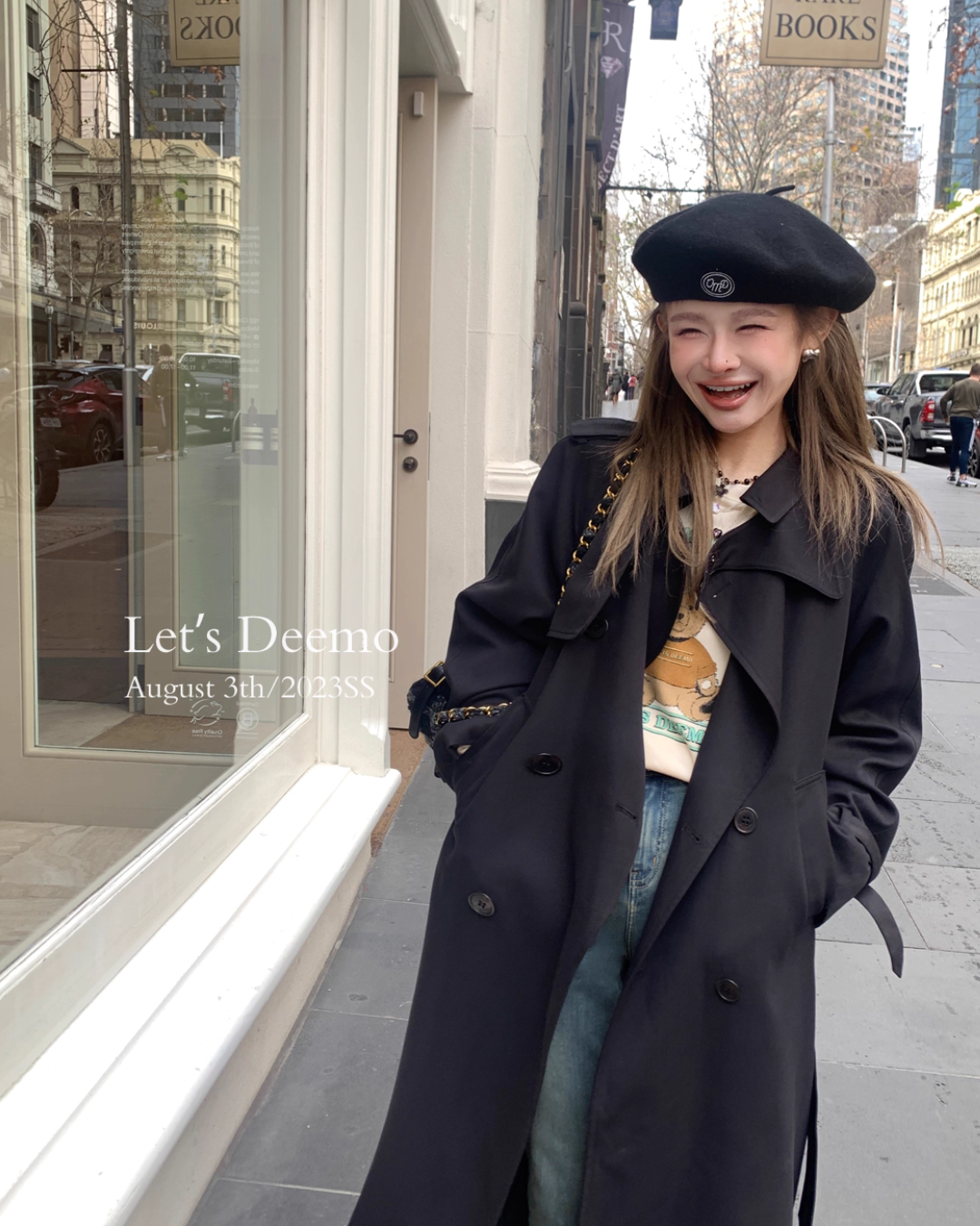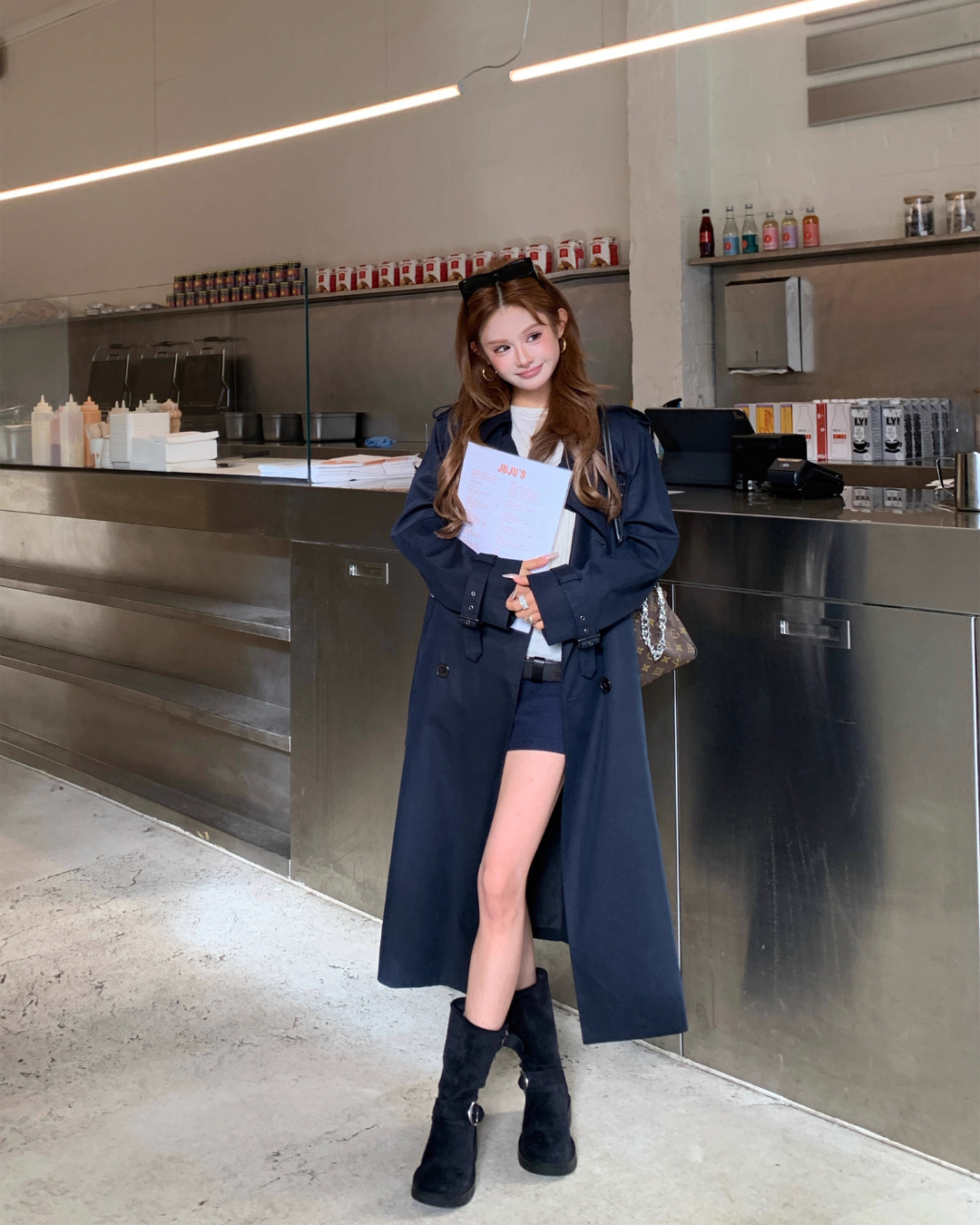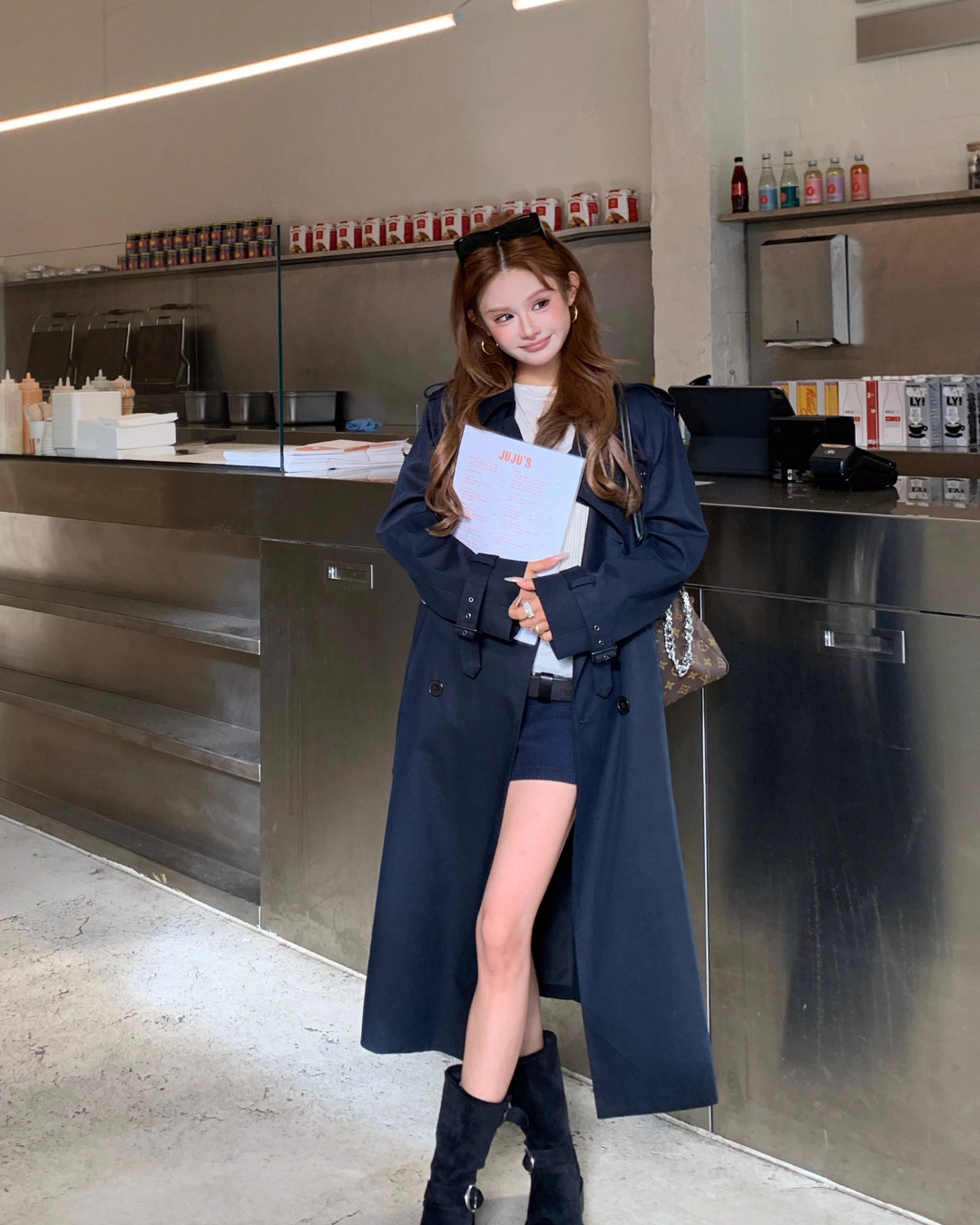 A trench coat that finishes with a stylish look and gives an adult cool impression.