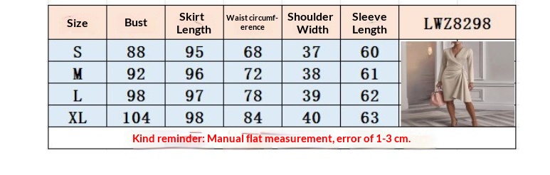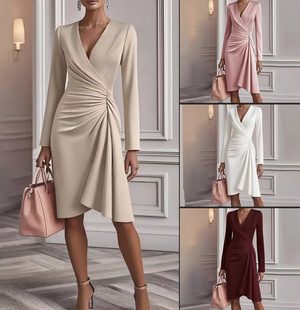 V Neck Folds Solid Color Slim-fit Long Sleeve V-pleated Design Dress Women’s Office Commuter A-line Midi Party Dresses Female Clothing