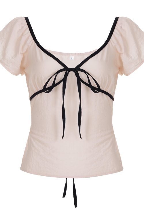 - Lace Trim Round Neck Bow Coquette Long Sleeve Tee Original price was: $32.20.$22.54Current price is: $22.54.