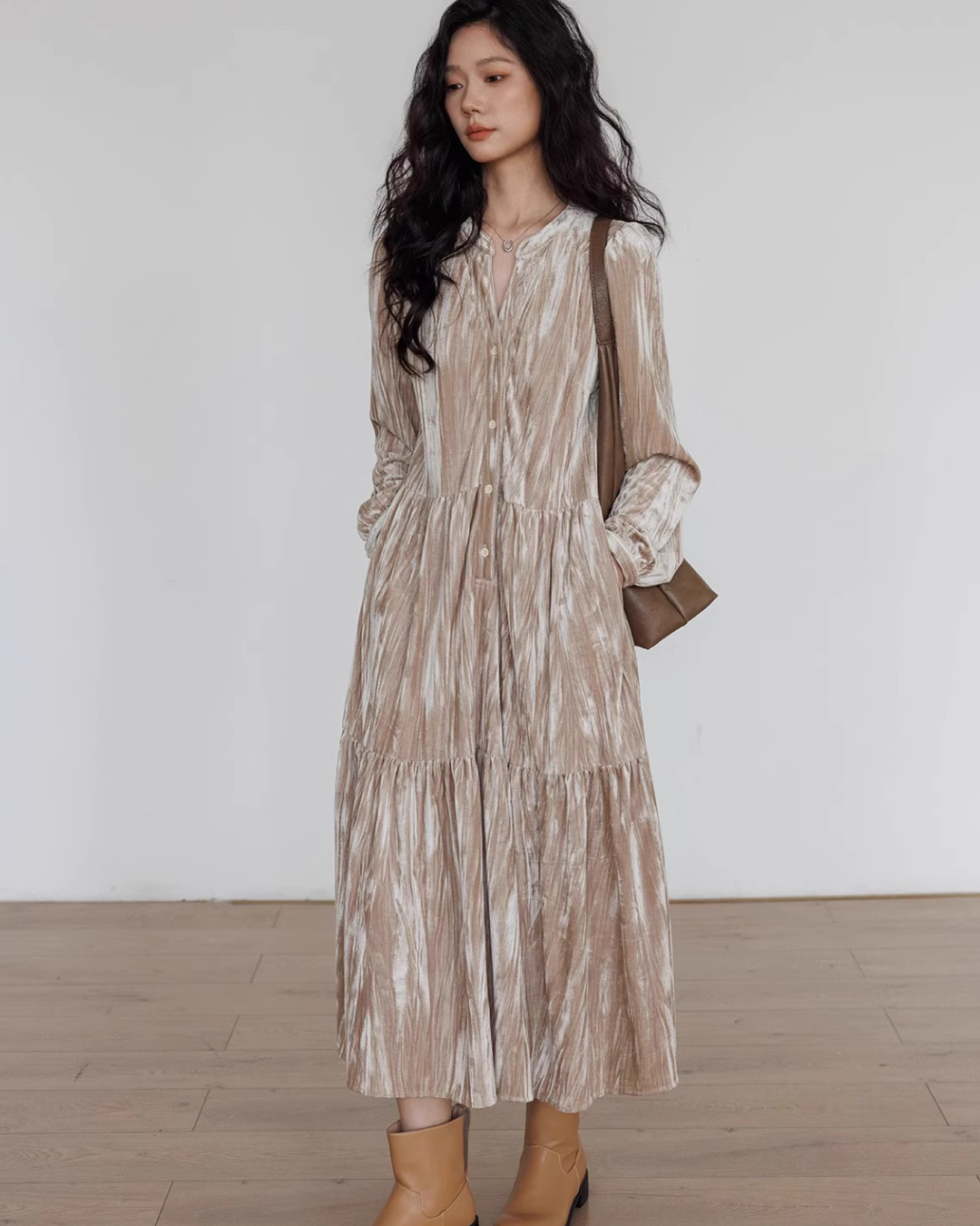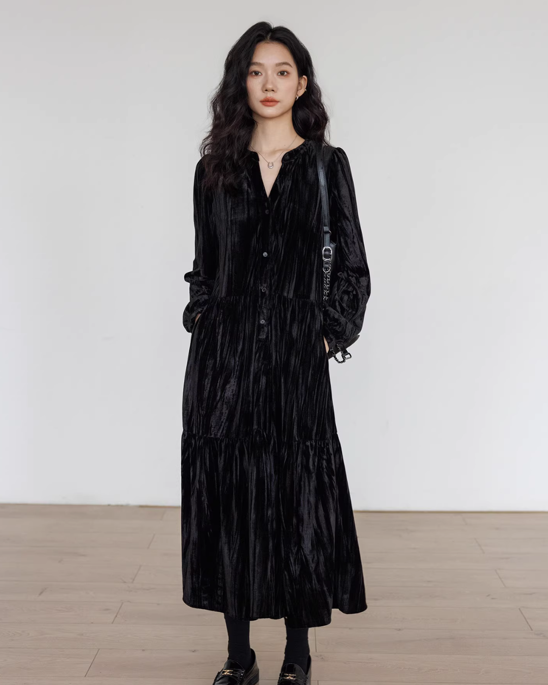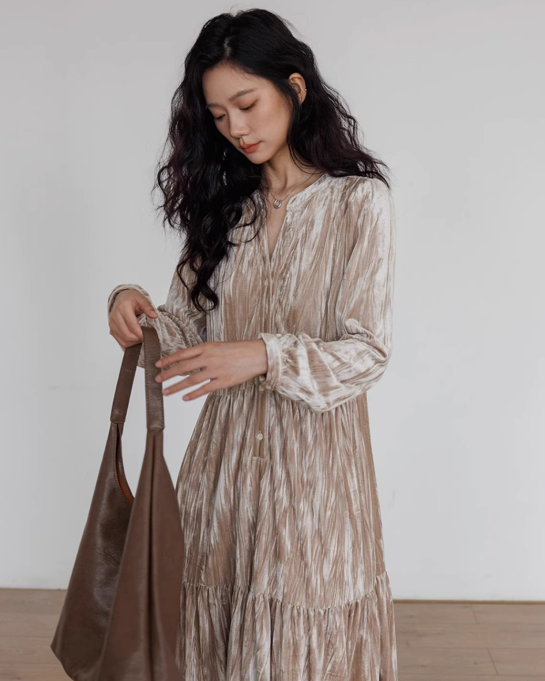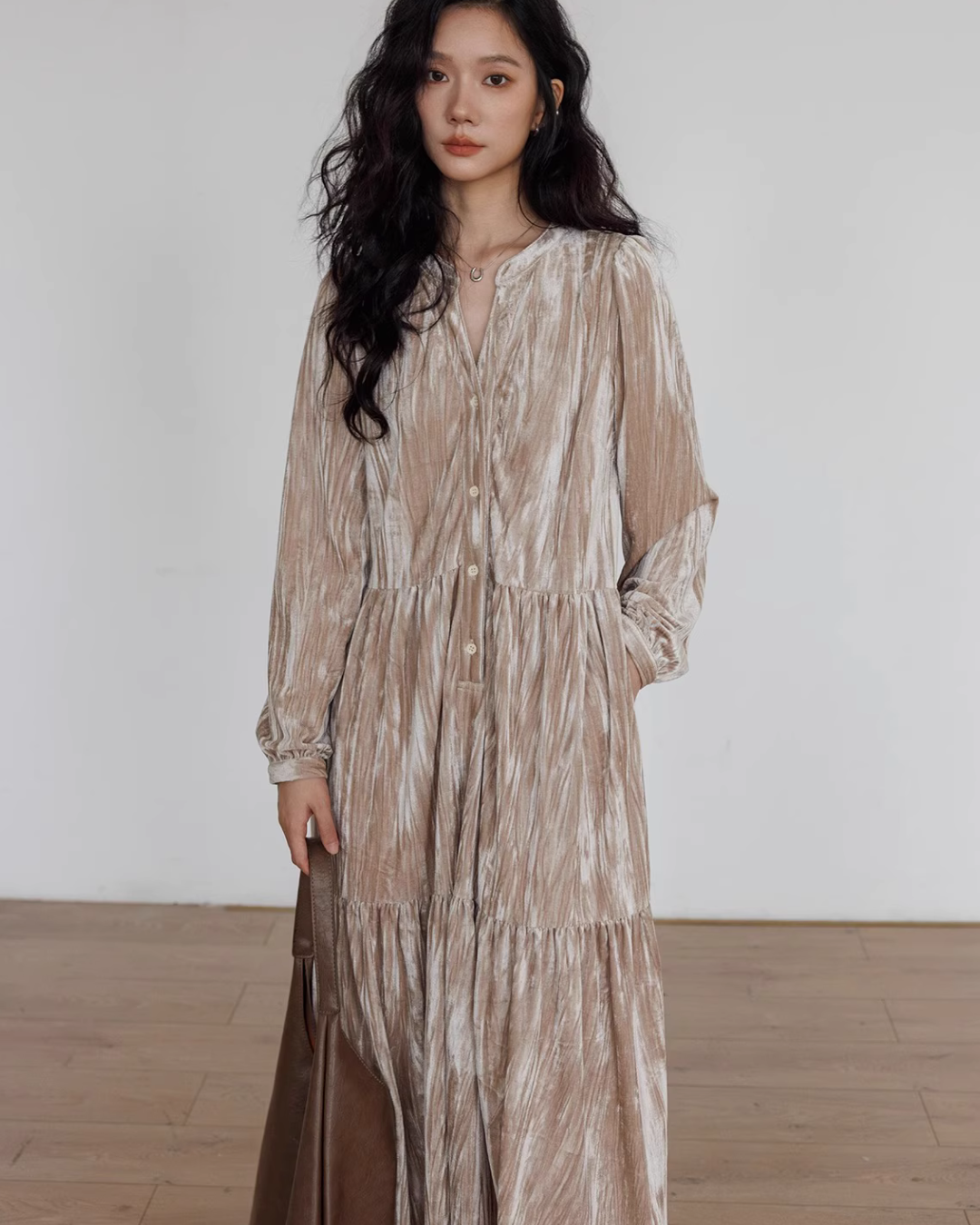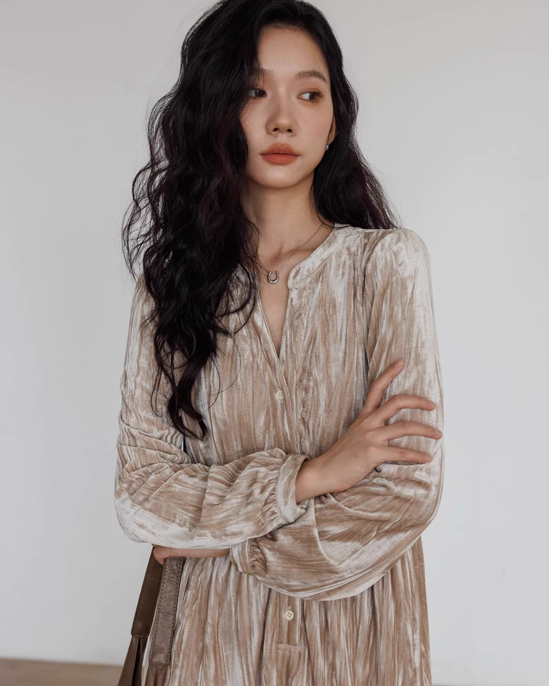 The silhouette that flares gently towards the hem creates an elegant impression.