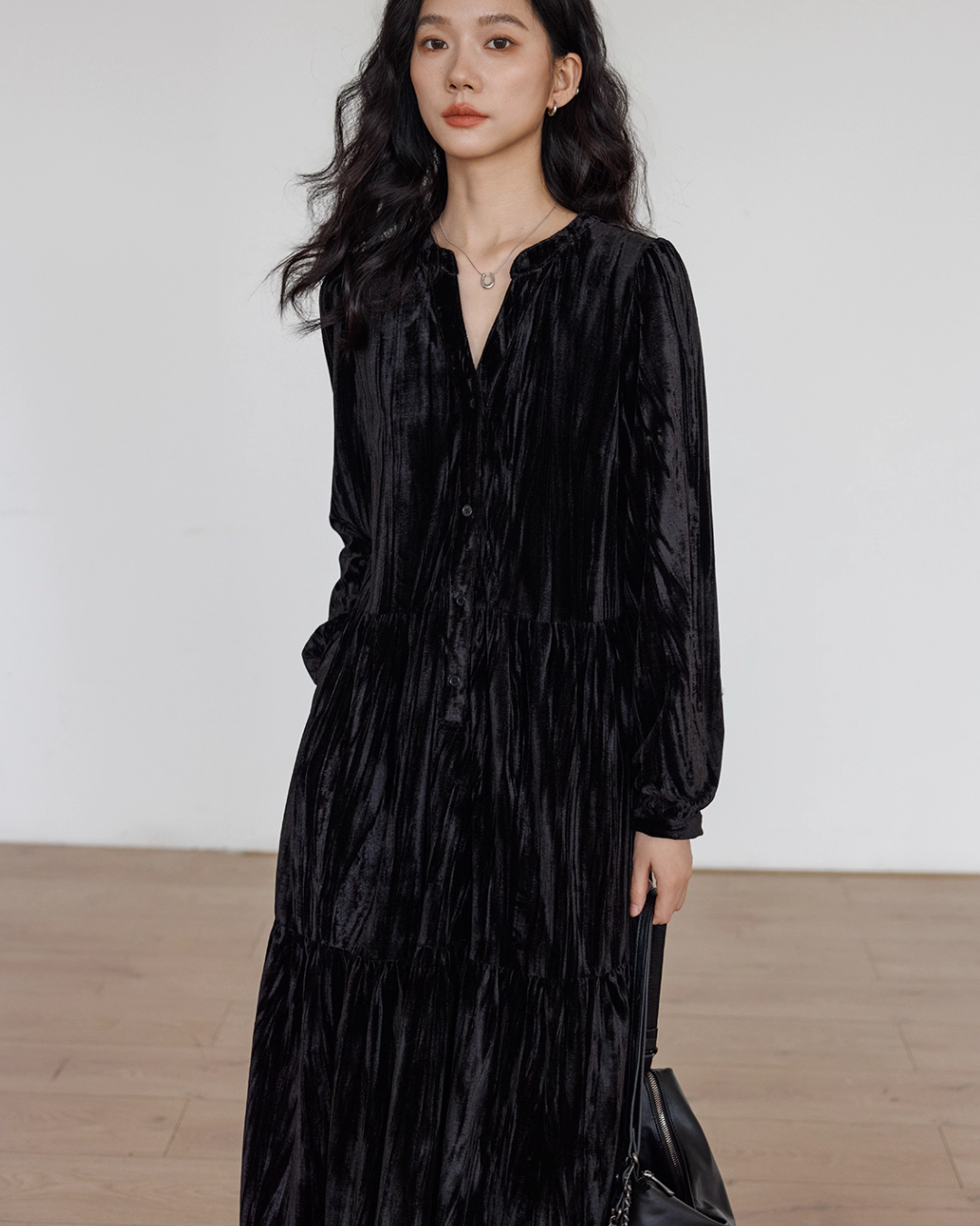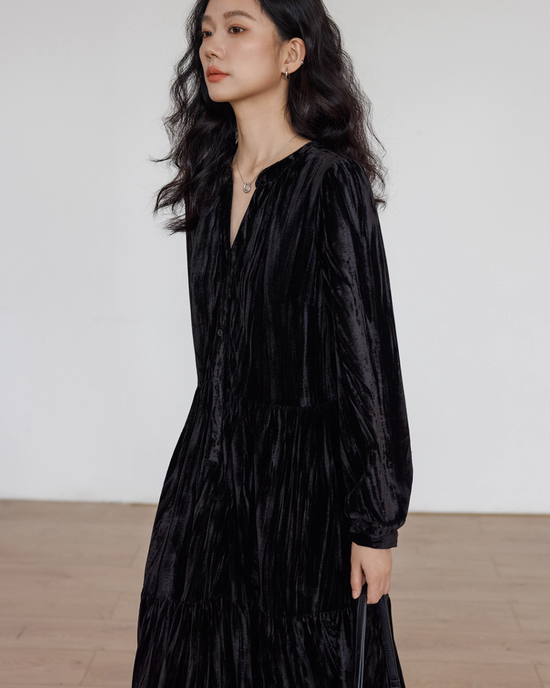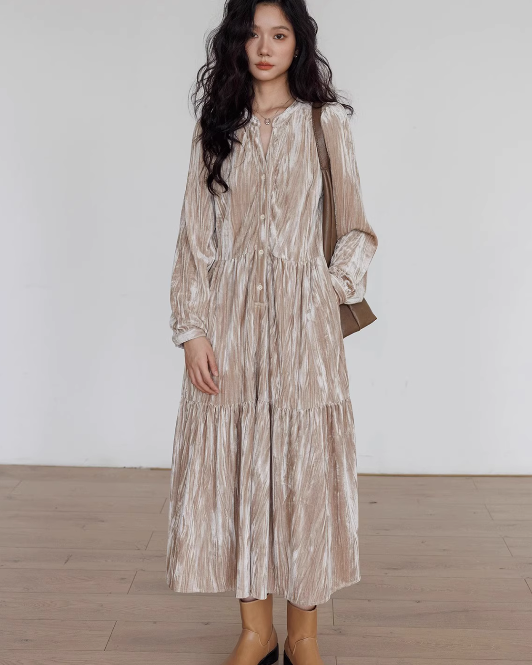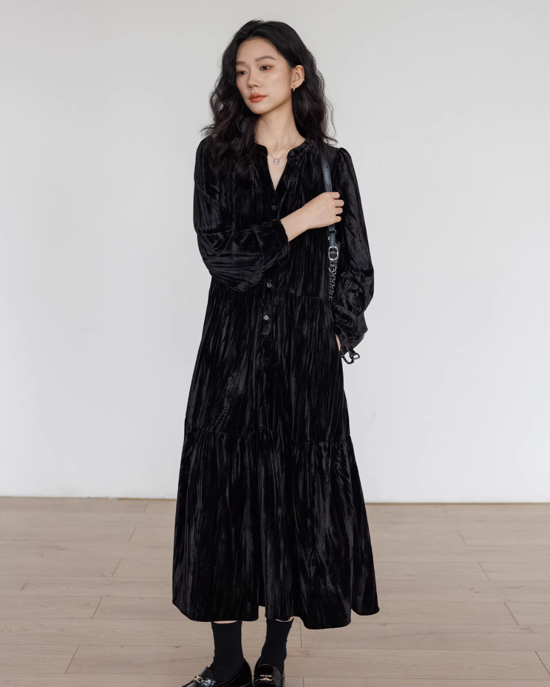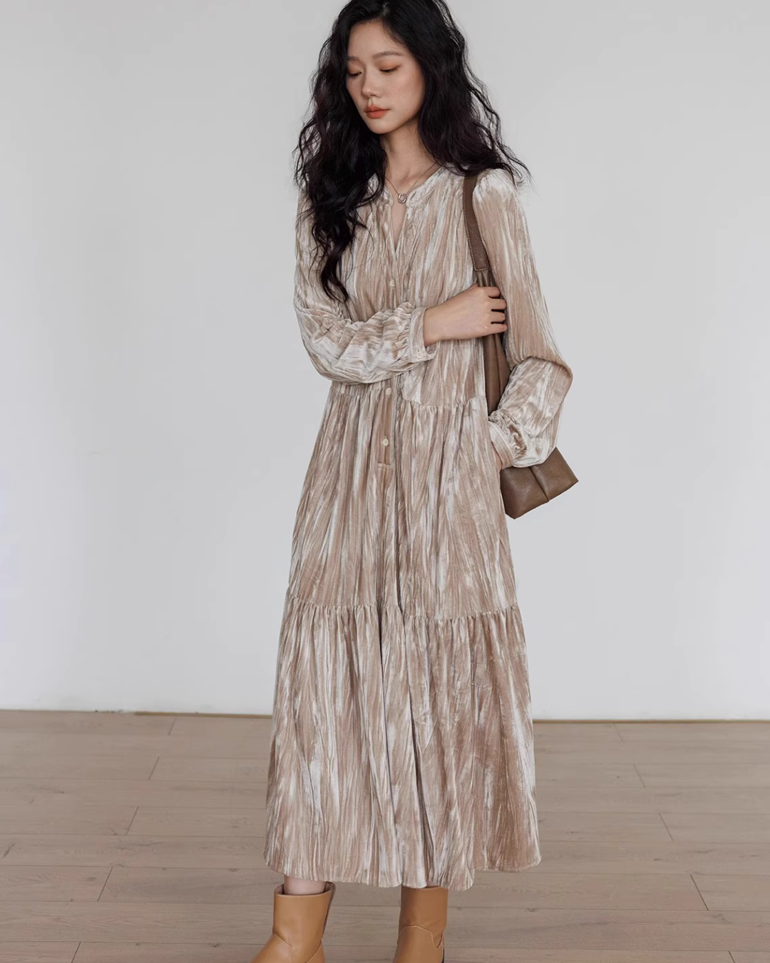 The silhouette that flares gently towards the hem creates an elegant impression.