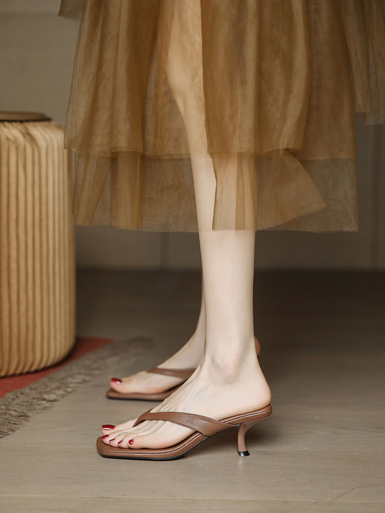 Vintage Brown Leather High Heeled Flip Flops Women, Thin Heels Slip On Outdoor Sals, Summer Footwear High-quality product featuring summer fits, fall fashion, casual summer outfits and more. Modern design that fits the latest trends. Premium materials ensure durability and comfort. Order now for special offers! Product designed with attention to every detail. Suitable for all occasions and personal styles.