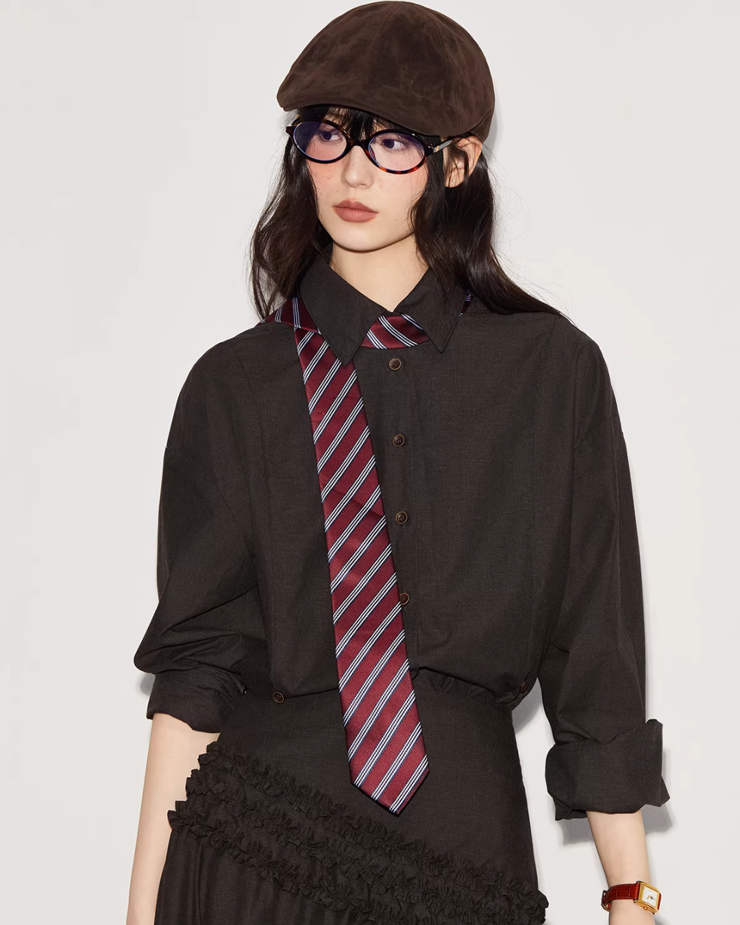 The calm brown gives a sense of warmth, a shirt & skirt setup.