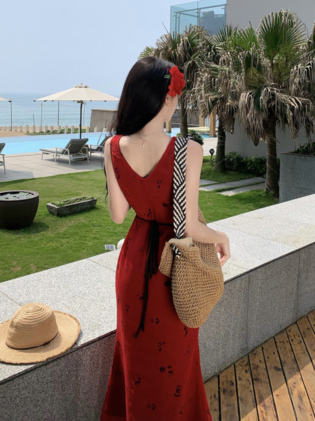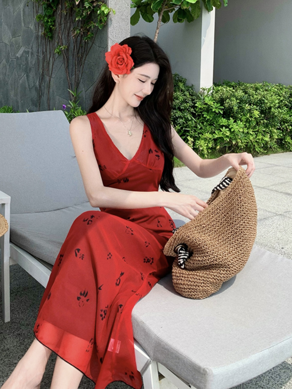 Make a statement this summer with our Vintage French High-End Printed Long Dress. Designed with a sultry deep V-neck and a fitted silhouette, this stunning red dress accentuates your curves while providing ultimate comfort for your beach vacation. The exquisite print and flowing fabric create an elegant look that’s perfect for both daytime adventures and evening escapes. Don’t miss out on this must-have addition to your wardrobe add to your cart and elevate your style today!