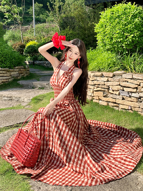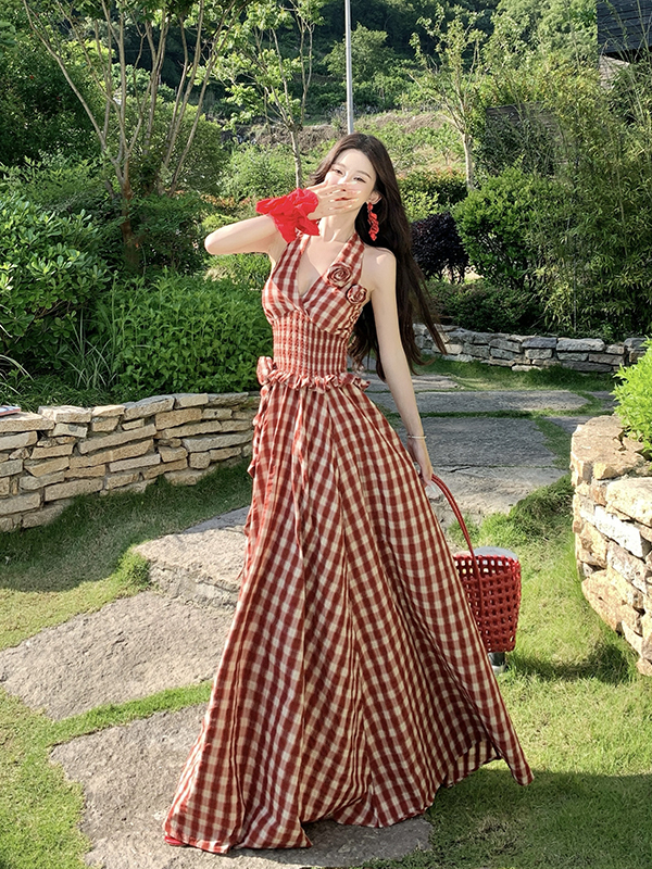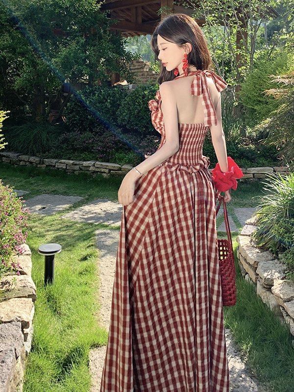 Step into summer elegance with our Vintage French Plaid Halter Strap Dress, designed for the modern woman who appreciates timeless style. Featuring a flattering fit that accentuates your silhouette, this dress is adorned with handmade floral ties that add a unique touch, perfect for seaside vacations or capturing stunning summer photos. Embrace effortless chic and make a statement wherever you go add this must-have dress to your cart today!