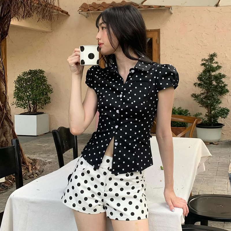 Vintage Polka Dot Puff Sleeve Shirt Slim Fit WaiButton Polo Collar Top Y2K High-quality product featuring 90s fashion, puffer jacket outfit, fall fits and more. Modern design that fits the latest trends. Premium materials ensure durability and comfort. Order now for special offers! Product designed with attention to every detail. Suitable for all occasions and personal styles.