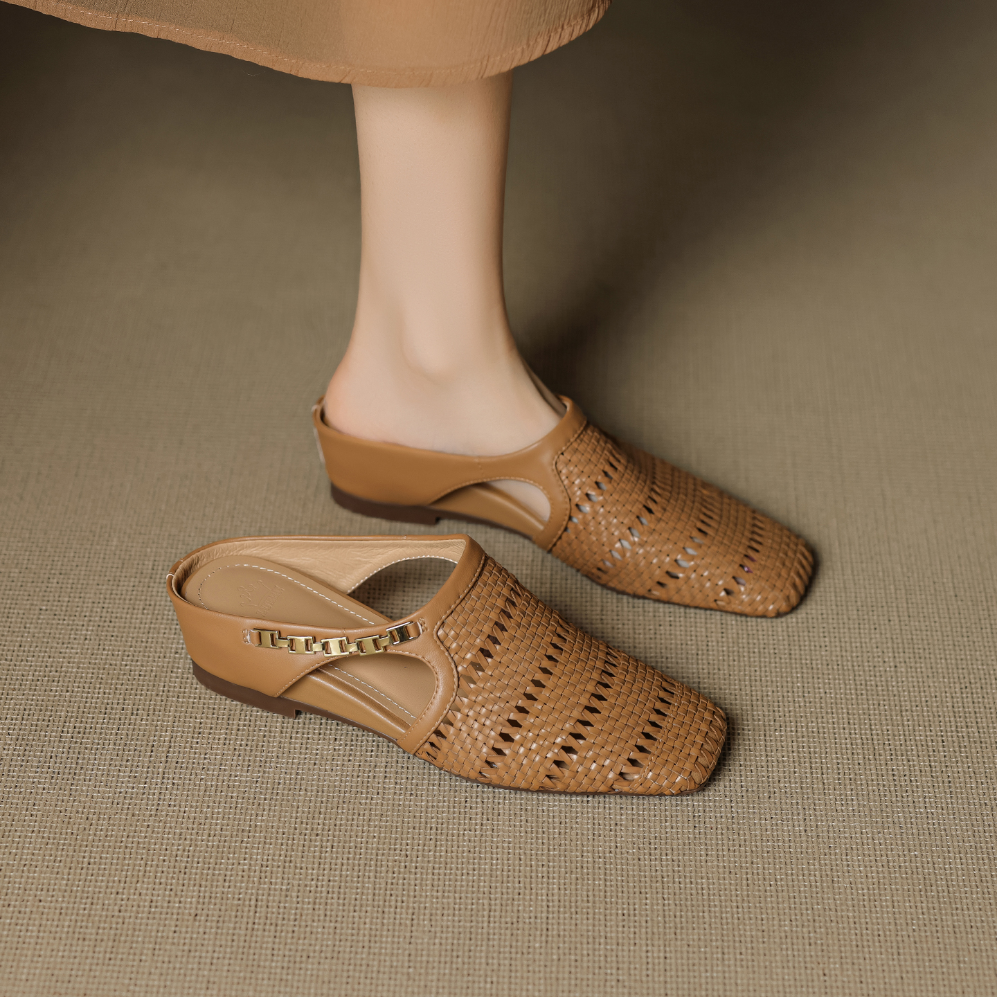 Vintage Gold Buckle Lambskin Woven Hollow Out Toe Half Drag Mules Women Height Increasing, Vintage Footwear High-quality product featuring western outfits women, homecoming dresses, fall fashion and more. Modern design that fits the latest trends. Premium materials ensure durability and comfort. Order now for special offers! Product designed with attention to every detail. Suitable for all occasions and personal styles.
