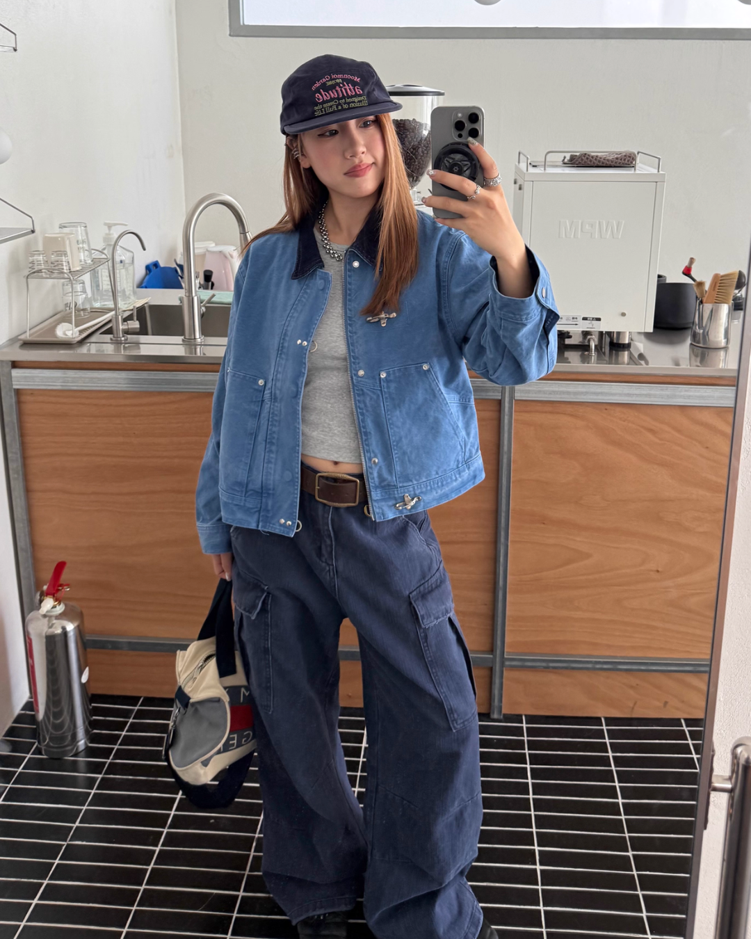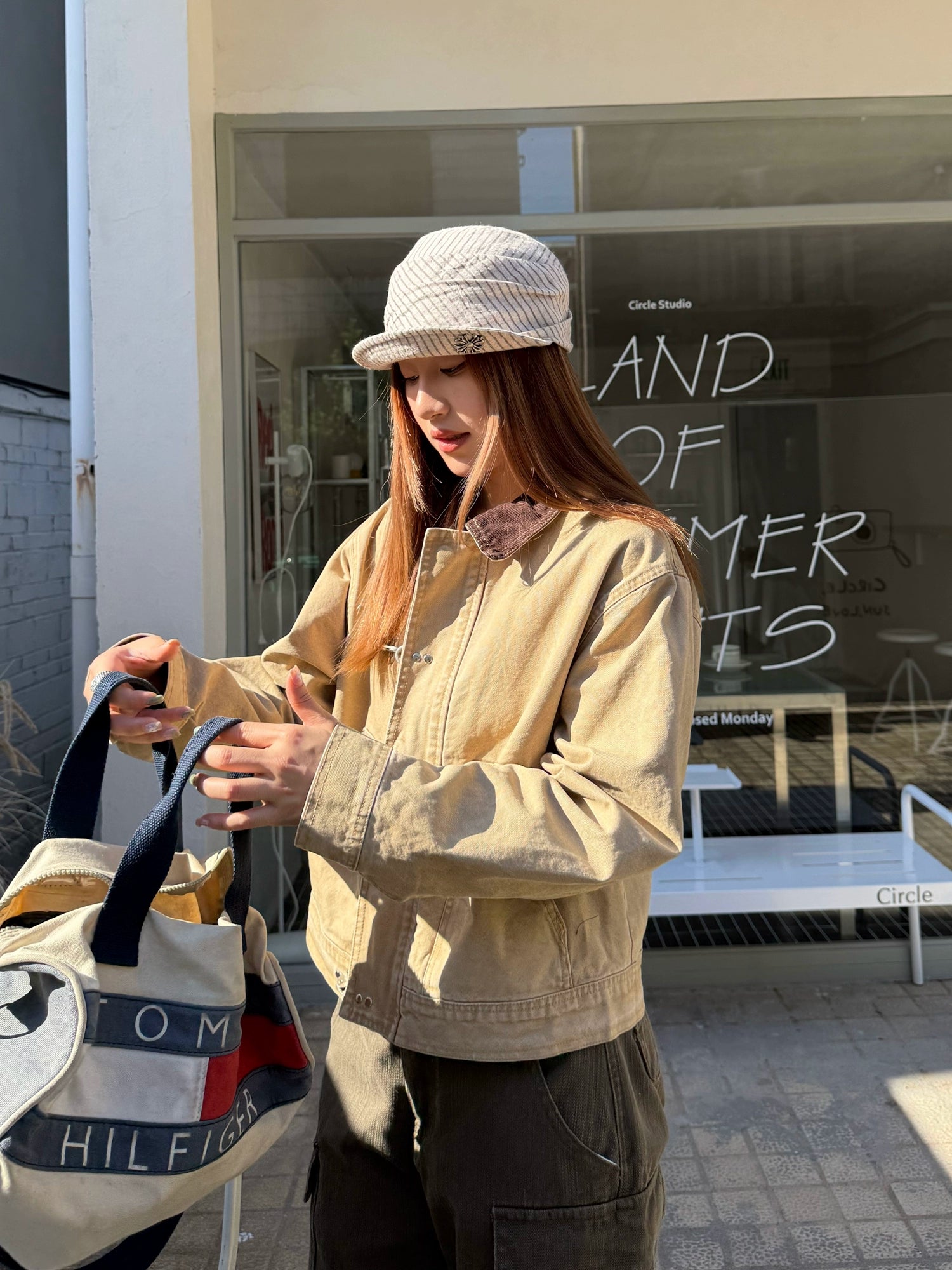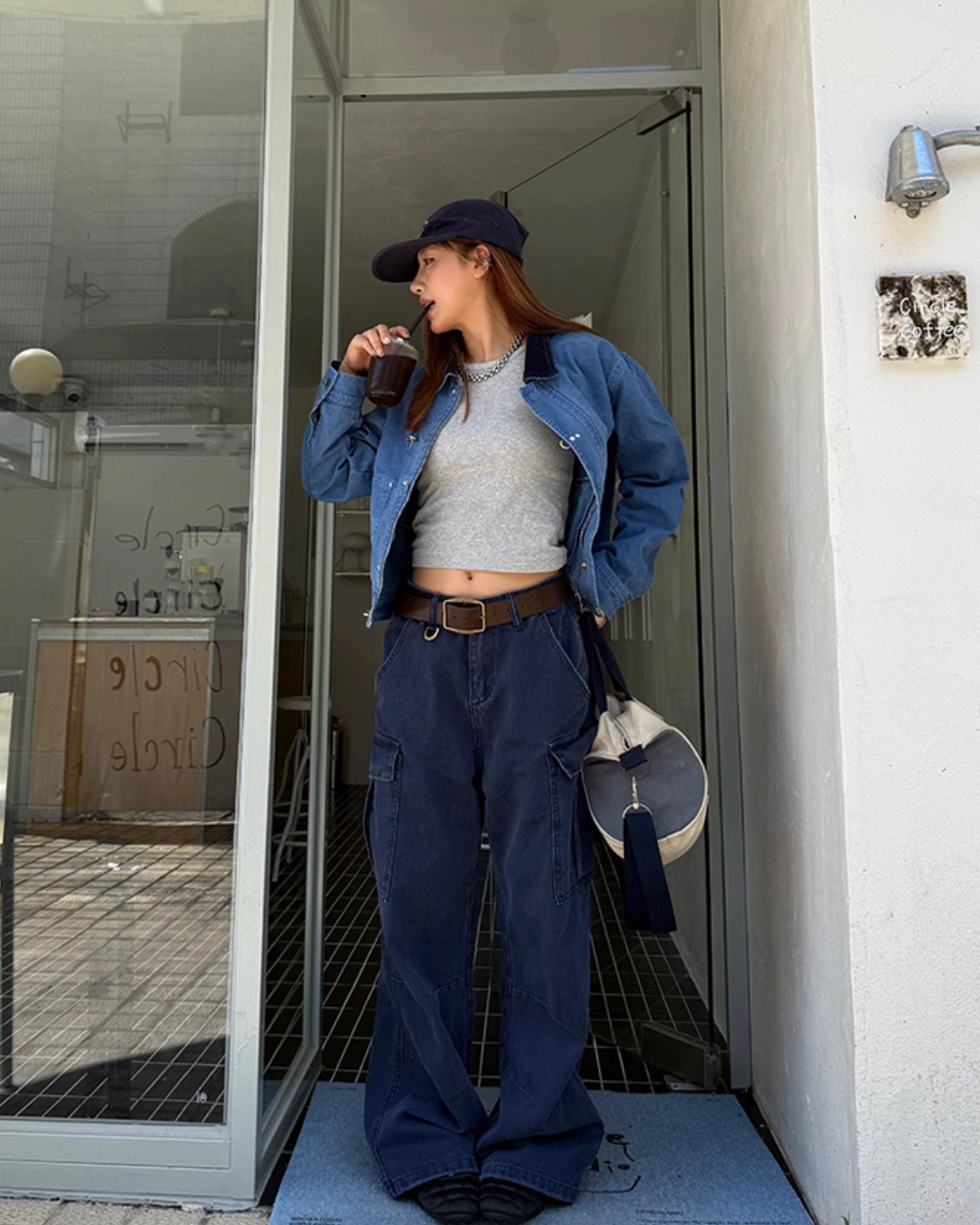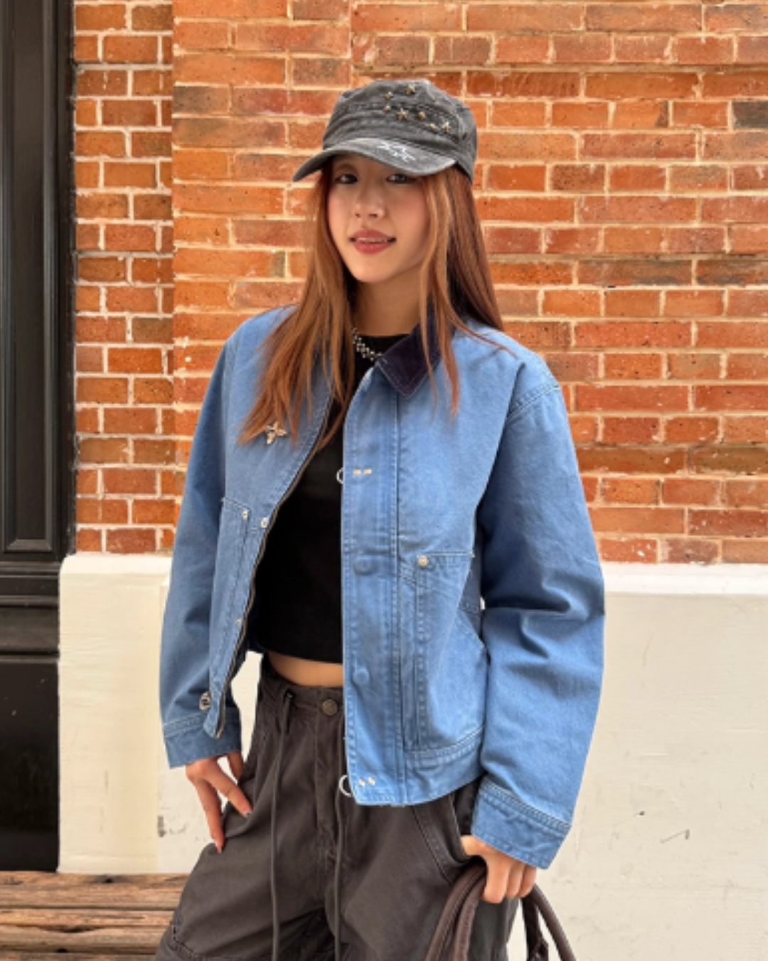 A piece that increases casualness with denim material that has a sense of firmness.